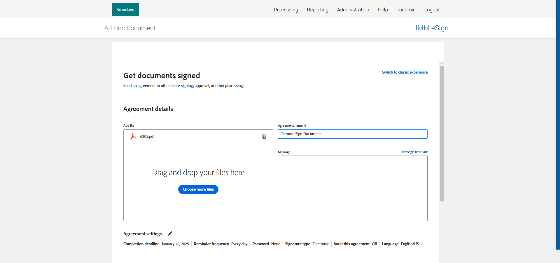 Successfylly diaplayed default Agreement name [ScreenShot] |