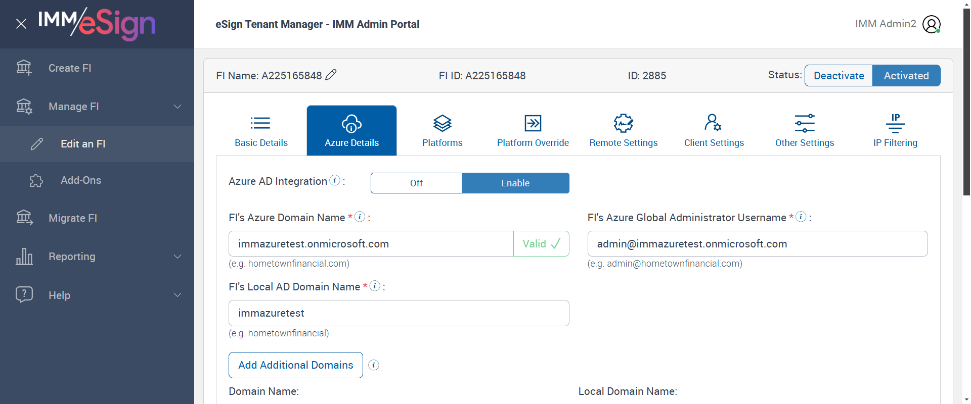 =-=-=-=-=-=-=-=-=-=-=-=-=- Login in to TM, In manage FI verify Azure detail tab UI for multi domain functionality =-=-=-=-=-=-=-=-=-=-=-=-=-