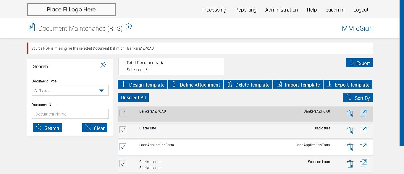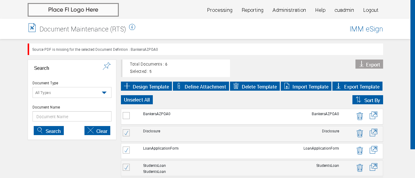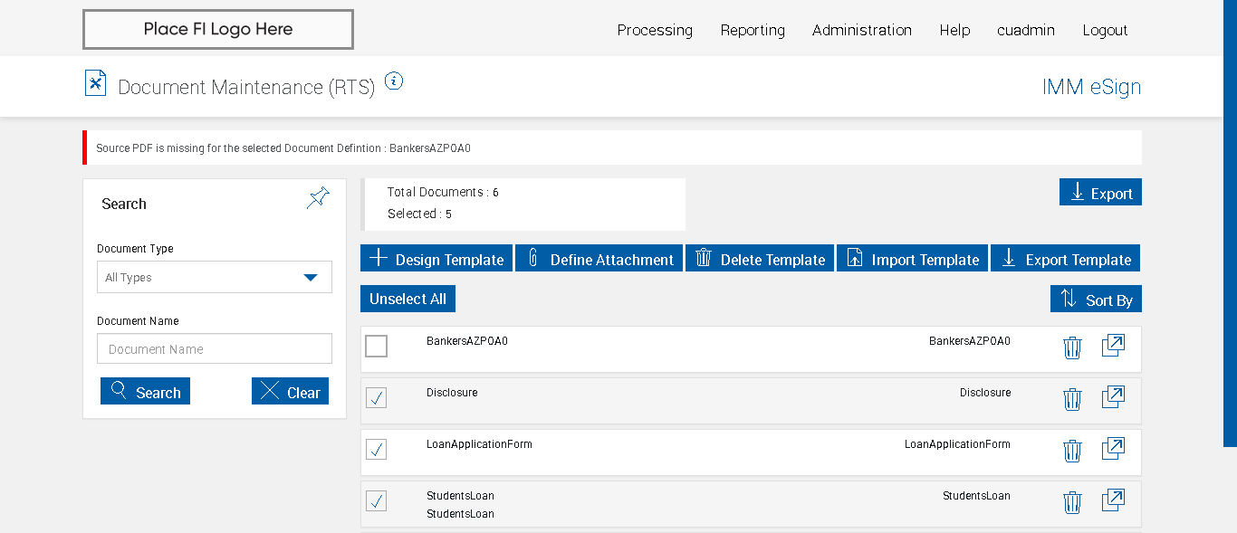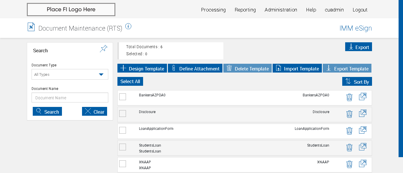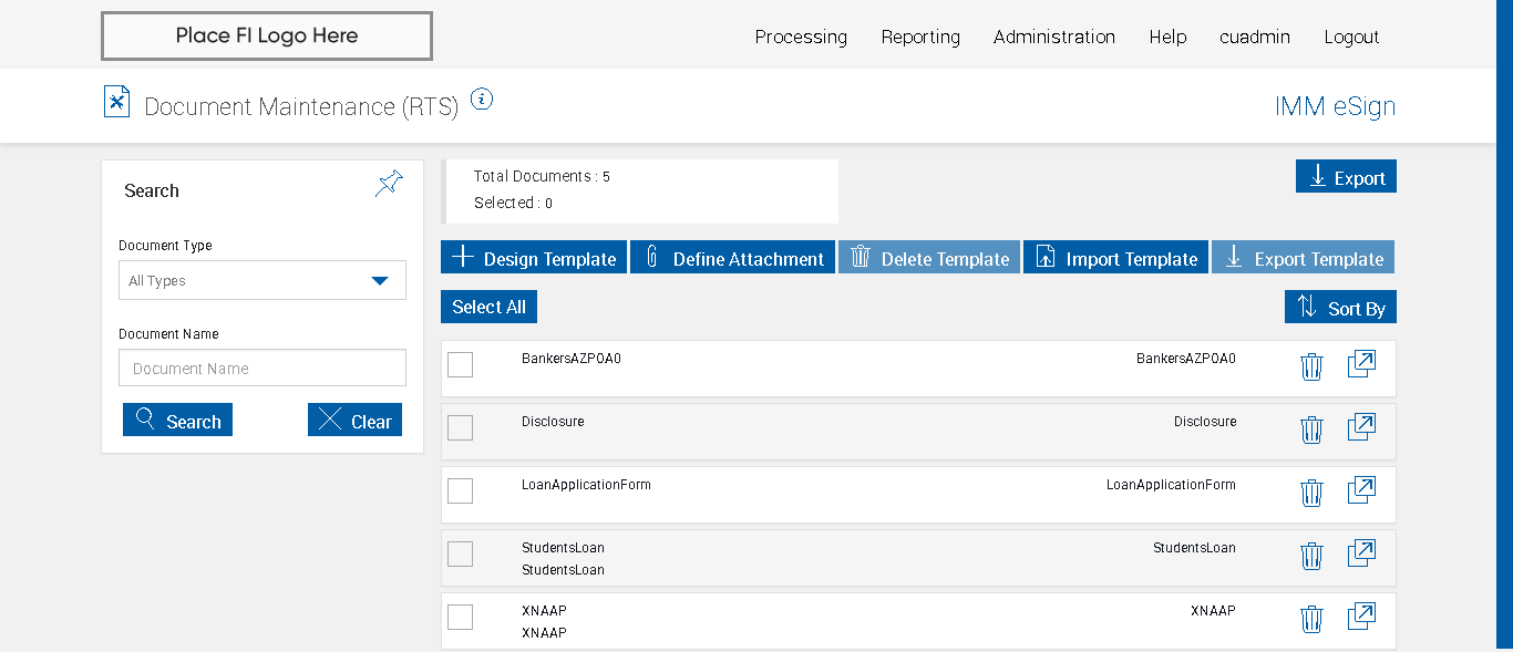 verifyExportAndDeletingTemplatesOnTheDocumentMaintenanceRTSPage