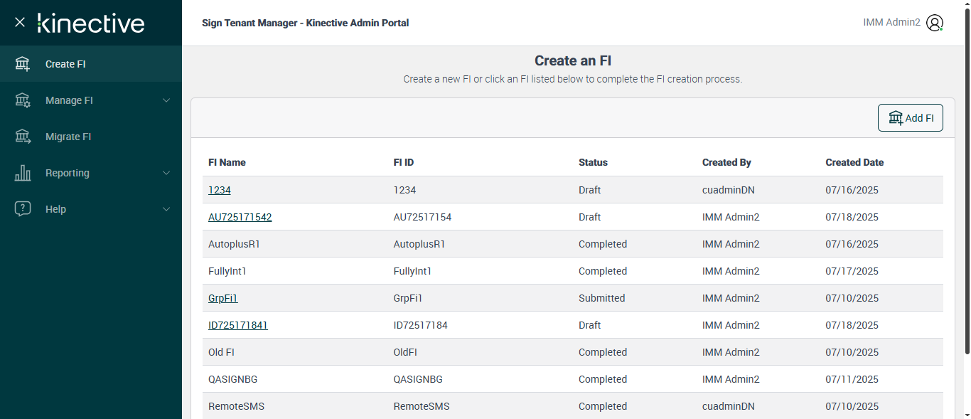 Successfully navigated to 'Create an FI' page [ScreenShot]
