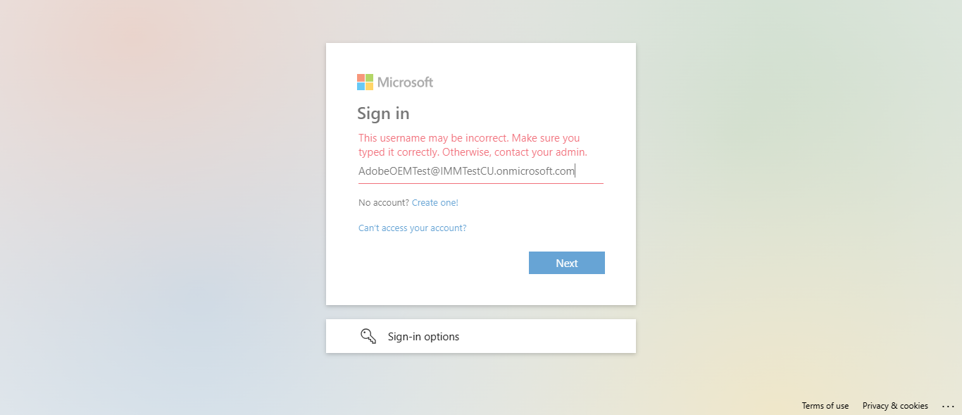 Actual(Passed): Successfully verified Not able to login with 'Group' email This username may be incorrect. Make sure you typed it correctly. Otherwise, contact your admin.[ScreenShot]