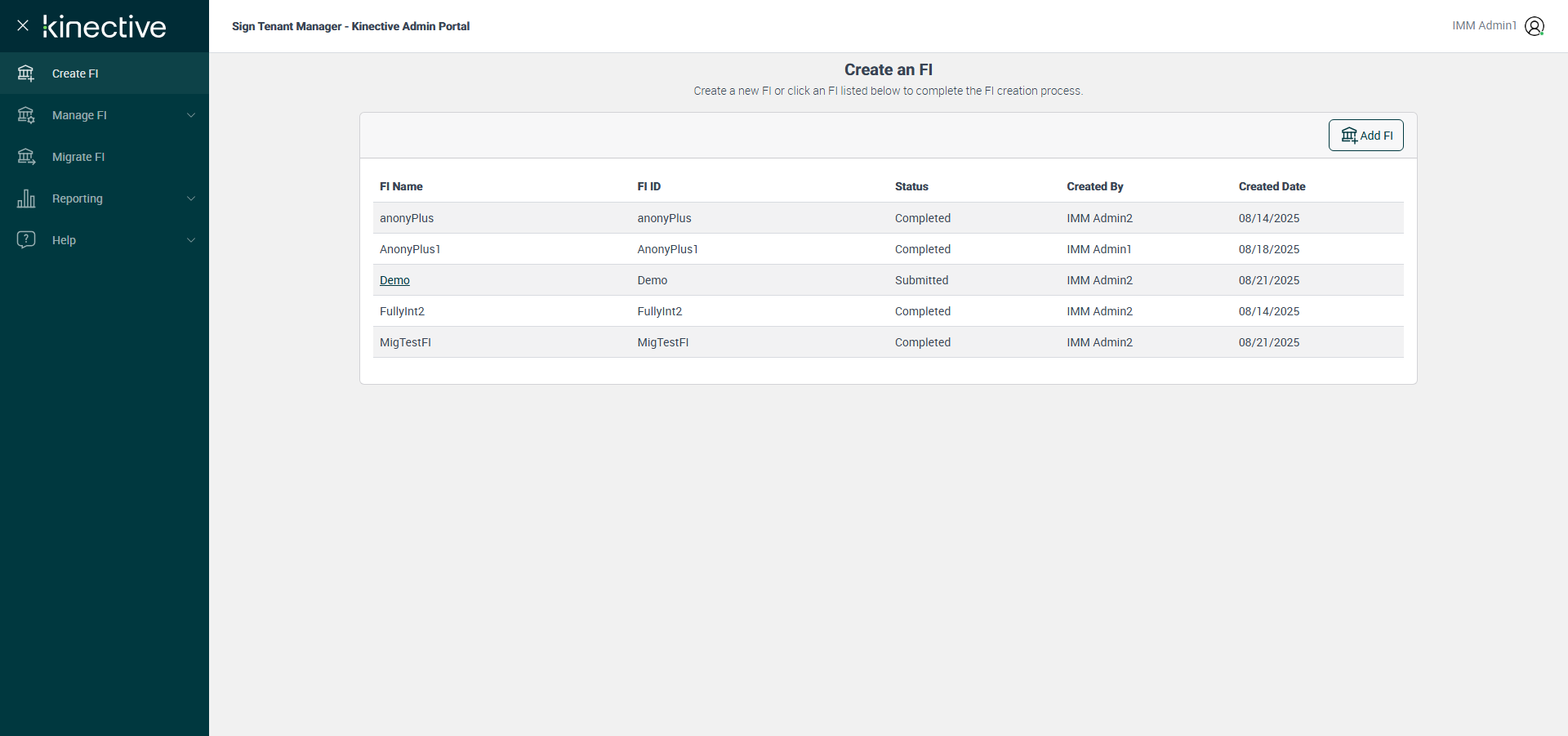 Successfully navigated to 'Create an FI' page [ScreenShot]