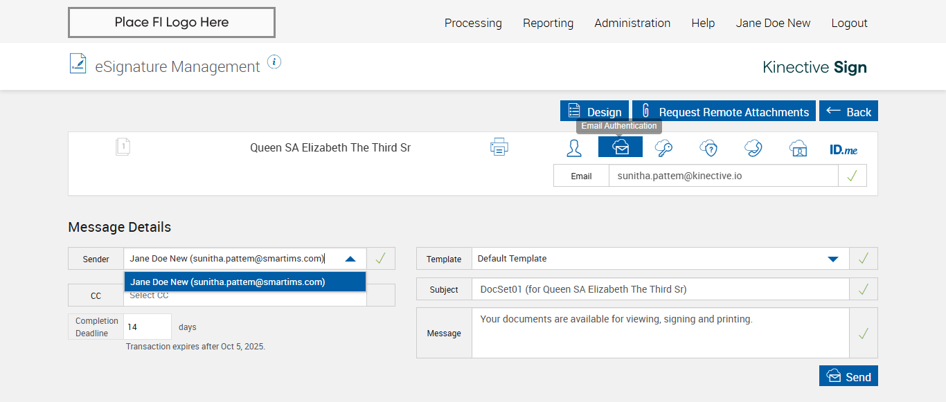 (verify Sender Email In eSignature Management Page XML Session)