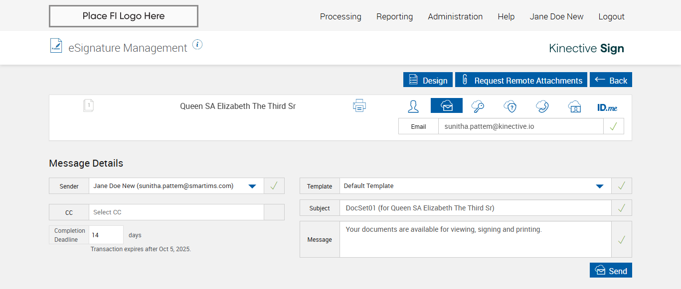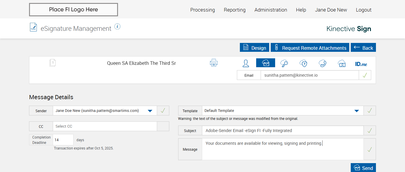 Expected: The session is successfully submitted for Remote Signatures message should be displayed