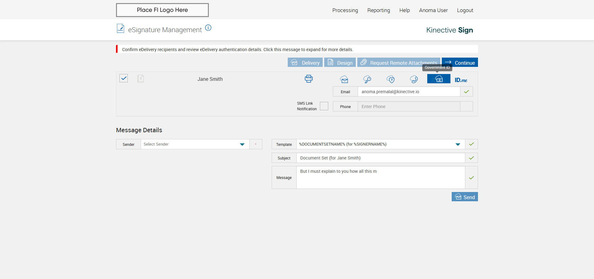 | 12:53:11 PM | Entered 'Message' : Your documents are available for viewing, signing and printing. | |