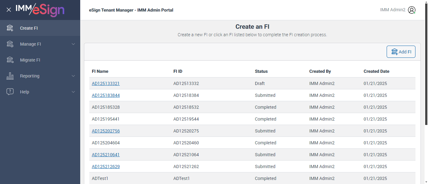 Successfully navigated to 'Create an FI' page [ScreenShot]