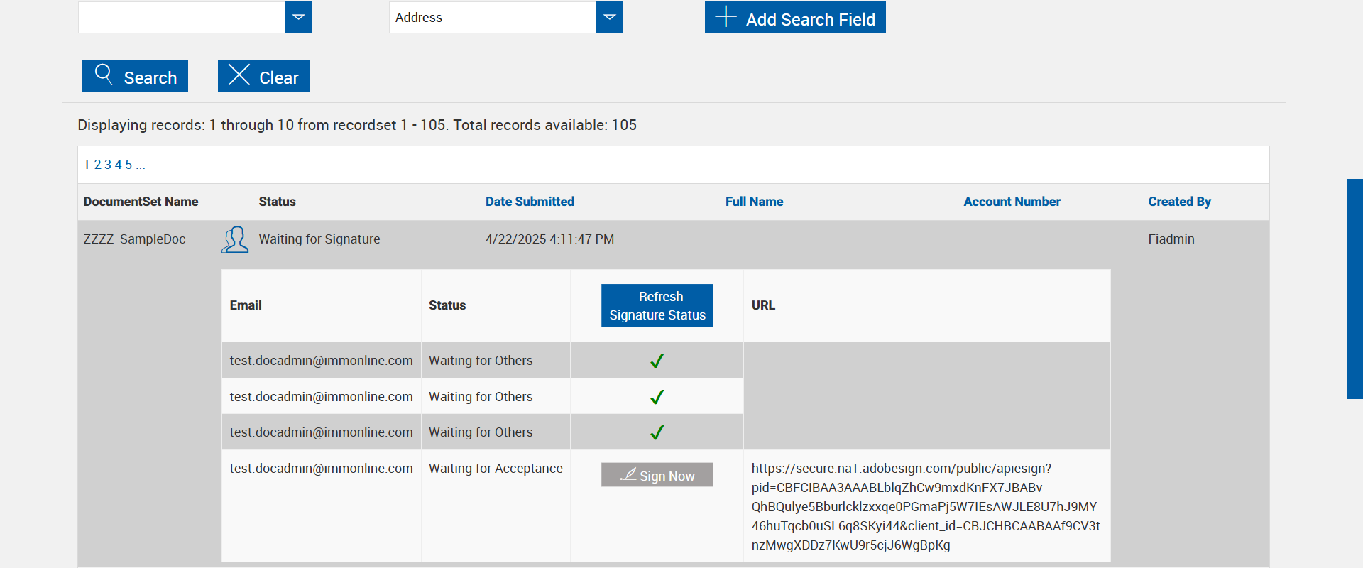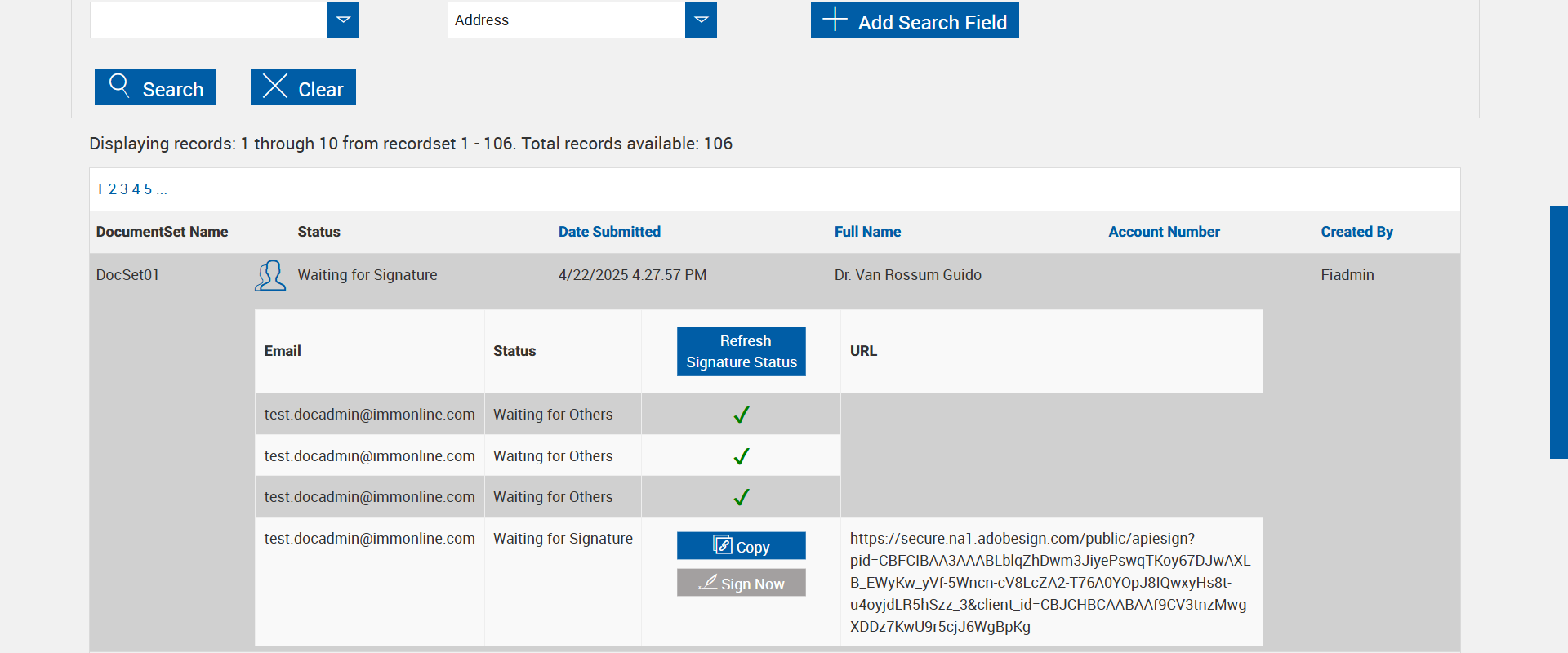 | 05:06:11 pm | Expected: Verify 'Copy' and 'Sign Now' buttons display in eSignature Management page for the party - 4 Actual(Passed): Verified 'Copy' and 'Sign Now' buttons displayed in eSignature Management page for the party - 4 [ScreenShot] |