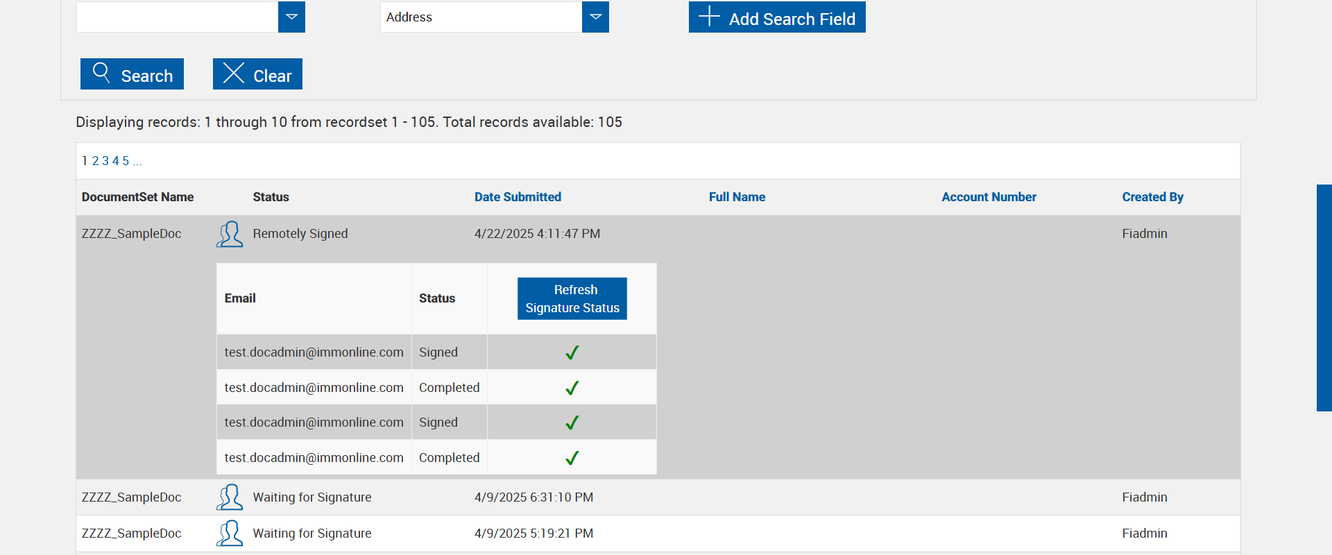 | 04:57:05 pm | Successfully navigated to the 'eSignature Management' page [ScreenShot] | |