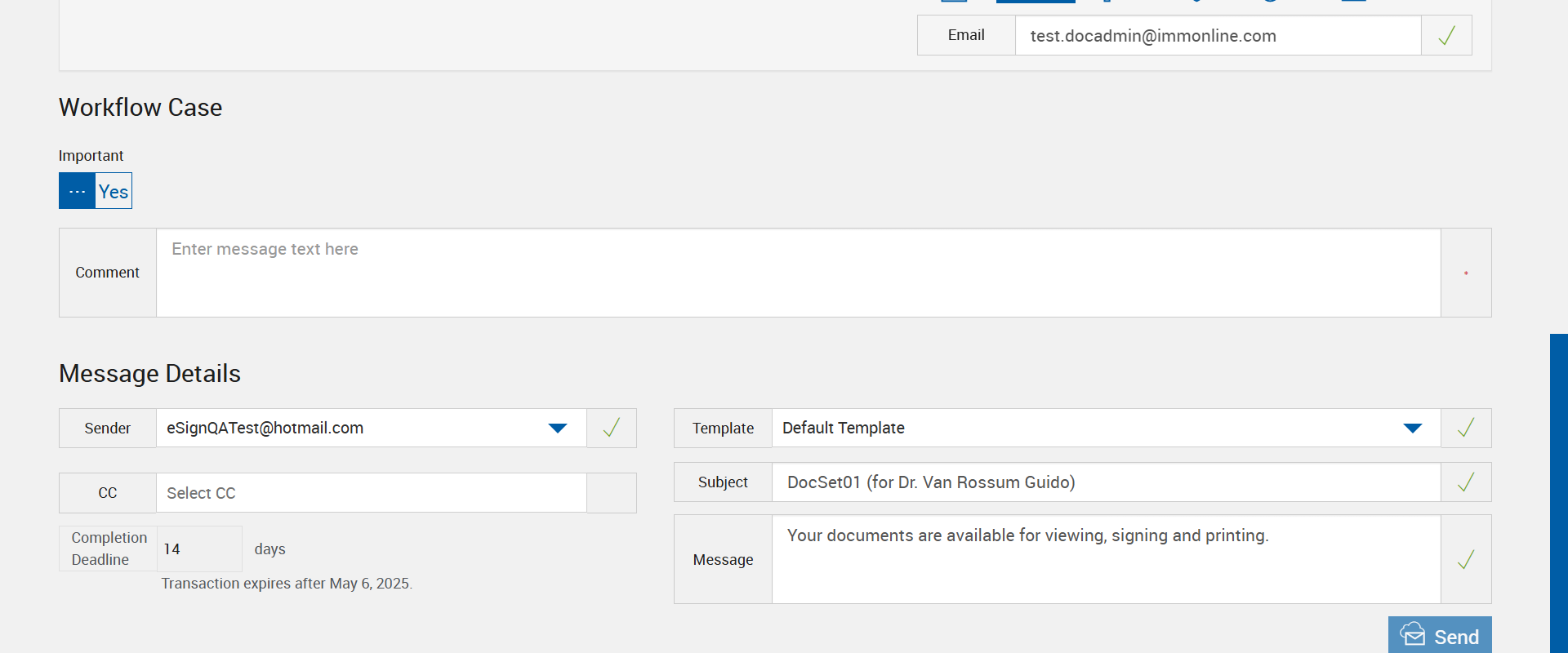 | 04:06:50 pm | Set email as - 'test.docadmin@immonline.com' for the party - 1 [ScreenShot] | |