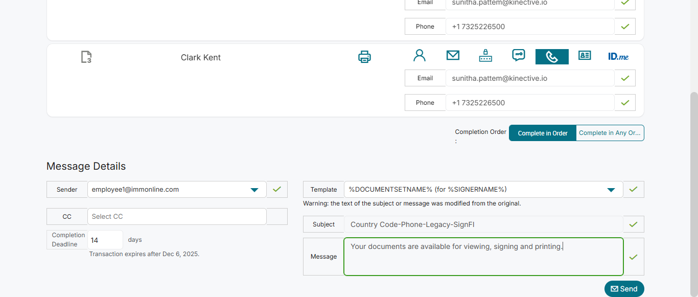 | {Tenant_URL=https://esignnonprod.immesign.com/qa/tenantmanager/, InboxName=, Platform=, Address=, Username2=, IsSignRequired=, tooltip=, User_Password=iMM@2022, Sender_Emails=, Name=, PartiesToView=Clark Kent,Jonathan Kent, GROSSPPP=, IsAddedTemplateRequired=, Zipcode=, ReceivedFromNames=, EditCompletionDays=, TemplateTitle=, plusfi=, DummyUser=, EditMessageSubject=, IntegrationType=Fully Integrated, DocumentName=, AttachmentTemplate=, FirstTransfer=, Dropdownvalues=, Remote_Signing_Type=, KeepUnlock=, Workflow=, Birthdate=, AttachmentTypeOption=Signature_Card, SecondTransferUserID=, NumOfAttachments=, CompletionOrder=, ReceivedFrom=, Driving_license=, DocumentSet=, Test_type=, UserType=, Tenant_User=immadmin2@immesignqa.onmicrosoft.com, Applytype=, Group=, Description=verify Country Code Phone Authentication Signing Method XML Session - Fully Integrated - Plus FI, fi=, User=, MessageSubject=, Message=Your documents are available for viewing, signing and printing., NoOftemplates=, FirstTransferUserID=, Phone_Number=+1 7325226500, SearchUser=, Step Name=, Filepath=src/main/resources/testdata/files/fingerprint01.pdf, Owners=, TestID=verifyCountryCodePhoneAuthenticationSigningMethodXMLSession, FItype=, IndexSource=Clark Kent, WorkfowName=, Sessionurl=https://esignplusqa.immesign.com/TEAASP/HostDispatch.aspx?hostid=XP&hsfiid=PlusFIDB&xmlData=D:\Automation_DataFiles\PrimarySpouse5.xml, Inbox=, Password=, CC=immuser@immonline.com, View/Skip_Group=, Tenant_Password=iMM@2024, User_Name=janedoe@immtestcu.onmicrosoft.com, UserName=, ViaAddDocs=, CompletionDays=, AddTemplateName=, Email_Id=sunitha.pattem@kinective.io, Comments=Automation testing, IsOptionalSig=, FI_ID=Autoesign, Sender_Email_Id=Jane Doe New (sunitha.pattem@smartims.com), UserName2=, From=, UserName3=, SecondTransfer=, Email_Password=Password1, UserName1=, Subject=Country Code-Phone-Fully Integrated-PlusFI, SSN=, Response=, EditTemplateTitle=, MariageStatus=, DummyUserID=, ErrorMessage=} |