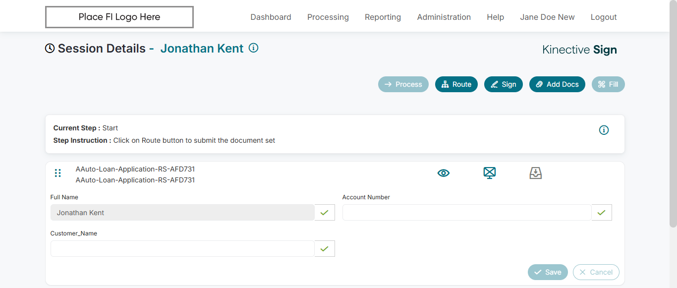 | 07:31:14 pm | Entered 'Message' : Your documents are available for viewing, signing and printing. | |