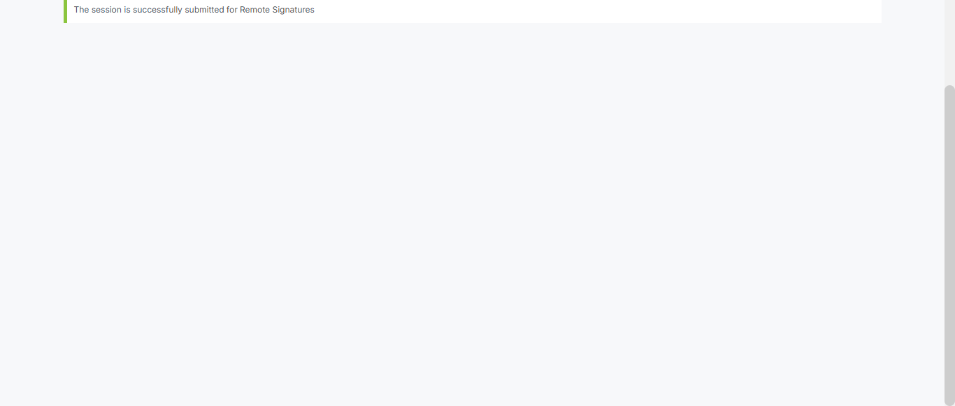 | 07:31:33 pm | Expected: The session is successfully submitted for Remote Signatures message should be displayed Actual(Passed): The session is successfully submitted for Remote Signatures is displayed [ScreenShot] |