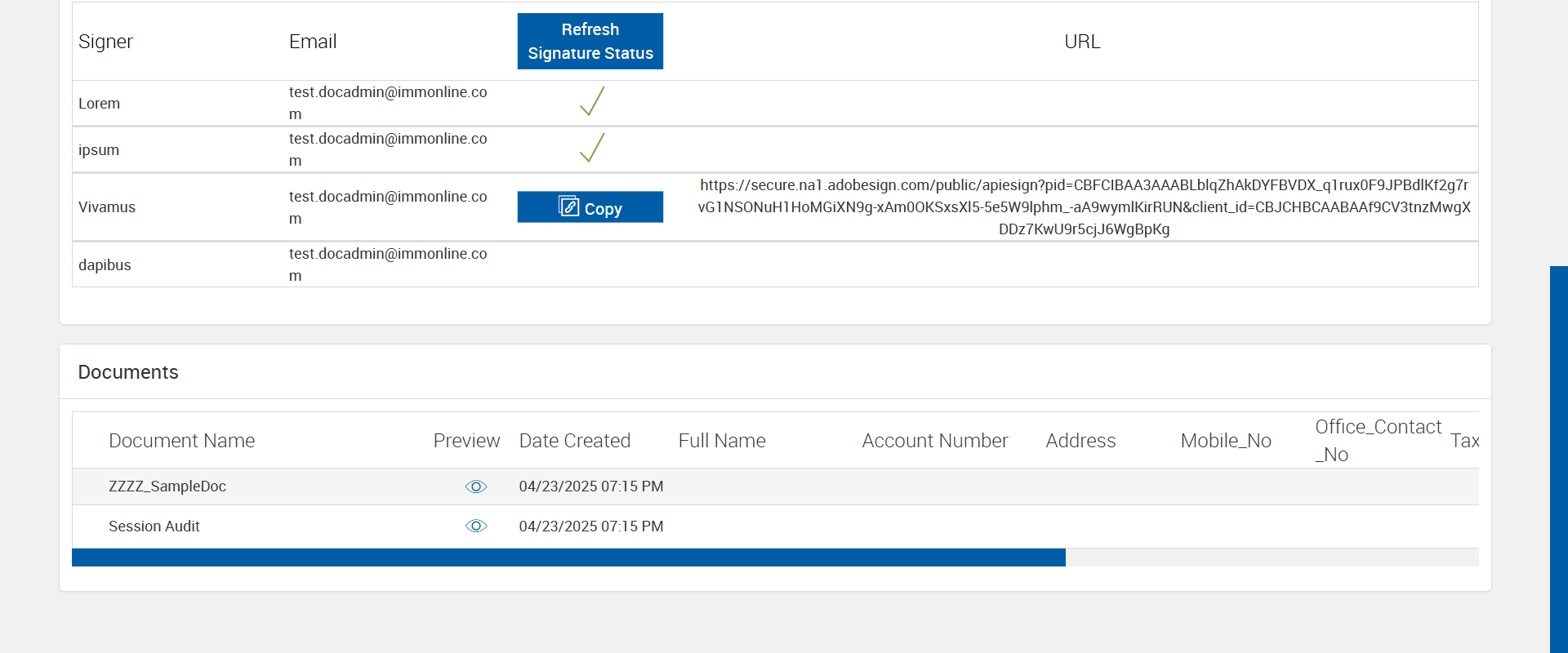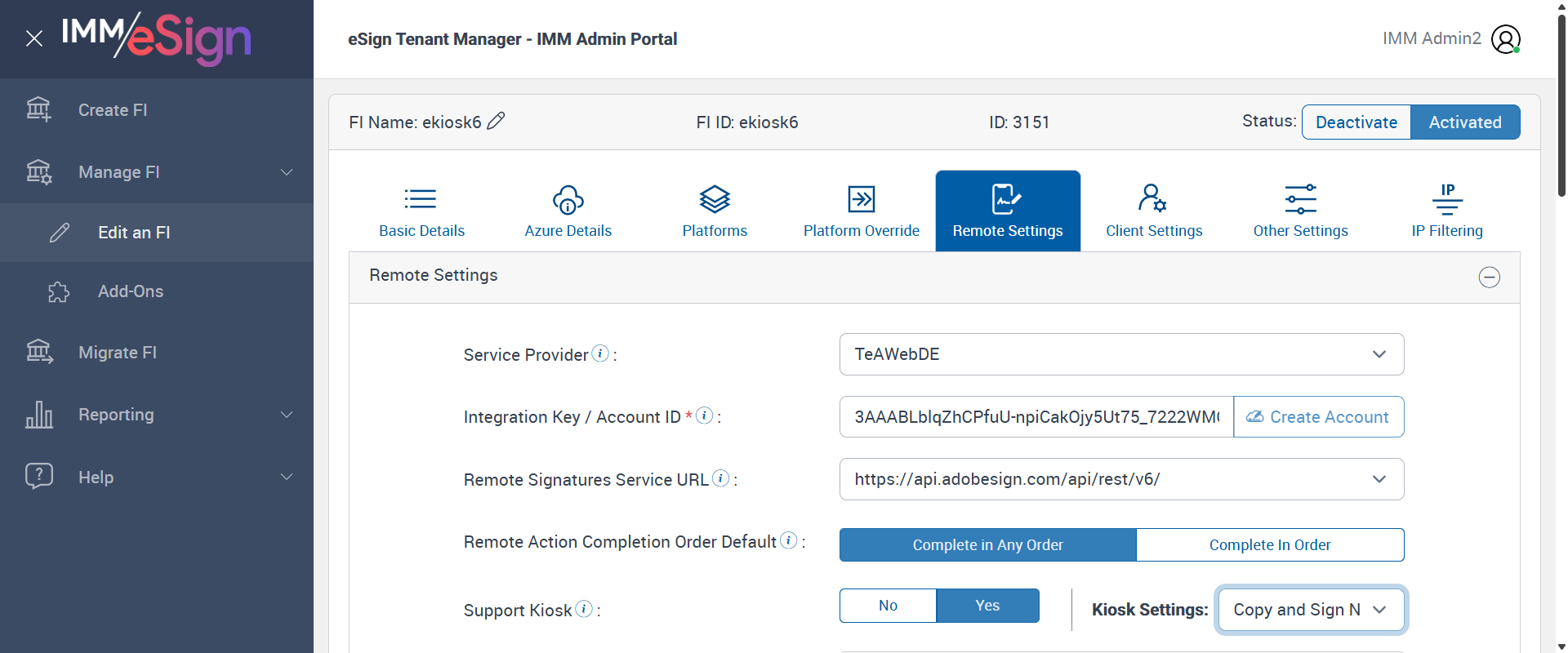 | {Tenant_URL=https://esignnonprod.immesign.com/qa/tenantmanager/, EmailID=test.docadmin@immonline.com;, WorkflowSummary=, Login_User_ID=automationtest1@immtestcu.onmicrosoft.com, Address=, FiStatus=, FiAdmin_LastName=, Add_Dictionary=, GRP_PermissionRadio=, Effect_Summary=, Name=, GRP_PermissionChkBox=, NewUser_ID=, LocalDomain=, PartiesToView=, NewName=, User_ID=, Wkf_Permission=, Reset_Password=, NewDescription=, AZDomain=, Workflow=Basic_WF, City=, Delete_Dictionary=, AttachmentTypeOption=, PlusFi=true, NewEmailID=eSignQATest@hotmail.com;, State=, Login_Password=iMM@2022, eSignClient=, ClientID=, Domain=, UserType=, FI_Type=Unified, NewGroup=, Tenant_User=, FiAdmin_FirstName=, Group=, Dictionary=, FI_Name=, CompletionOder=Complete in order; Complete in any order;, Description=Set Kiosk toggle enable and set Kiosk Setting dropdown field in Tenant manager for Plus FI. create RTS and XML session one after another with different Kiosk setting dropdown options and different signing order (Complete in order, Complete in any order) and verify Kiosk functionality for the 'eSignature Management' page and 'Session details' page, AdditionalDomainName=, SearchUser=, Filepath=src/main/resources/testdata/files/documentRTS/BasicRTSDocs/005BA1.pdf;src/main/resources/testdata/files/documentRTS/BasicRTSDocs/513BA.pdf;src/main/resources/testdata/files/documentRTS/BasicRTSDocs/ZZZZ_SampleDoc.pdf, TestID=VerifyKioskFunctionalityWithRTSAndXMLSessionInPlusFi, KioskDropDownValues=Copy;Sign Now;Copy and Sign Now;, FiAdmin_UserID=, Dictionary_Code=, IndexSource=, Access_Password=, UserURL2=, Inbox_Permission=, Confirm_Reset_Password=, AdditionalLocalDomainName=, Notes=, Inbox=, GlobalAdmin=, Path=src/main/resources/testdata/files/documentRTS/BasicRTSDocs/BasicRTSDocTemplates.zip;, Copy_User_ID=, Tenant_Password=, Enter_eSignClient=, ZipCode=, FI_ID=KioskPlus1, XMLSessionURL=https://esignplusqa.immesign.com/TEAASP/HostDispatch.aspx?hostid=XP&hsfiid=KioskPlus1&xmlData=D:\Automation_DataFiles\PCO1O2-AlphaFiB_plusFi_User.xml, Confirm_Password=, CasesUser=, Tab=, UserURL=, Copy_Tab=} |