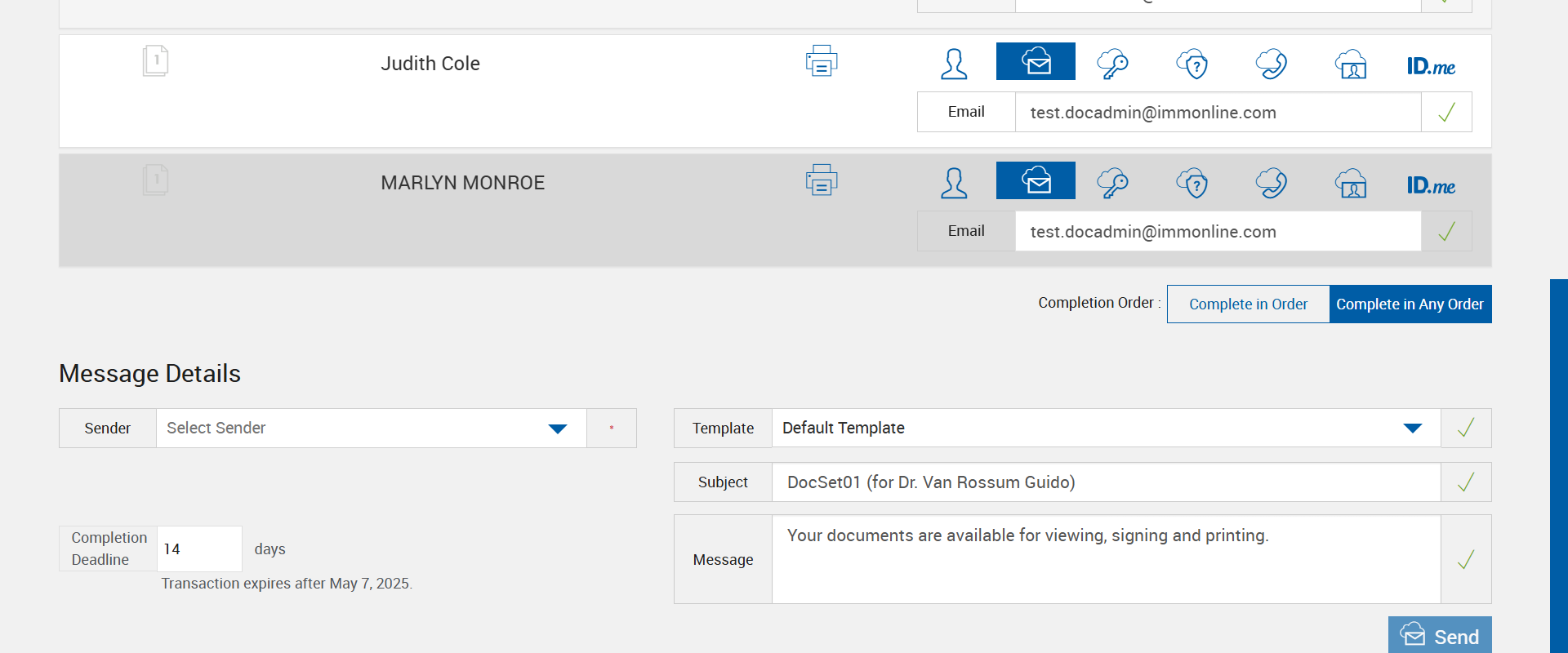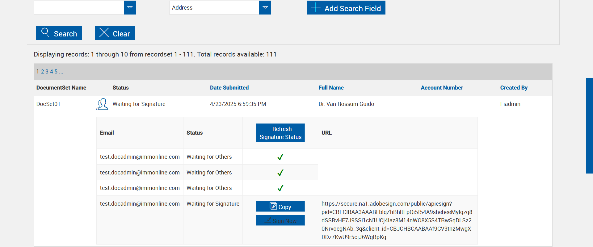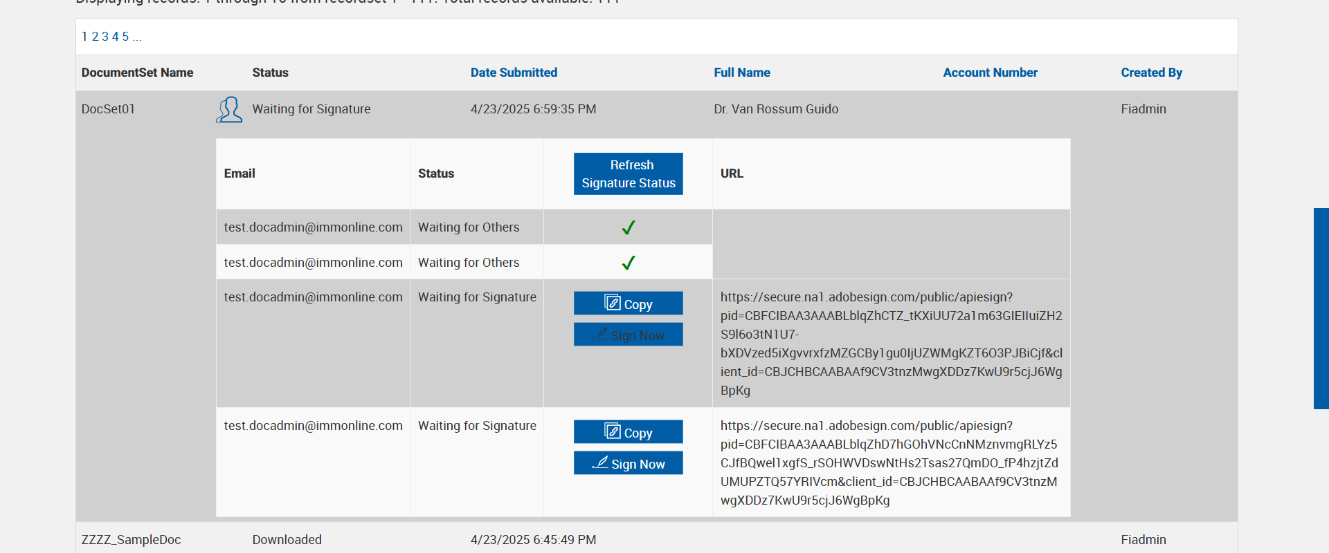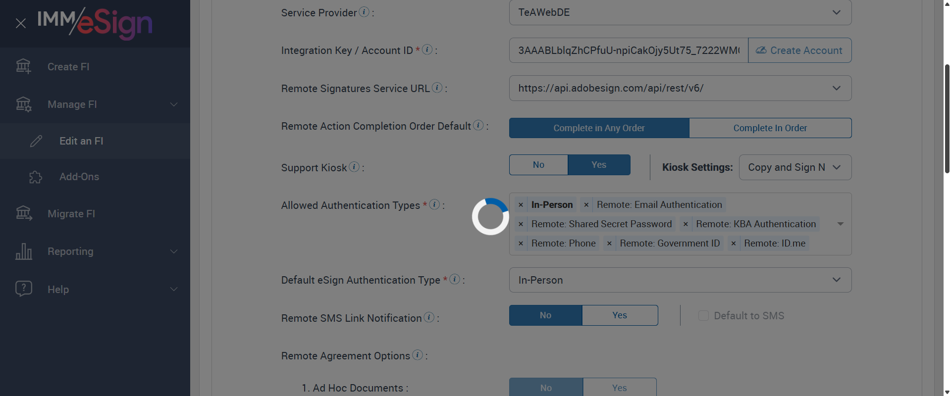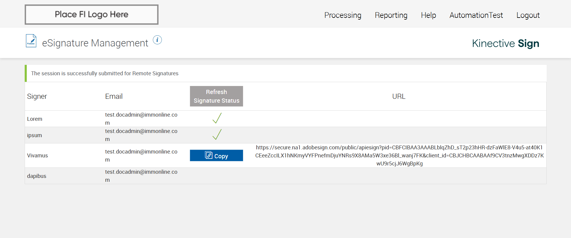 | {Tenant_URL=https://esignnonprod.immesign.com/qa/tenantmanager/, EmailID=test.docadmin@immonline.com;, WorkflowSummary=, Login_User_ID=fiadmin, Address=, FiStatus=, FiAdmin_LastName=, Add_Dictionary=, GRP_PermissionRadio=, Effect_Summary=, Name=, GRP_PermissionChkBox=, NewUser_ID=, LocalDomain=, PartiesToView=, NewName=, User_ID=, Wkf_Permission=, Reset_Password=, NewDescription=, AZDomain=, Workflow=, City=, Delete_Dictionary=, AttachmentTypeOption=, PlusFi=false, NewEmailID=eSignQATest@hotmail.com;, State=, Login_Password=nimdaif, eSignClient=, ClientID=, Domain=, UserType=, FI_Type=Unified, NewGroup=, Tenant_User=, FiAdmin_FirstName=, Group=, Dictionary=, FI_Name=, CompletionOder=Complete in order; Complete in any order;, Description=Set Kiosk toggle enable and set Kiosk Setting dropdown field in Tenant manager for eSign FI. create RTS and XML session one after another with different Kiosk setting dropdown options and different signing order (Complete in order, Complete in any order) and verify Kiosk functionality for the 'eSignature Management' page and 'Remote Signature Status' page, AdditionalDomainName=, SearchUser=, Filepath=src/main/resources/testdata/files/documentRTS/BasicRTSDocs/005BA1.pdf;src/main/resources/testdata/files/documentRTS/BasicRTSDocs/513BA.pdf;src/main/resources/testdata/files/documentRTS/BasicRTSDocs/ZZZZ_SampleDoc.pdf, TestID=VerifyKioskFunctionalityWithRTSAndXMLSessionInEsign, KioskDropDownValues=Copy;Sign Now;Copy and Sign Now;, FiAdmin_UserID=, Dictionary_Code=, IndexSource=, Access_Password=, UserURL2=, Inbox_Permission=, Confirm_Reset_Password=, AdditionalLocalDomainName=, Notes=, Inbox=, GlobalAdmin=, Path=src/main/resources/testdata/files/documentRTS/BasicRTSDocs/BasicRTSDocTemplates.zip;, Copy_User_ID=, Tenant_Password=, Enter_eSignClient=, ZipCode=, FI_ID=ekiosk6, XMLSessionURL=https://esignplusqa.immesign.com/TEAASP/HostDispatch.aspx?hostid=XP&hsfiid=ekiosk6&xmlData=D:\Automation_DataFiles\PCO1O2-AlphaFiB.xml, Confirm_Password=, CasesUser=, Tab=, UserURL=, Copy_Tab=} |
