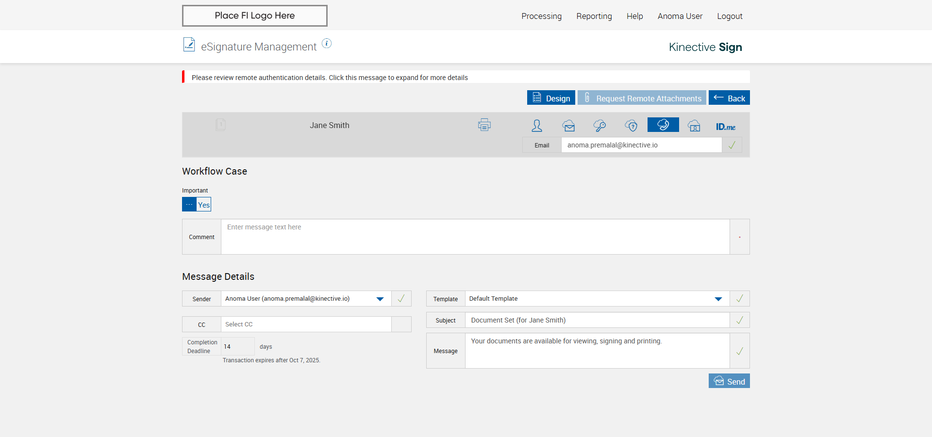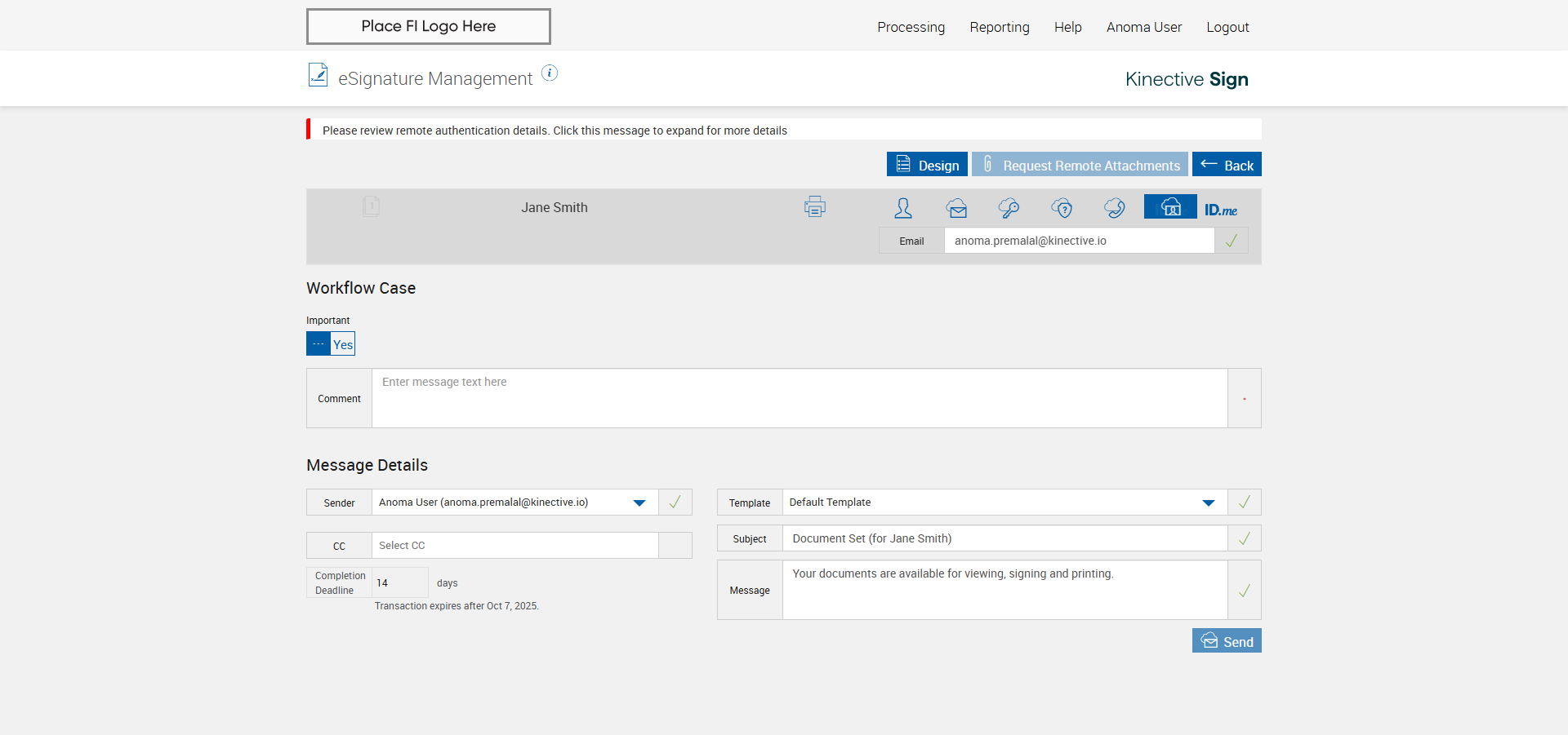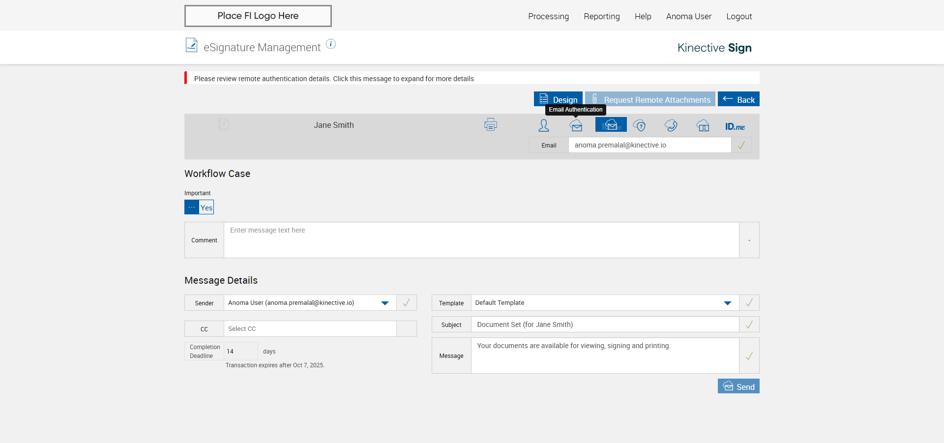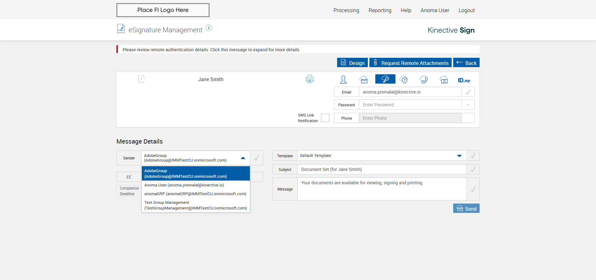 (verify Sender Email with Groupt Email In eSignature Management Page RTS)