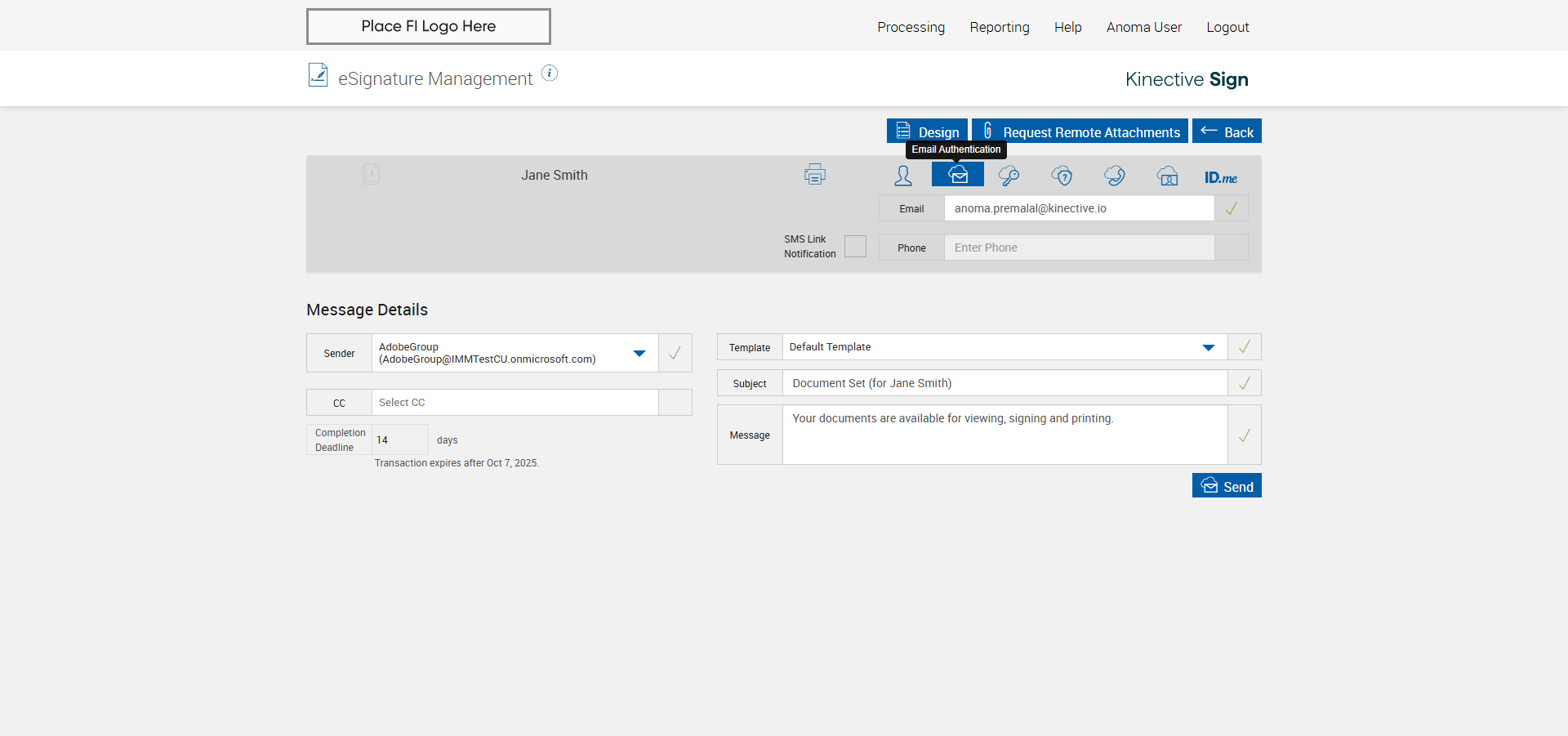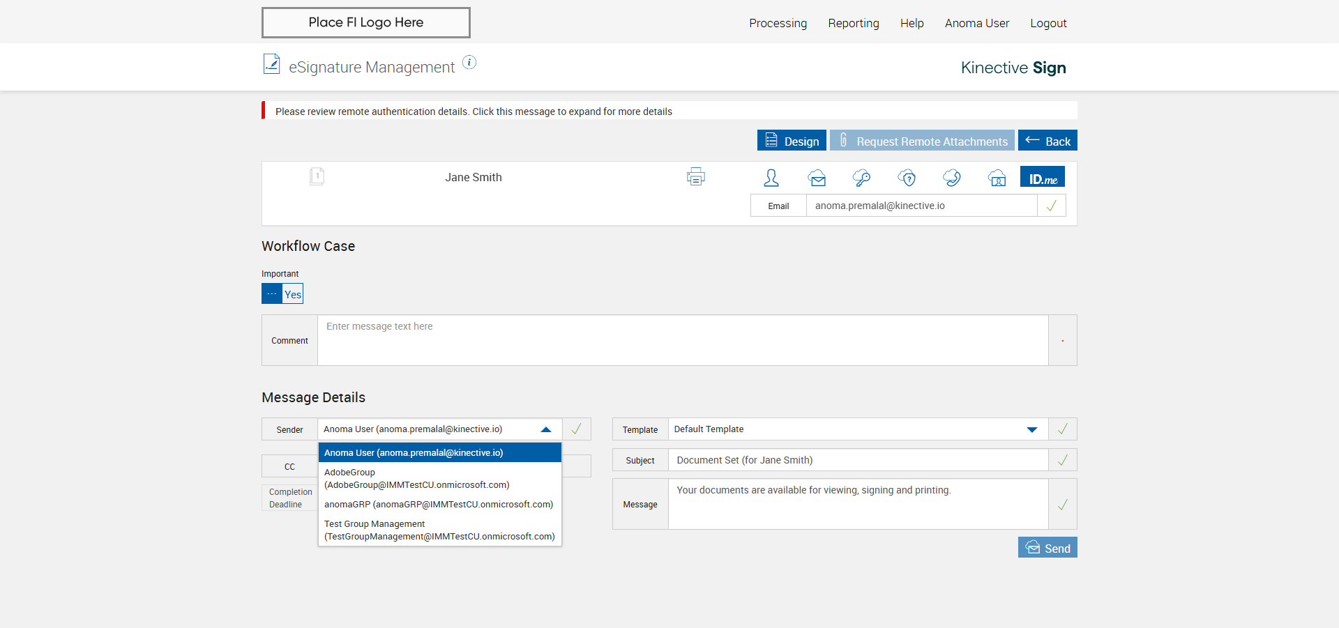 verify Sender Email With Group Email In eSignature Management Page RTS- Sign Fi when default sender is not blank COMMENTS:Group email