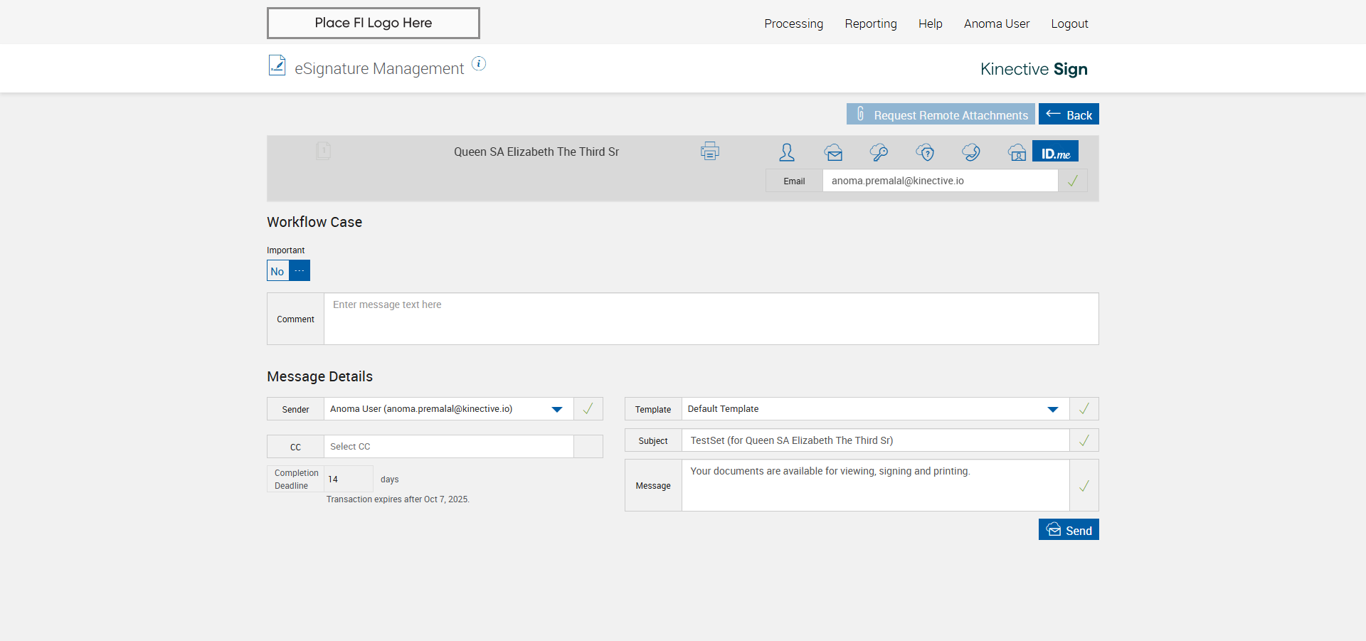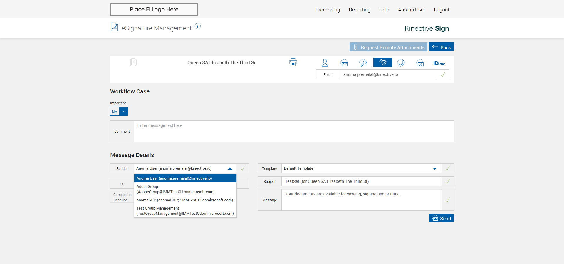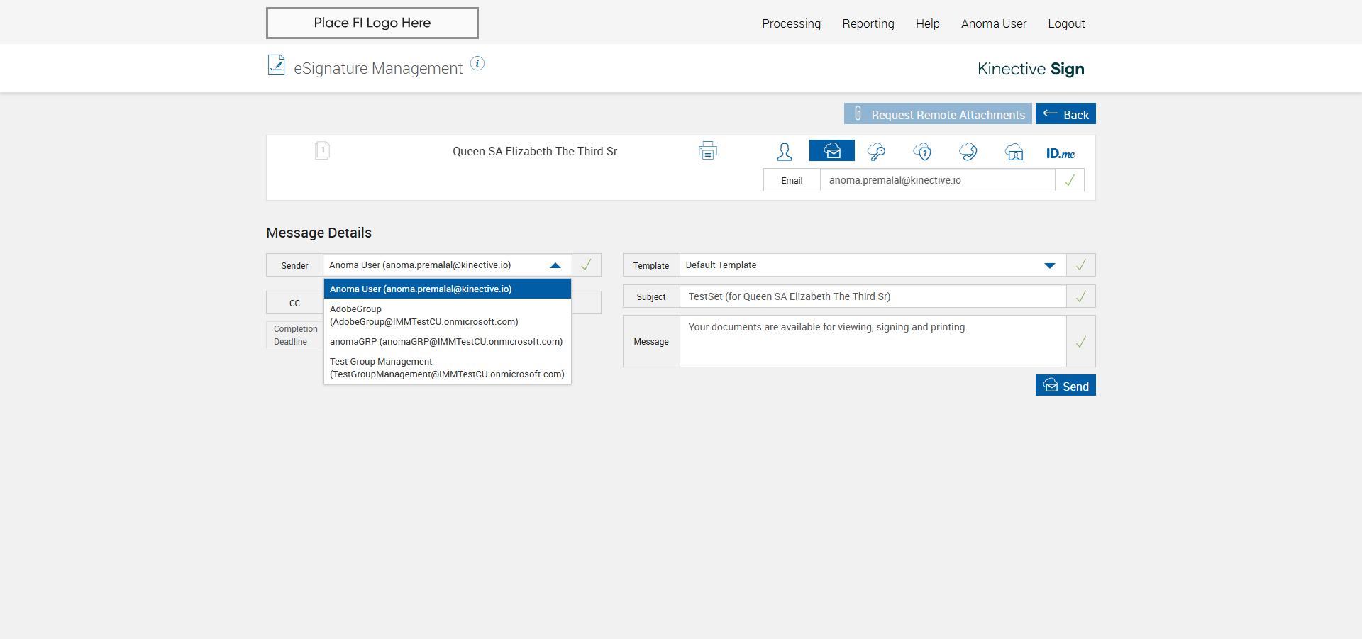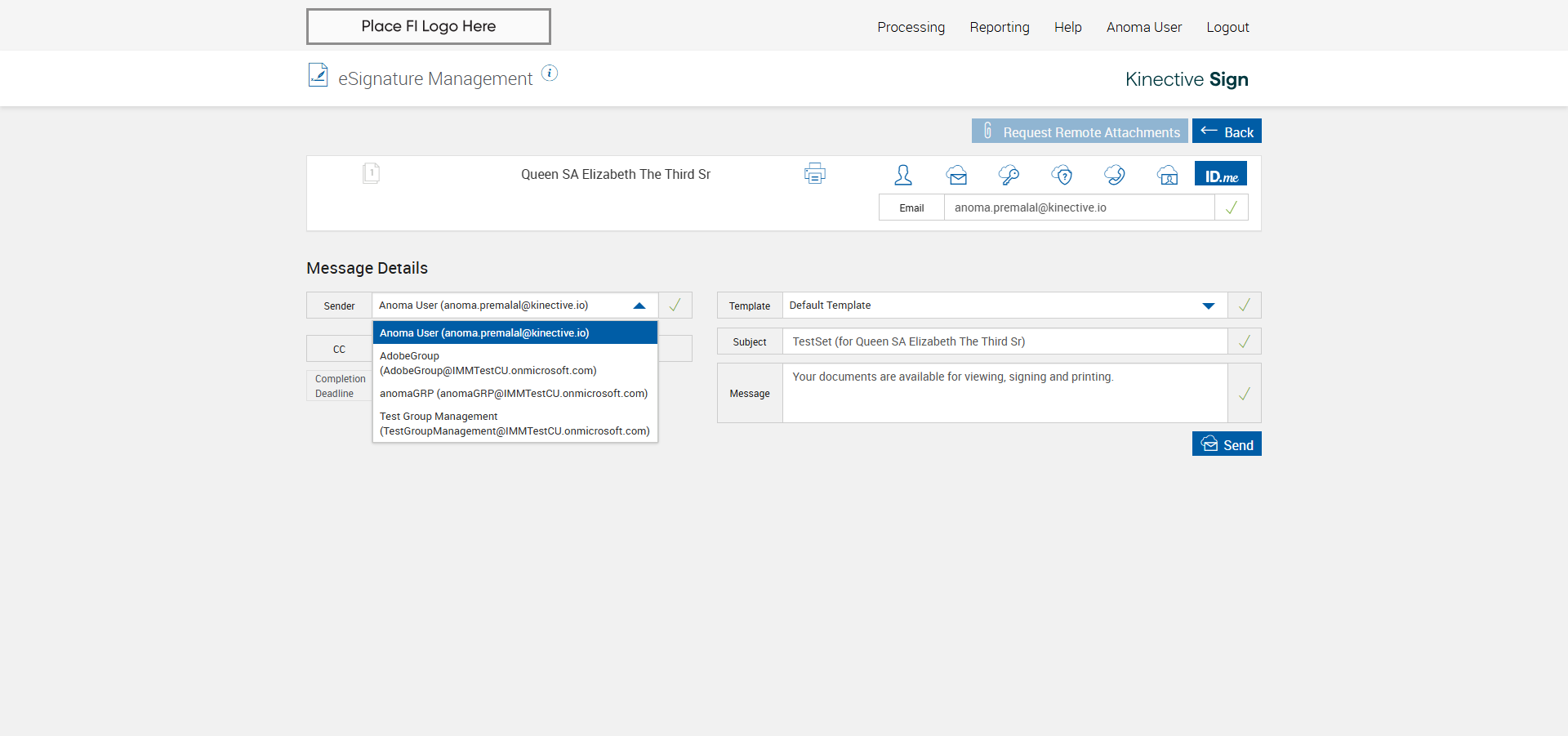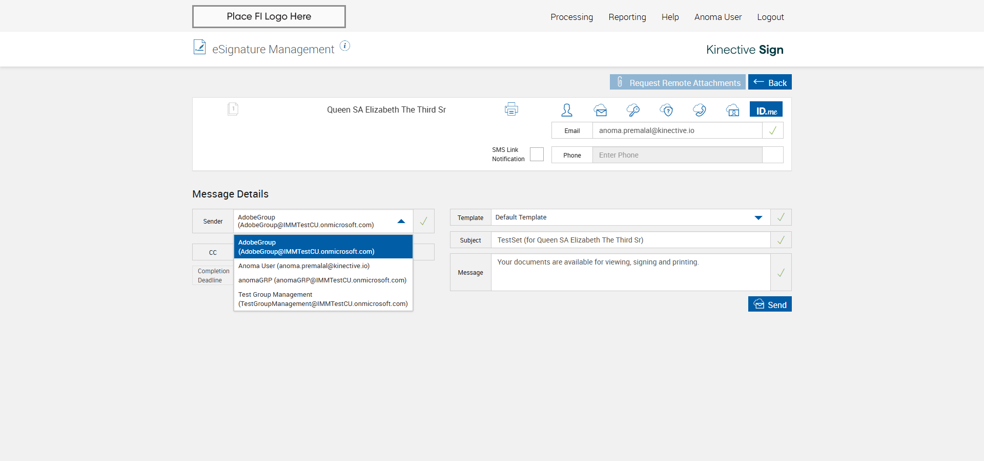 verify Sender Email With Group Email In eSignature Management Page XML - When Default sender dropdown is blank COMMENTS: