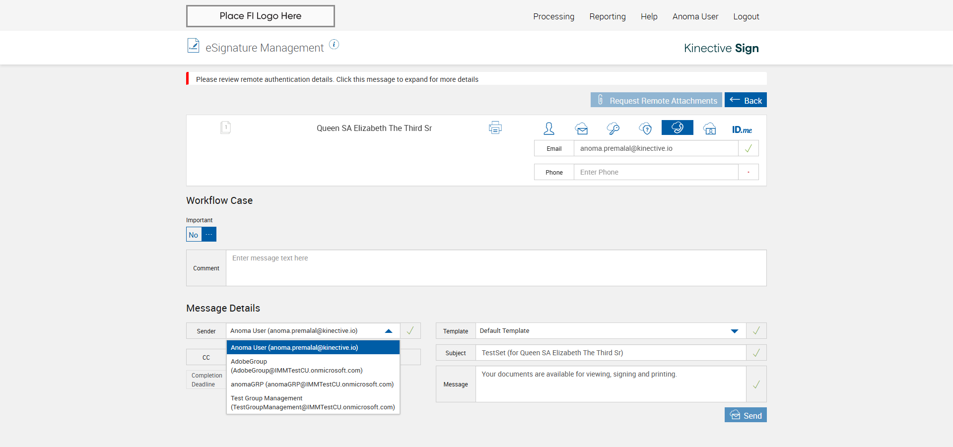 (verify eSender Email With Group Email In eSignature Management Page RTS)