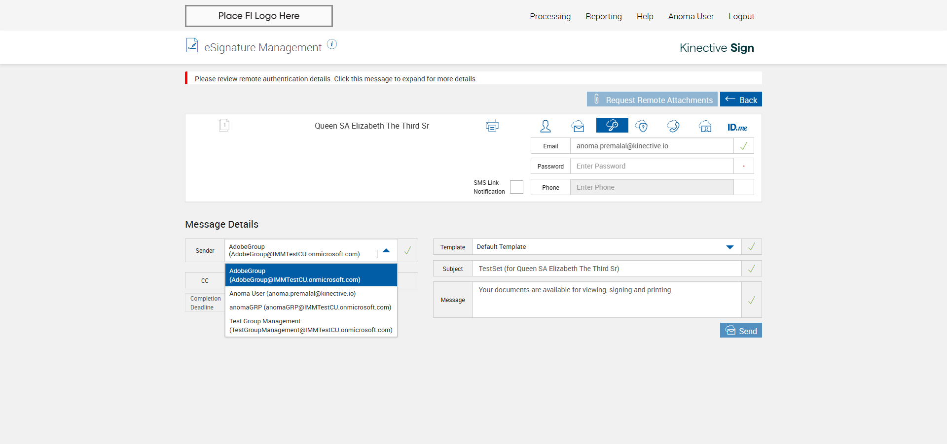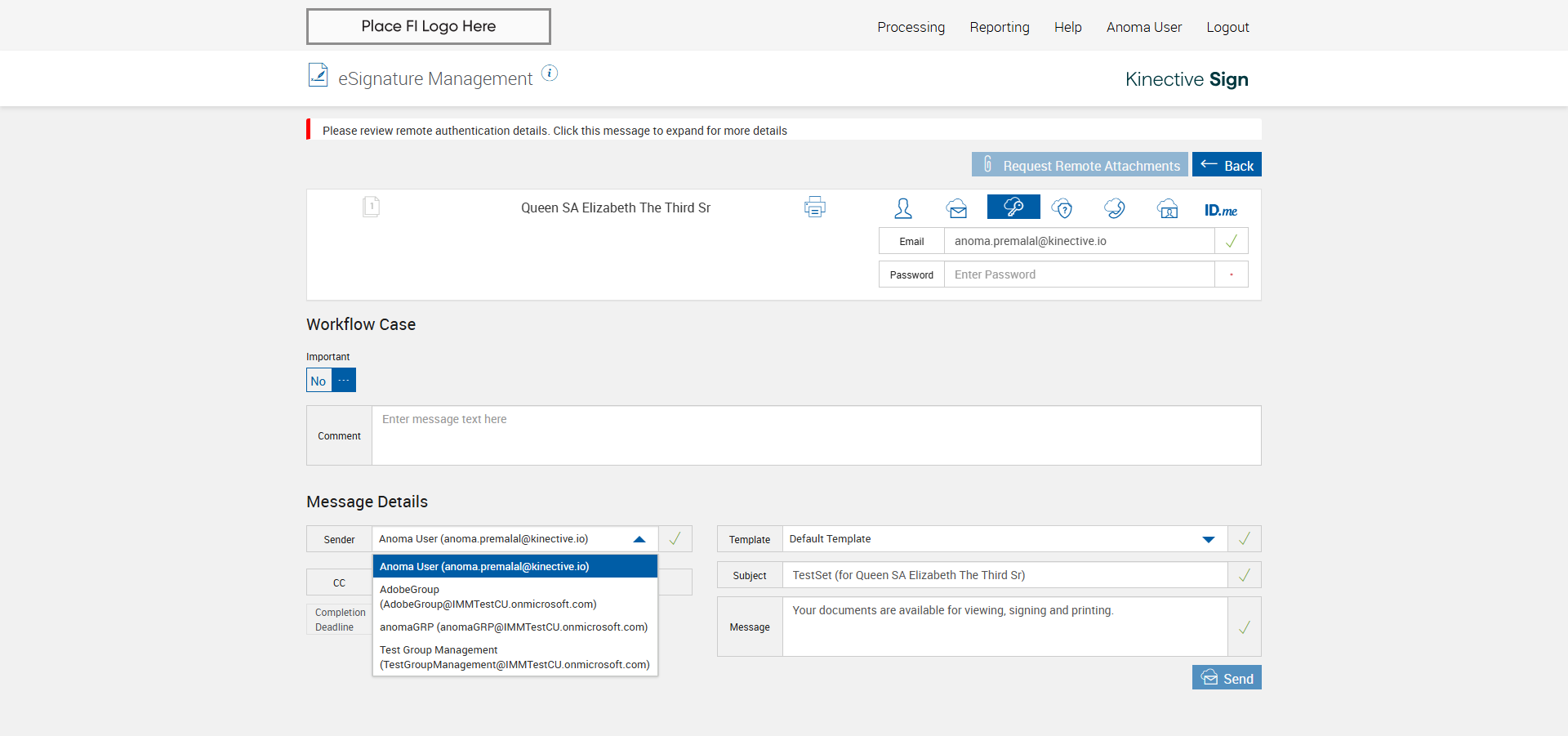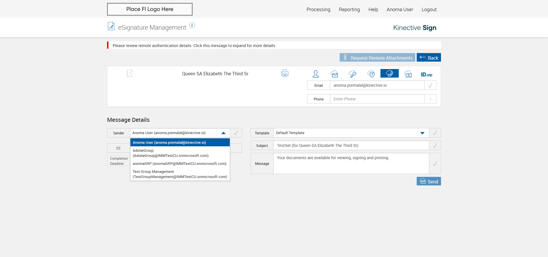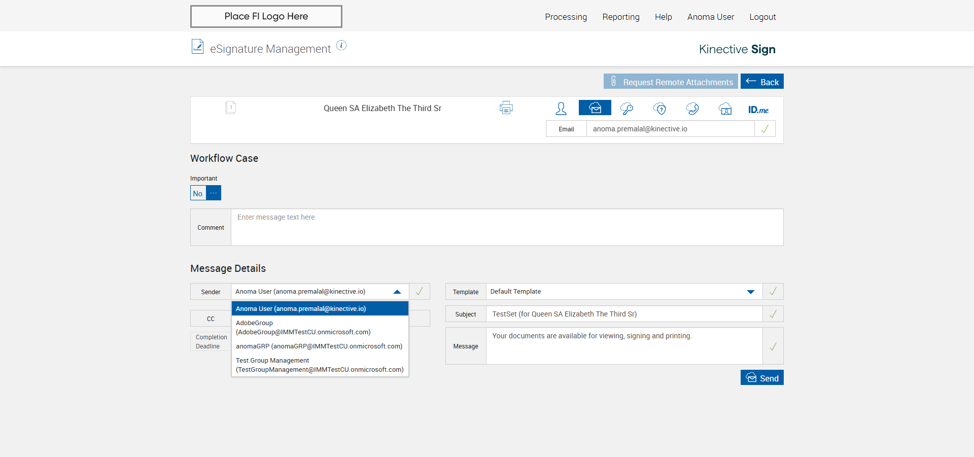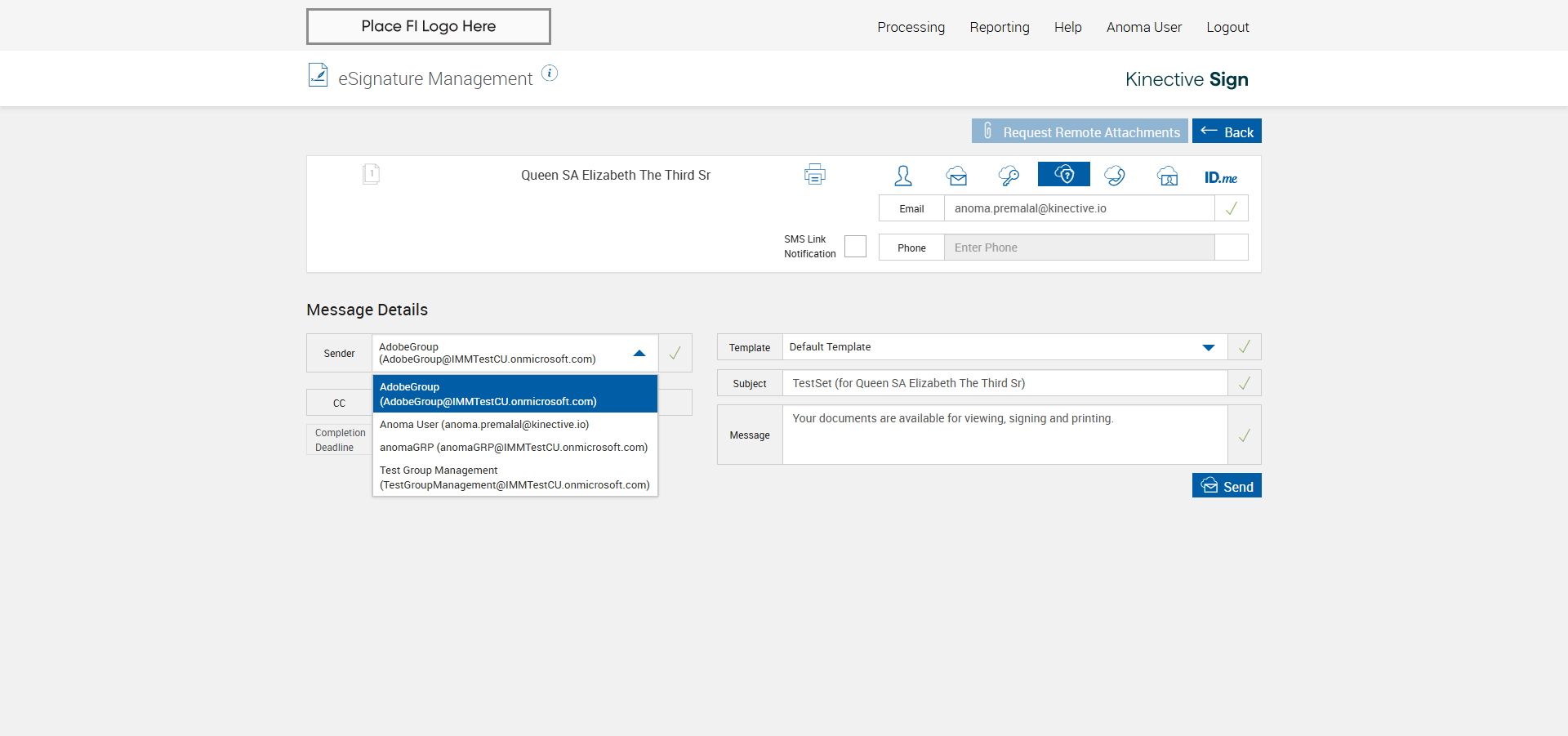 verify Sender Email With Group Email In eSignature Management Page XML - Plus FI COMMENTS: