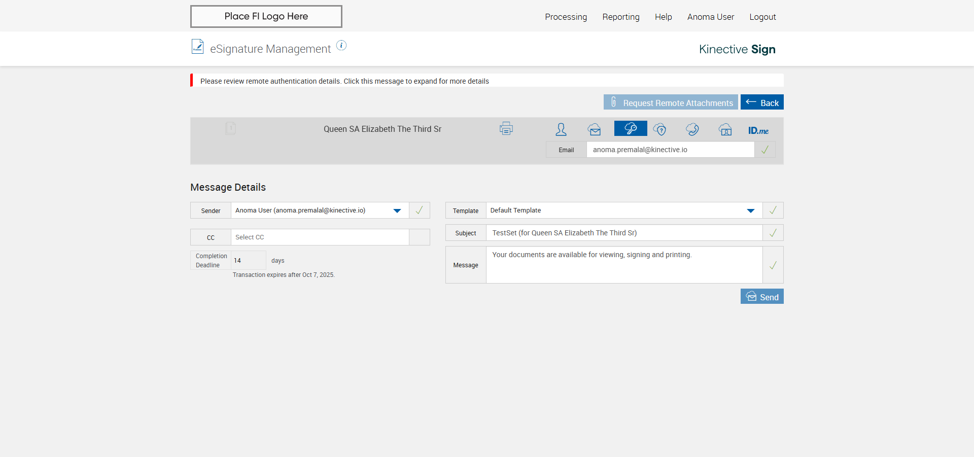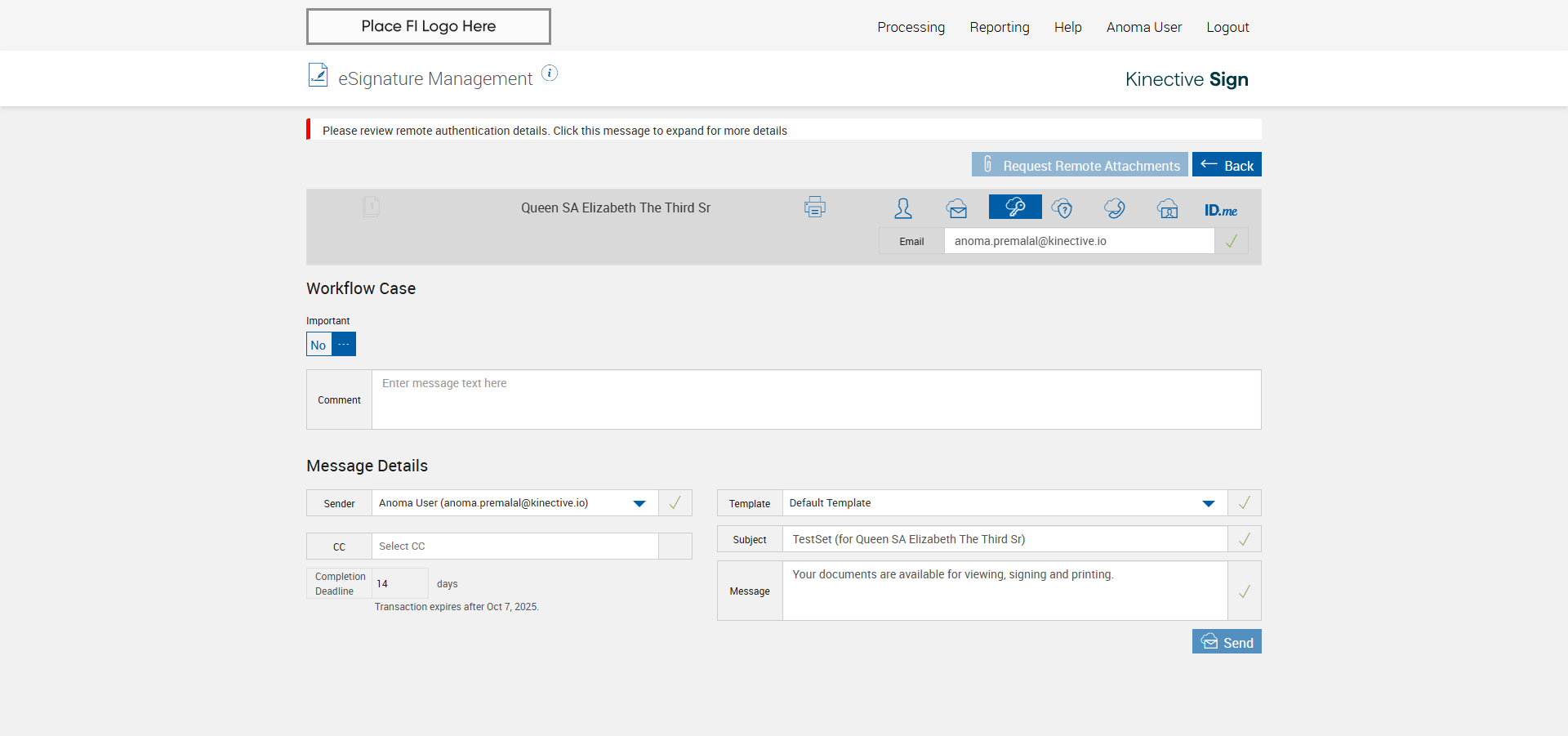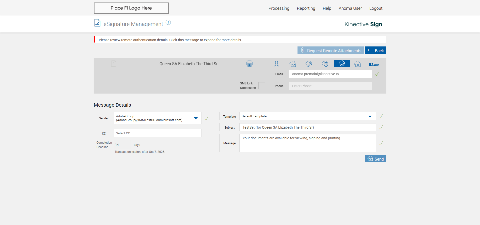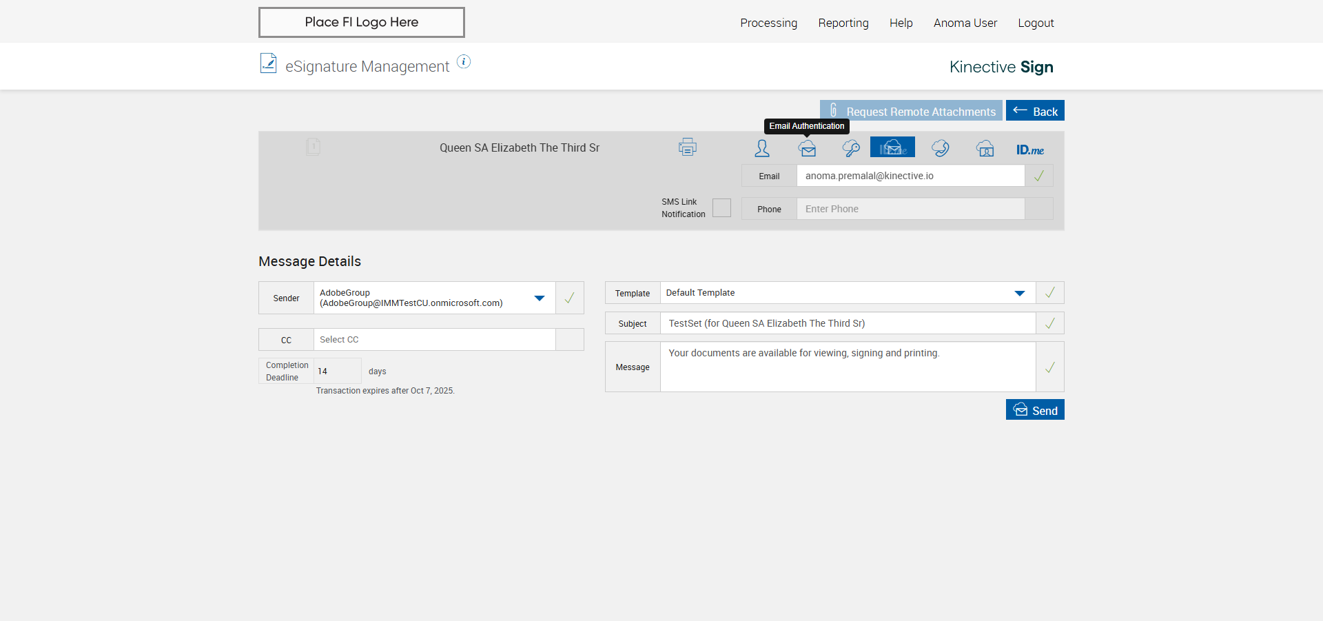 verify Sender Email With Group Email In eSignature Management Page XML - Plus FI COMMENTS: