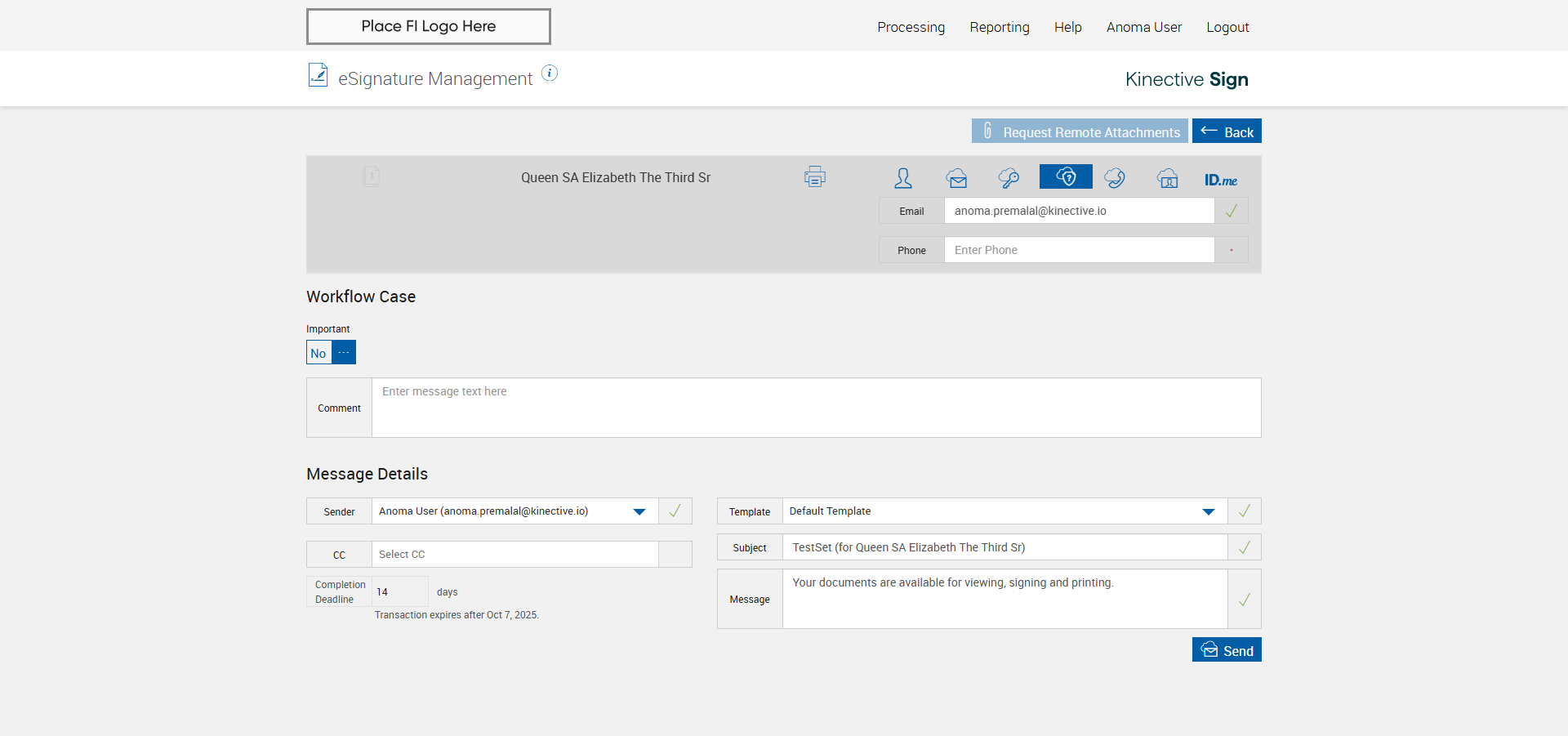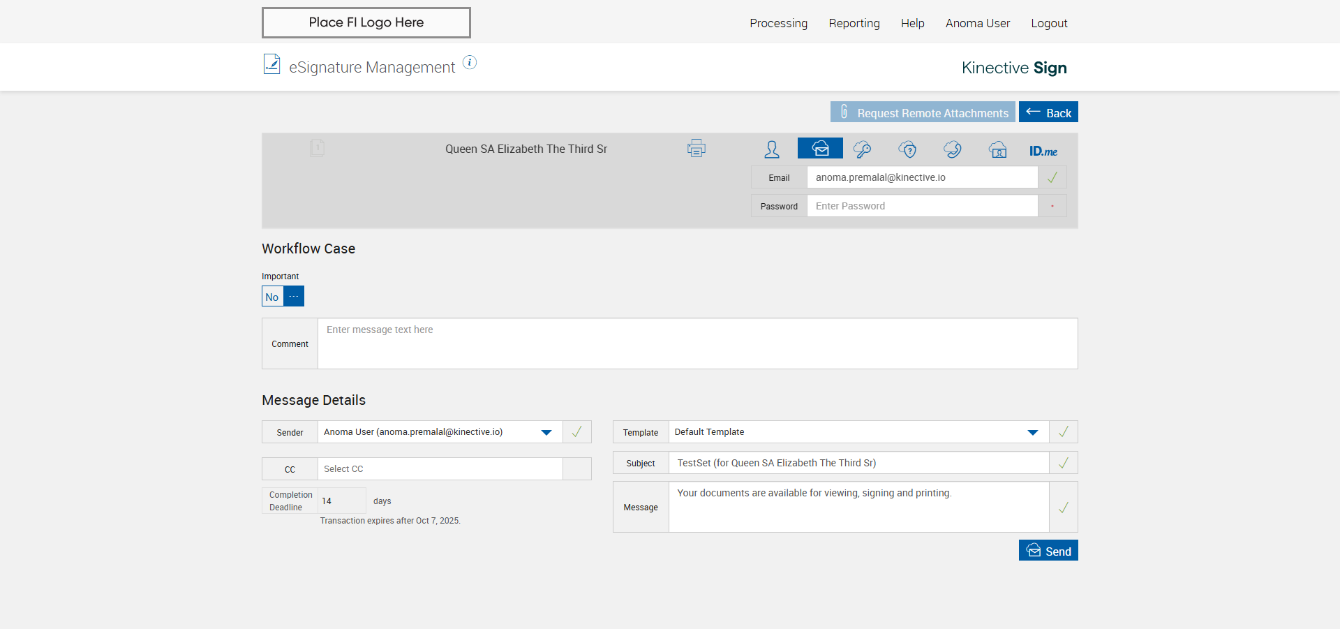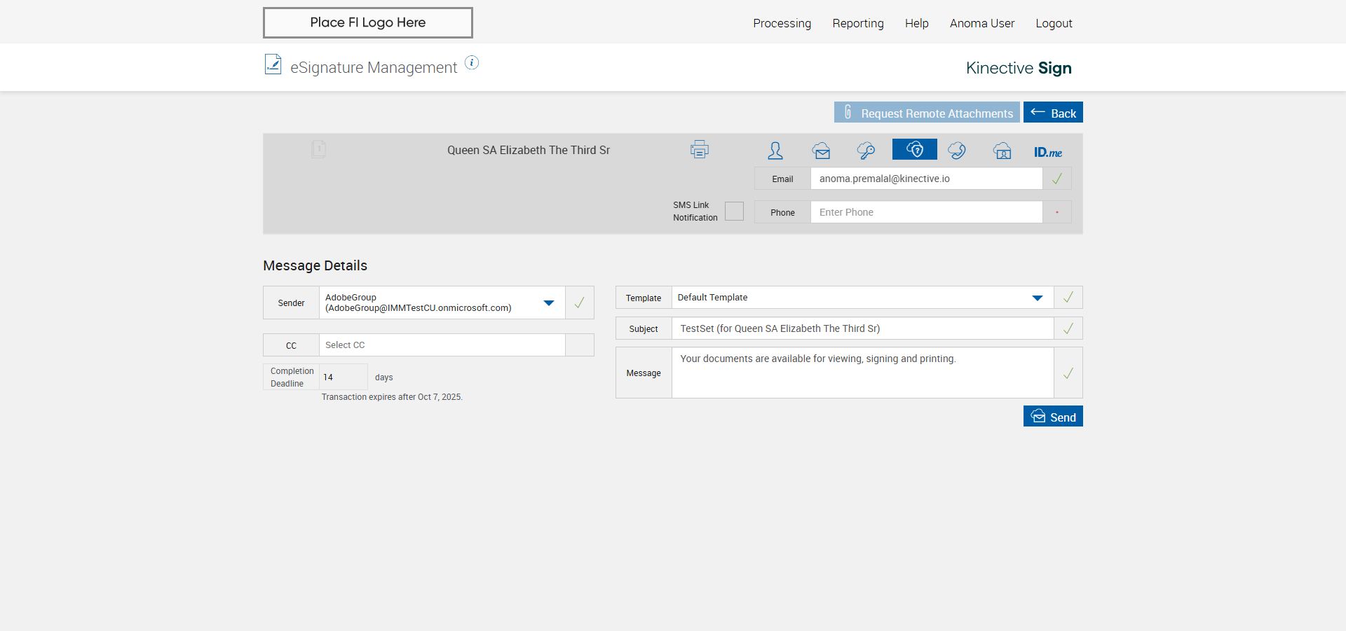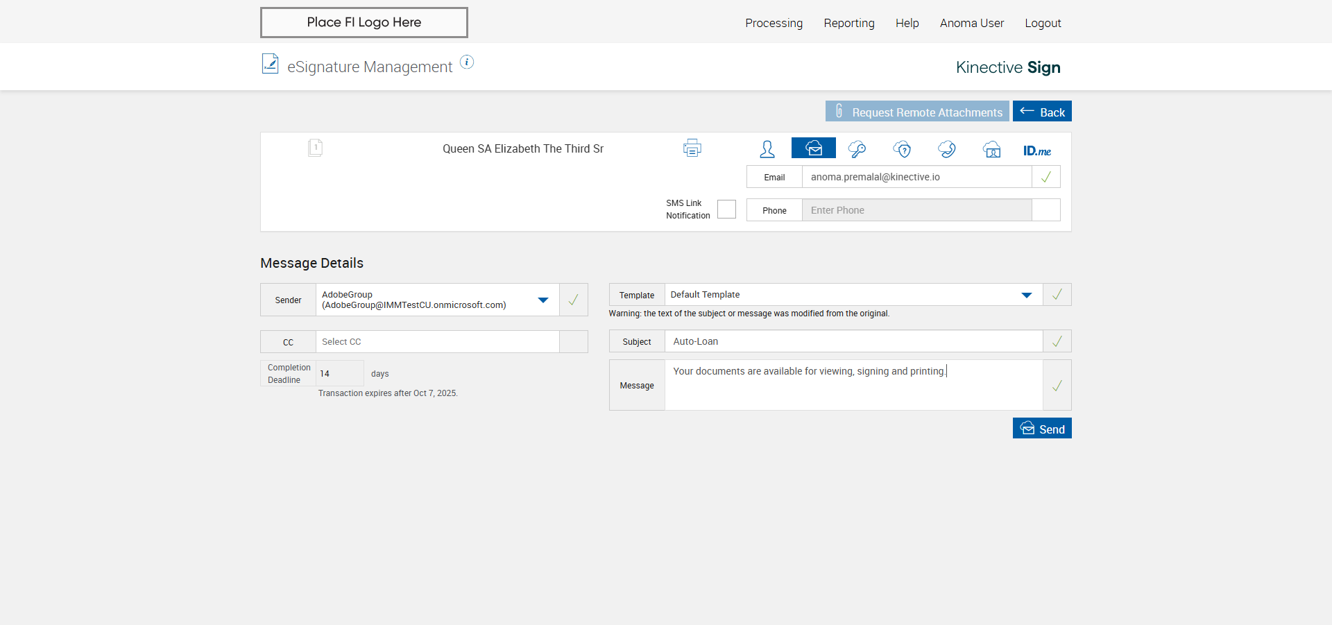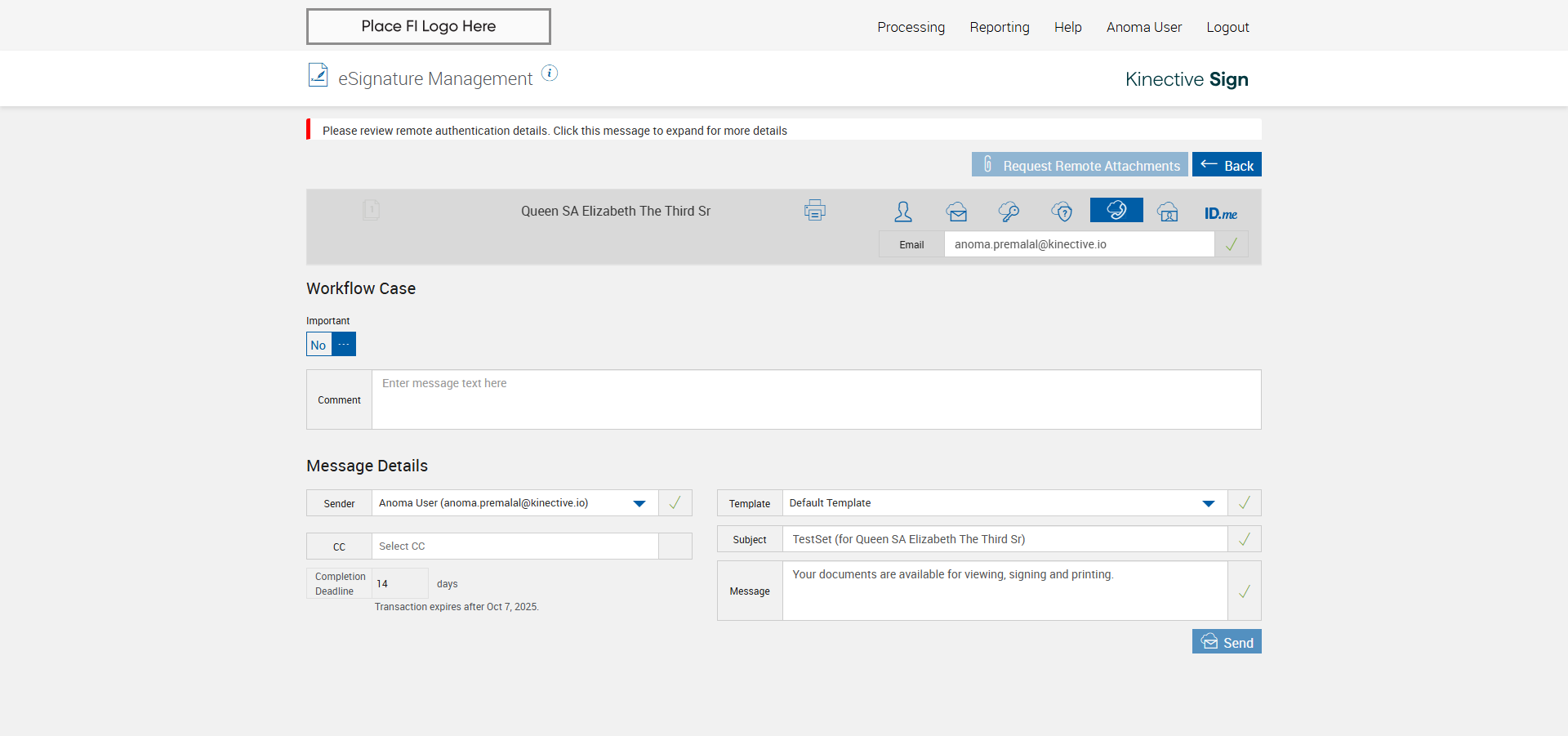verify Sender Email With Group Email In eSignature Management Page XML - Plus FI COMMENTS: