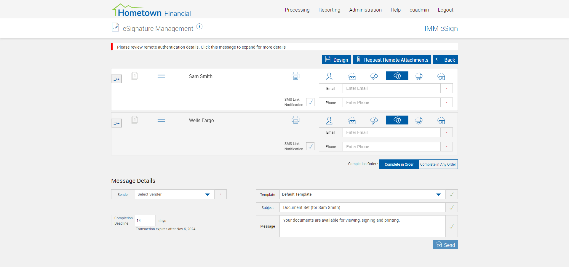 (verify Adobe SMS Email Authentication Signing Method RTS Session)