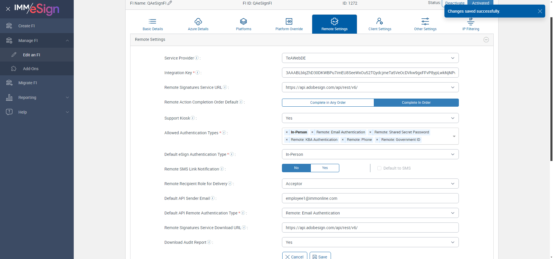 Successfully navigated to 'Manage FI' page [ScreenShot]
