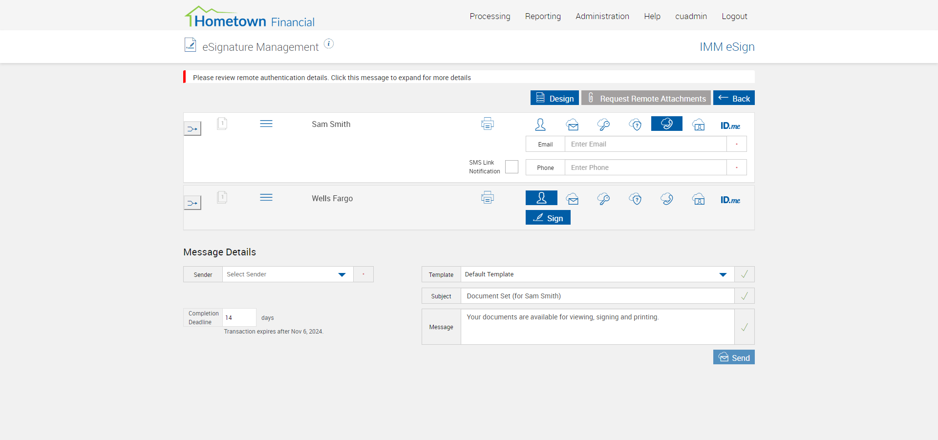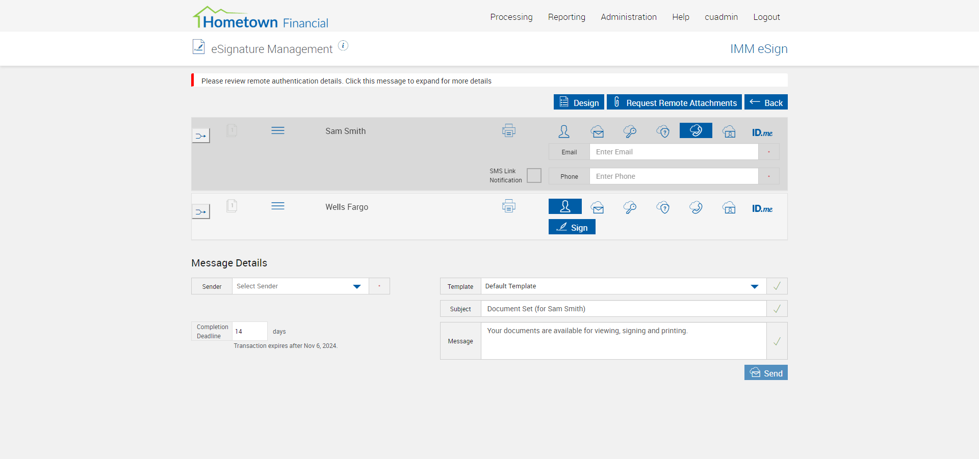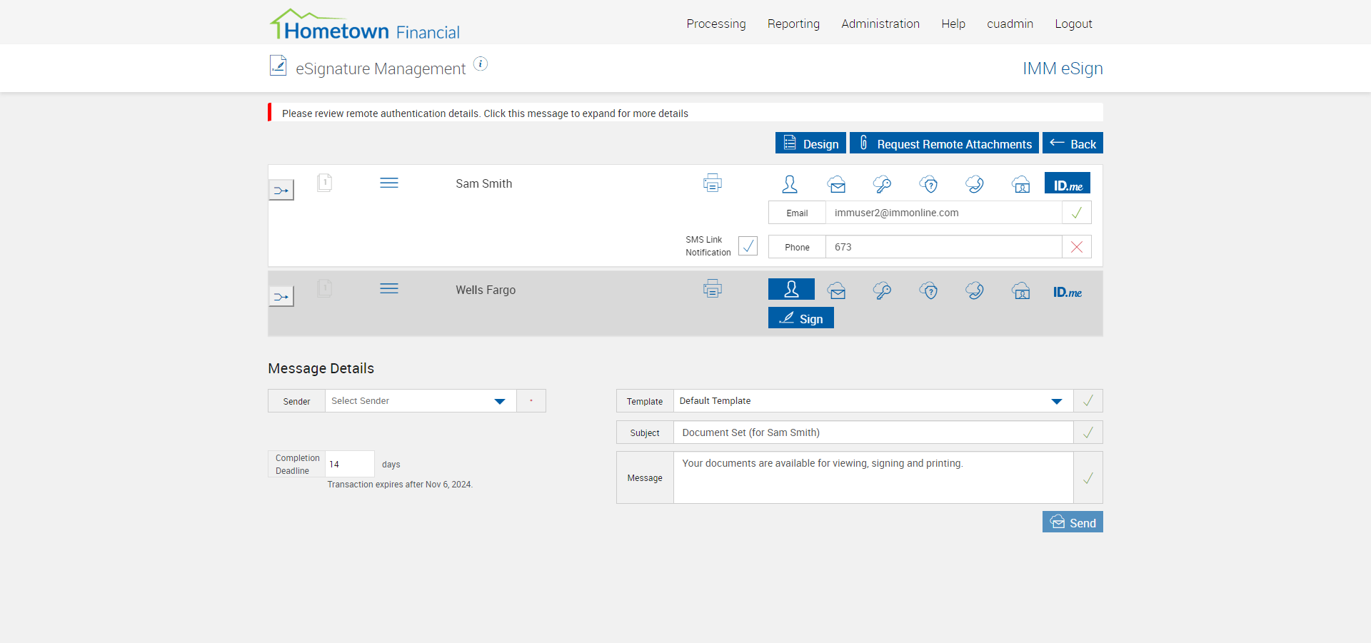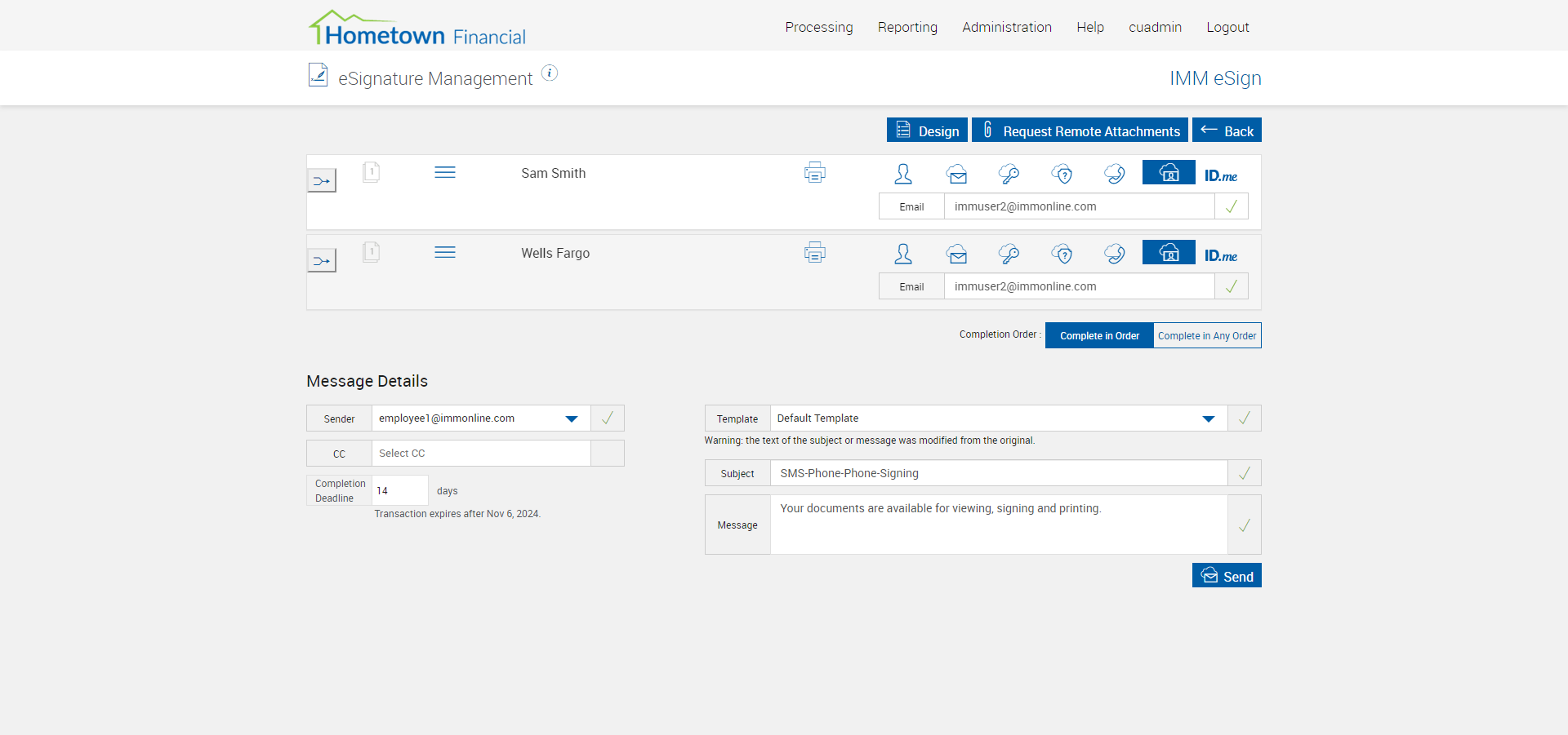 (verify Adobe SMS In Person Signing Method RTS Session)
