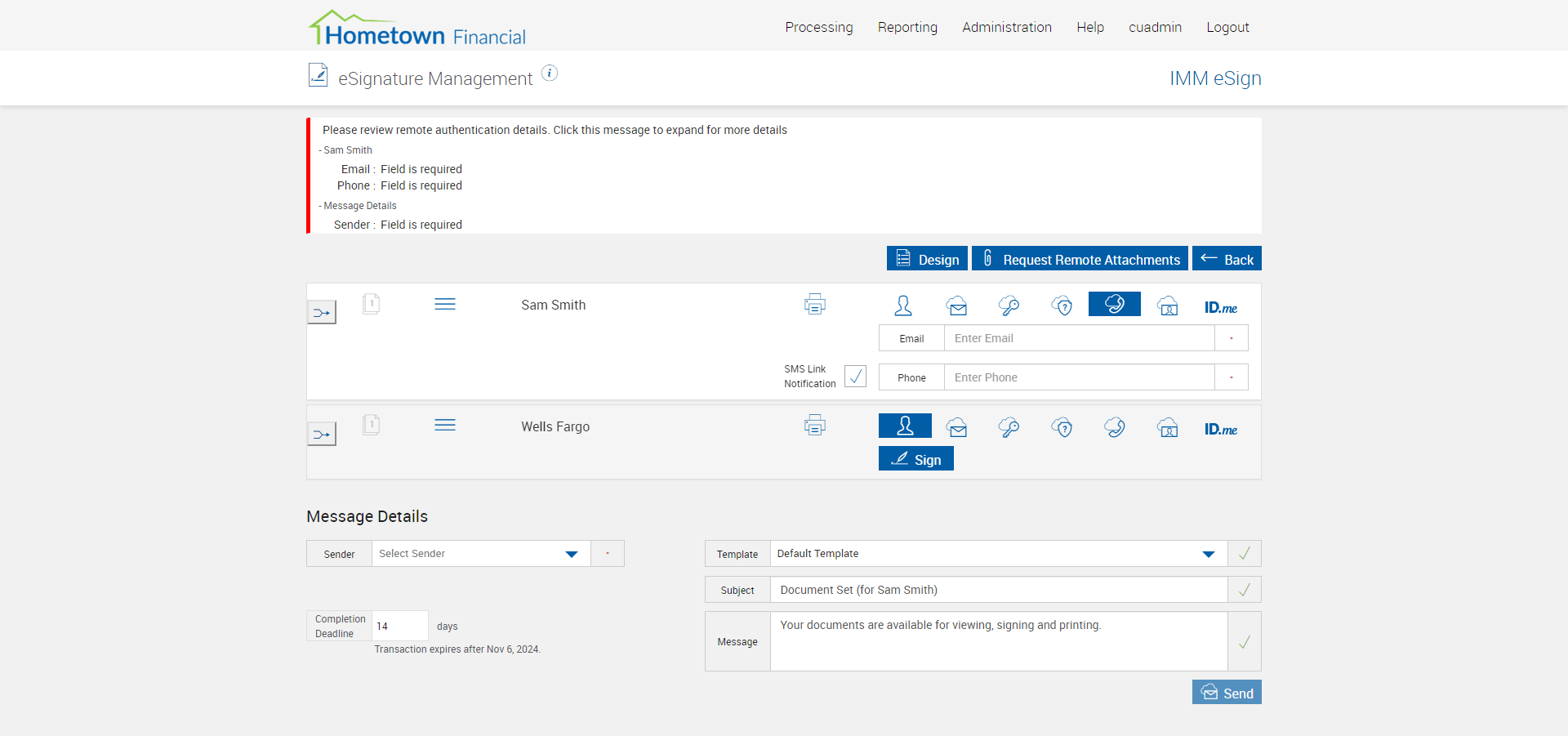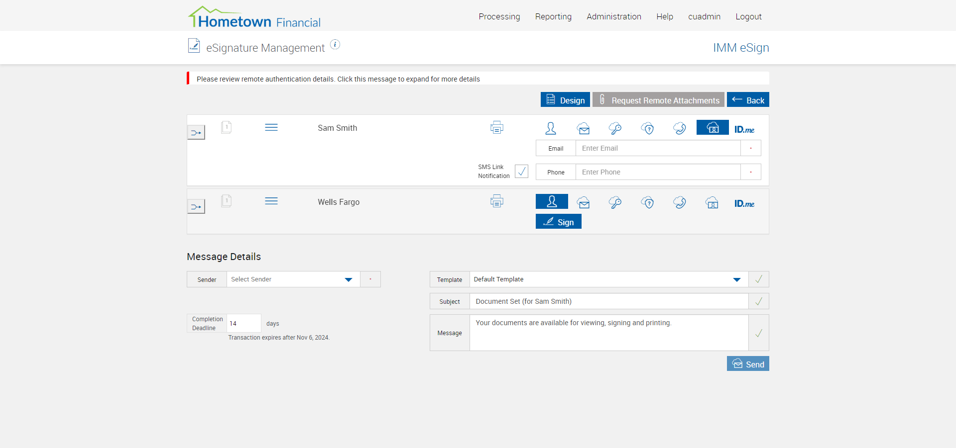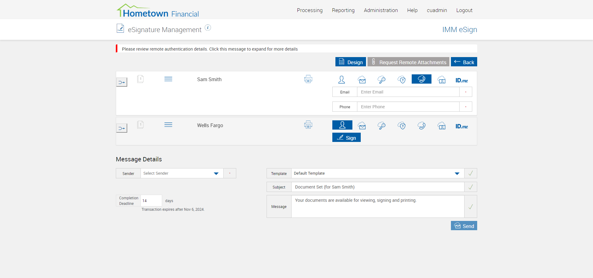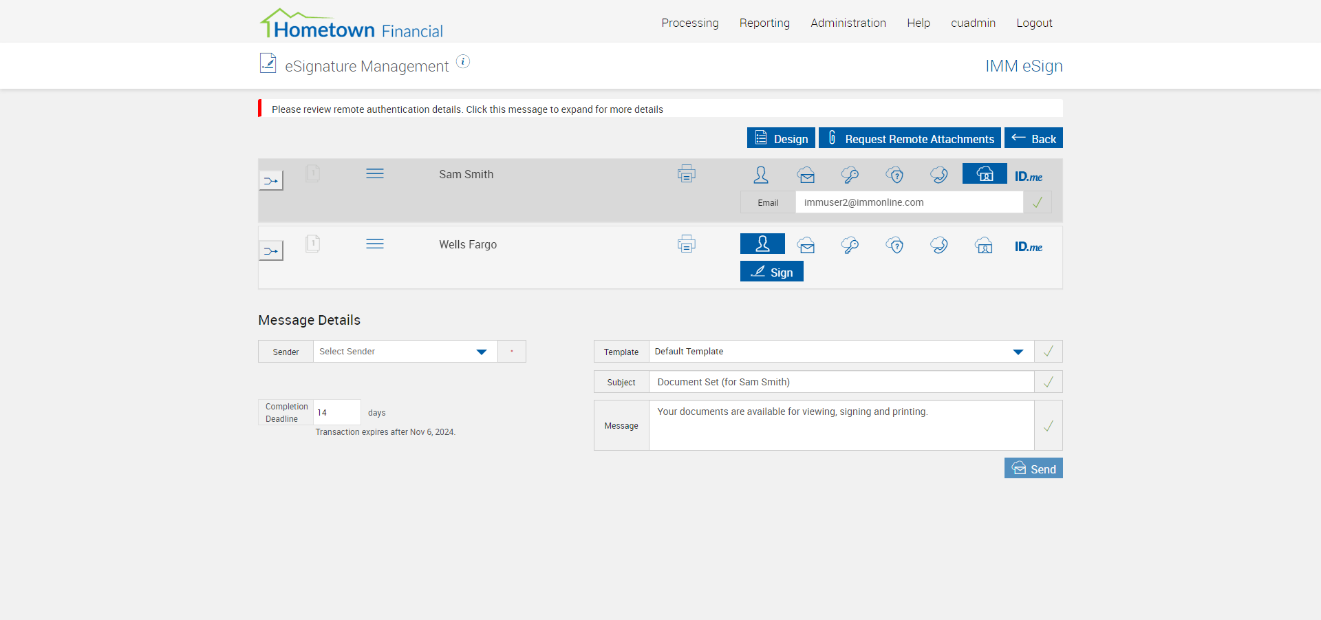 (verify Adobe SMS In Person Signing Method RTS Session)