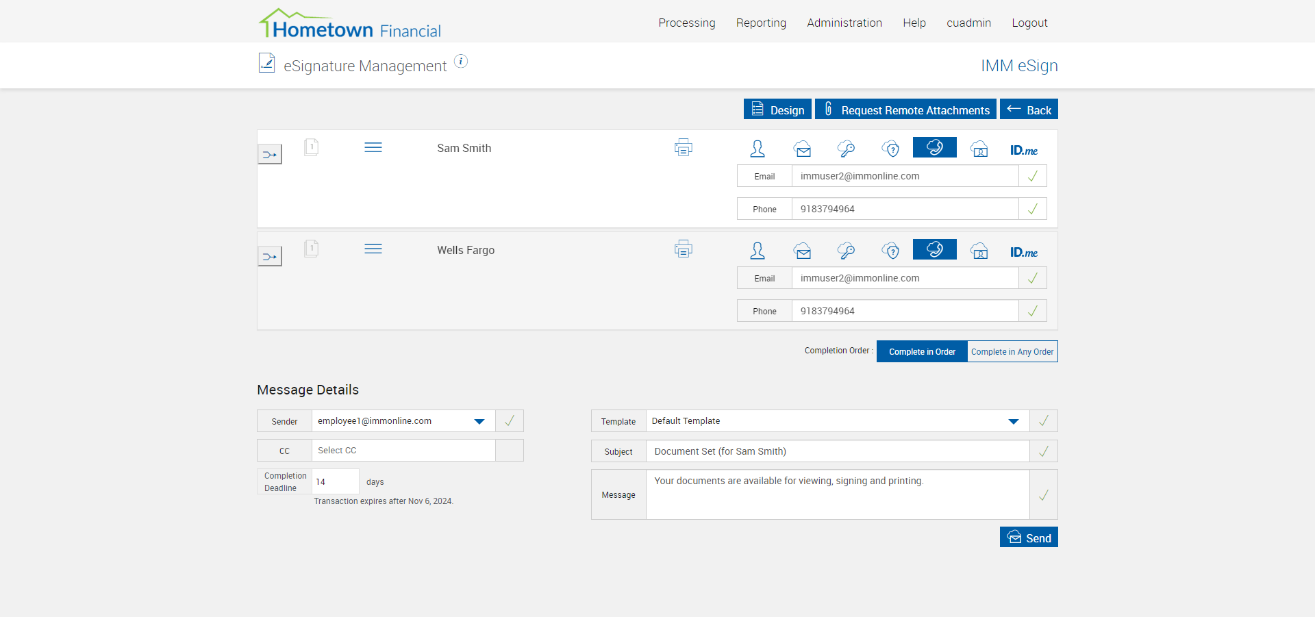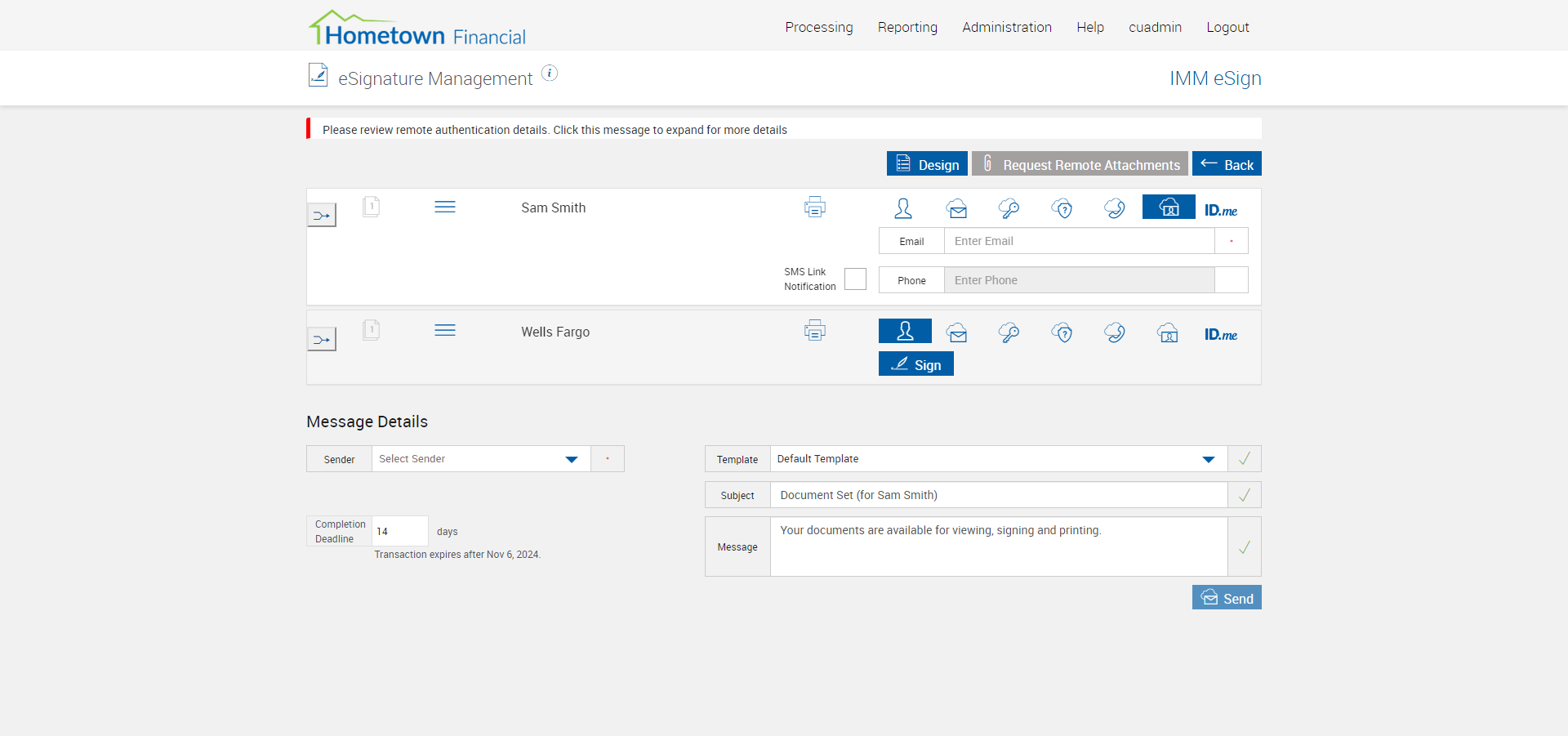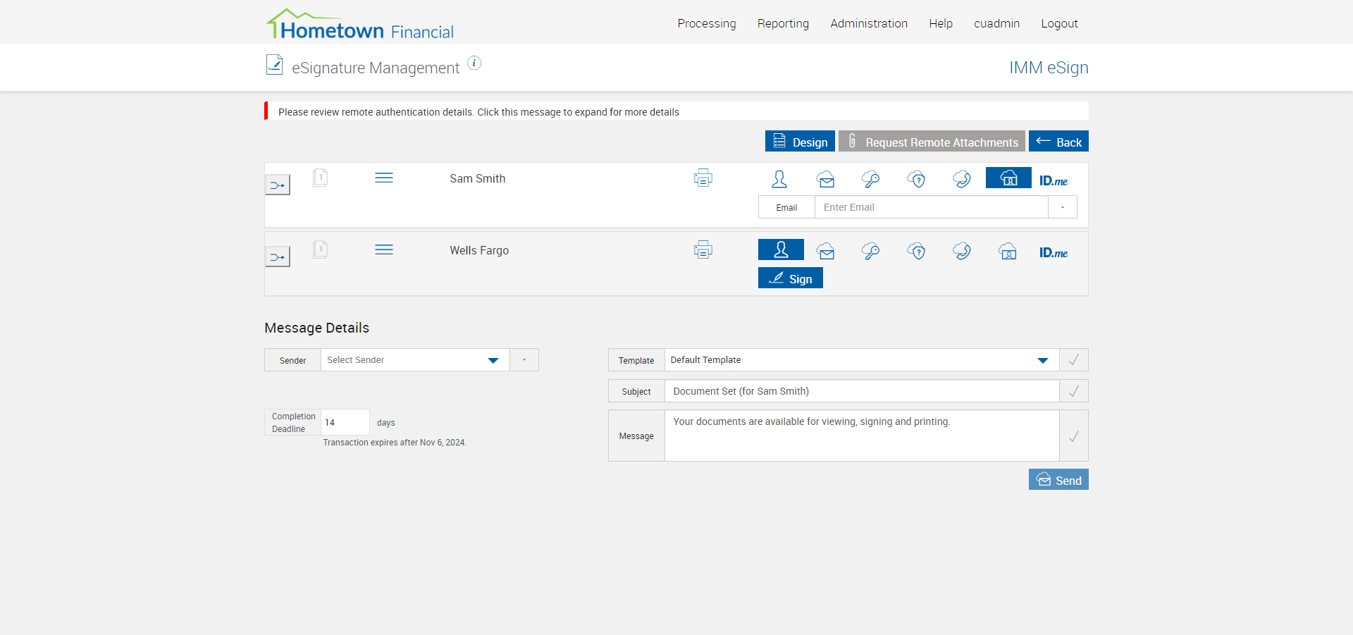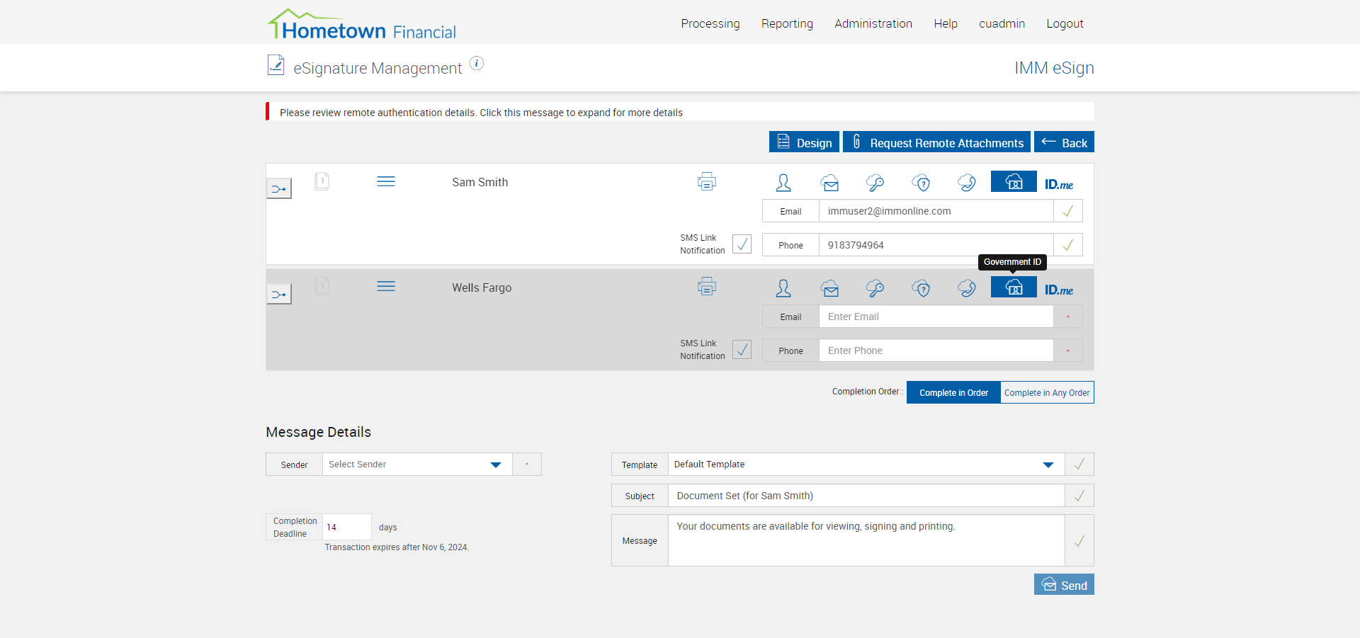 (verify Adobe SMS In Person Signing Method RTS Session)