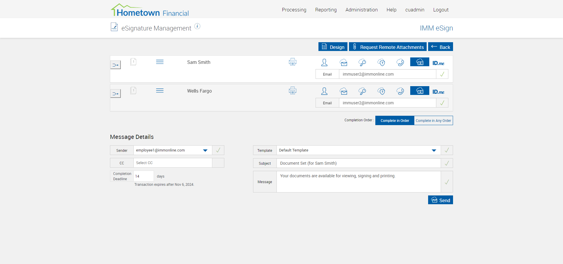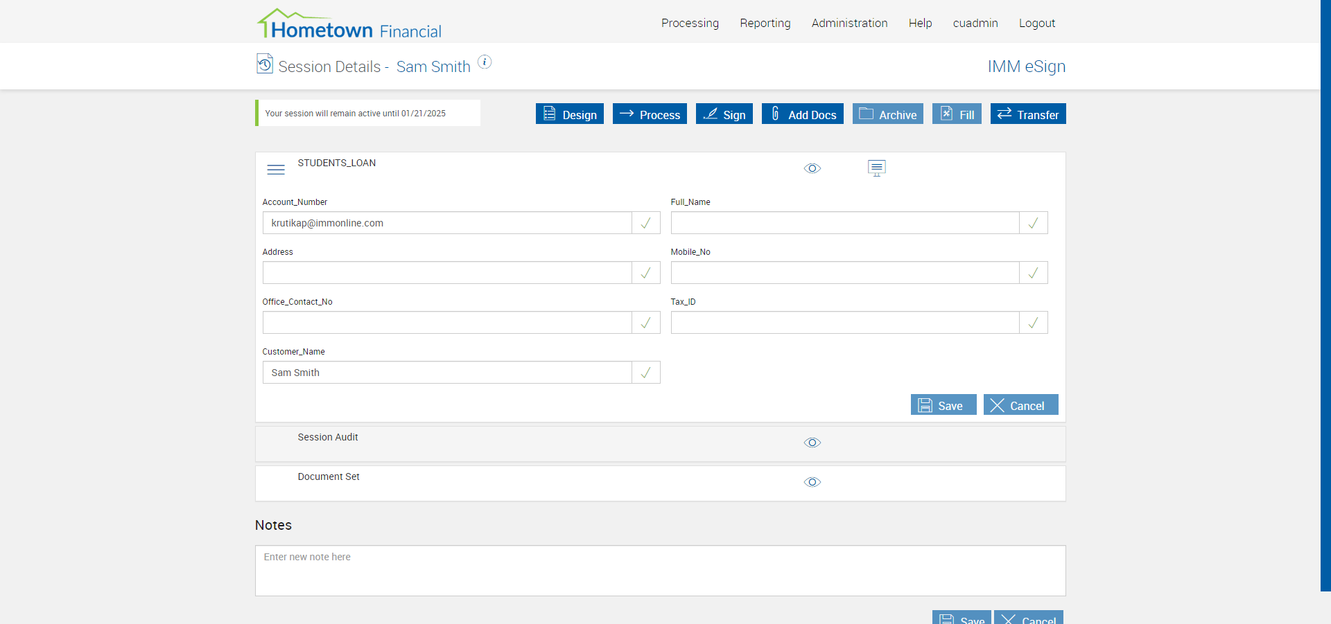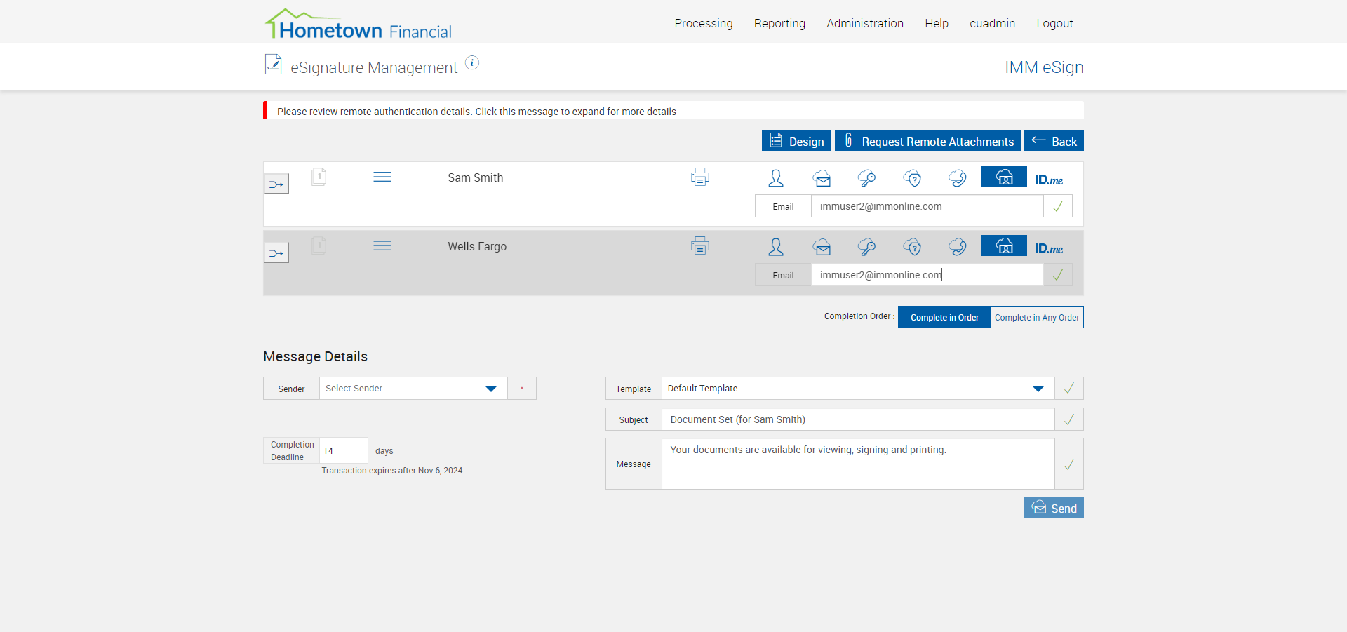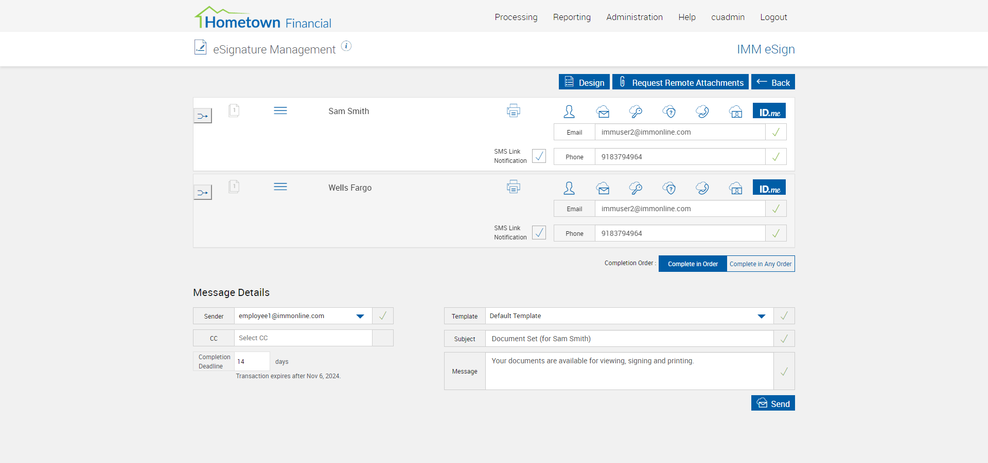 (verify Adobe SMS In Person Signing Method RTS Session)