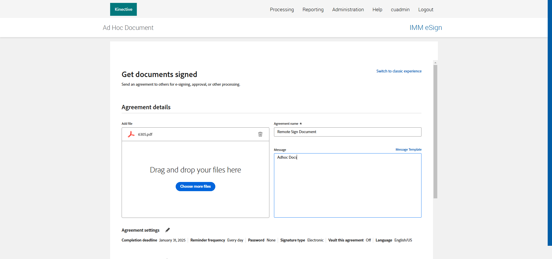 --- 24 Jan 14:13:04 278 - TestCaseID:: CreateAdHocTransaction --- 24 Jan 14:13:07 335 - 3 - Driver::initialize::Get - com.imm.support.WebDriverFactory.get(WebDriverFactory.java:558) CreateAdHocTransaction Steps: --- 24 Jan 14:13:12 240 - Page URL:: https://esignplusqa.immesign.com/teaasp/login.aspx --- 24 Jan 14:13:12 241 - 3 - Page Load Wait: (Sync) - com.imm.support.Utils.waitForPageLoad(Utils.java:116) --- 24 Jan 14:13:12 503 - Element is displayed using Selenide:: [[RemoteWebDriver: chrome on Windows 10 (aecfa84725e0cdca3d2e82df37e4221e)] -> id: btnSubmit] Navigated to 'eSign Login' page --- 24 Jan 14:13:12 610 - Element is displayed using Selenide:: [[RemoteWebDriver: chrome on Windows 10 (aecfa84725e0cdca3d2e82df37e4221e)] -> xpath: //input[@id='ctl00_cph1_txtHSFIID']] Entered values for the fields in 'Login' page [ScreenShot] --- 24 Jan 14:13:13 523 - Element is displayed using Selenide:: [[RemoteWebDriver: chrome on Windows 10 (aecfa84725e0cdca3d2e82df37e4221e)] -> id: btnSubmit] --- 24 Jan 14:13:33 096 - Element is displayed using Selenide:: [[RemoteWebDriver: chrome on Windows 10 (aecfa84725e0cdca3d2e82df37e4221e)] -> id: lightbox] --- 24 Jan 14:13:33 212 - Element is displayed using Selenide:: [[RemoteWebDriver: chrome on Windows 10 (aecfa84725e0cdca3d2e82df37e4221e)] -> id: i0116] --- 24 Jan 14:13:34 063 - Element is displayed using Selenide:: [[RemoteWebDriver: chrome on Windows 10 (aecfa84725e0cdca3d2e82df37e4221e)] -> id: idSIButton9] --- 24 Jan 14:13:39 513 - Page URL:: https://login.microsoftonline.com/common/login --- 24 Jan 14:13:39 514 - 3 - Page Load Wait: (Sync) - com.imm.support.Utils.waitForPageLoad(Utils.java:116) --- 24 Jan 14:13:39 611 - Element is displayed using Selenide:: [[RemoteWebDriver: chrome on Windows 10 (aecfa84725e0cdca3d2e82df37e4221e)] -> id: lightbox] --- 24 Jan 14:13:39 727 - Element is displayed using Selenide:: [[RemoteWebDriver: chrome on Windows 10 (aecfa84725e0cdca3d2e82df37e4221e)] -> id: idSIButton9] --- 24 Jan 14:13:45 079 - Page URL:: https://esignplusqa.immesign.com/teaasp/documentmntc.aspx --- 24 Jan 14:13:45 080 - 5 - Page Load Wait: (Sync) - com.imm.support.Utils.waitForPageLoad(Utils.java:116) --- 24 Jan 14:13:45 186 - Element is displayed using Selenide:: [[RemoteWebDriver: chrome on Windows 10 (aecfa84725e0cdca3d2e82df37e4221e)] -> id: btnUpload] --- 24 Jan 14:13:48 357 - Page URL:: https://esignplusqa.immesign.com/teaasp/documentmntc.aspx --- 24 Jan 14:13:48 358 - 3 - Page Load Wait: (Sync) - com.imm.support.Utils.waitForPageLoad(Utils.java:116) --- 24 Jan 14:13:48 461 - Element is displayed using Selenide:: [[RemoteWebDriver: chrome on Windows 10 (aecfa84725e0cdca3d2e82df37e4221e)] -> css selector: .header] Login as FiAdmin with Existing FI : autest --- 24 Jan 14:13:48 556 - Element is displayed using Selenide:: [[RemoteWebDriver: chrome on Windows 10 (aecfa84725e0cdca3d2e82df37e4221e)] -> xpath: //a[text()='Processing']] Successfully navigated to 'Ad-Hoc Documents' page [ScreenShot] --- 24 Jan 14:13:59 422 - Element is displayed using Selenide:: [[RemoteWebDriver: chrome on Windows 10 (aecfa84725e0cdca3d2e82df37e4221e)] -> id: allow-button] --- 24 Jan 14:13:59 521 - Element is displayed using Selenide:: [[RemoteWebDriver: chrome on Windows 10 (aecfa84725e0cdca3d2e82df37e4221e)] -> id: allow-button] --- 24 Jan 14:14:05 659 - Page URL:: https://esignplusqa.immesign.com/teaasp/adobeview?viewname=compose --- 24 Jan 14:14:05 660 - 5 - Page Load Wait: (Sync) - com.imm.support.Utils.waitForPageLoad(Utils.java:116) Clicked on email confirmation 'Yes' button [ScreenShot] Adohoc document page displayed successfully [ScreenShot] --- 24 Jan 14:14:09 193 - Element is displayed using Selenide:: [[RemoteWebDriver: chrome on Windows 10 (aecfa84725e0cdca3d2e82df37e4221e)] -> xpath: //*[text()='Choose files']] Clicked on 'Choose File' Button' [ScreenShot] --- 24 Jan 14:14:09 737 - Element is displayed using Selenide:: [[RemoteWebDriver: chrome on Windows 10 (aecfa84725e0cdca3d2e82df37e4221e)] -> xpath: //div[@class='b5Gu6W_spectrum-Dropzone']] File Dragged and dropped to clipboard [ScreenShot] Successfully uploaded documents [ScreenShot] --- 24 Jan 14:14:12 355 - Element is displayed using Selenide:: [[RemoteWebDriver: chrome on Windows 10 (aecfa84725e0cdca3d2e82df37e4221e)] -> xpath: //*[@class='C64cMW_react-spectrum-ListViewItem-content']] Successfully displayed uploaded document name [ScreenShot] --- 24 Jan 14:14:12 636 - Element is displayed using Selenide:: [[RemoteWebDriver: chrome on Windows 10 (aecfa84725e0cdca3d2e82df37e4221e)] -> xpath: //*[@id="mainContent"]/div/div/div/div/div/div/div/div[3]/div[2]/div[2]/div[1]/div/input] Successfylly diaplayed default Agreement name [ScreenShot] --- 24 Jan 14:14:12 959 - Element is displayed using Selenide:: [[RemoteWebDriver: chrome on Windows 10 (aecfa84725e0cdca3d2e82df37e4221e)] -> xpath: //*[@id="mainContent"]/div/div/div/div/div/div/div/div[3]/div[2]/div[2]/div[1]/div/input] Successfully Updated Agreement name [ScreenShot] --- 24 Jan 14:14:13 834 - Element is displayed using Selenide:: [[RemoteWebDriver: chrome on Windows 10 (aecfa84725e0cdca3d2e82df37e4221e)] -> xpath: //*[@id="mainContent"]/div/div/div/div/div/div/div/div[3]/div[2]/div[2]/div[1]/div/input] Successfylly diaplayed updated Agreement name [ScreenShot] --- 24 Jan 14:14:14 130 - Element is displayed using Selenide:: [[RemoteWebDriver: chrome on Windows 10 (aecfa84725e0cdca3d2e82df37e4221e)] -> xpath: //*[@id="mainContent"]/div/div/div/div/div/div/div/div[3]/div[2]/div[2]/div[2]/div/div[2]/div/textarea] Successfully added a Message [ScreenShot] --- 24 Jan 14:14:14 651 - Element is displayed using Selenide:: [[RemoteWebDriver: chrome on Windows 10 (aecfa84725e0cdca3d2e82df37e4221e)] -> xpath: //*[@id="mainContent"]/div/div/div/div/div/div/div/div[3]/div[2]/div[2]/div[2]/div/div[2]/div/textarea] Successfully displayed the message [ScreenShot] --- 24 Jan 14:14:16 933 - Element is displayed using Selenide:: [[RemoteWebDriver: chrome 