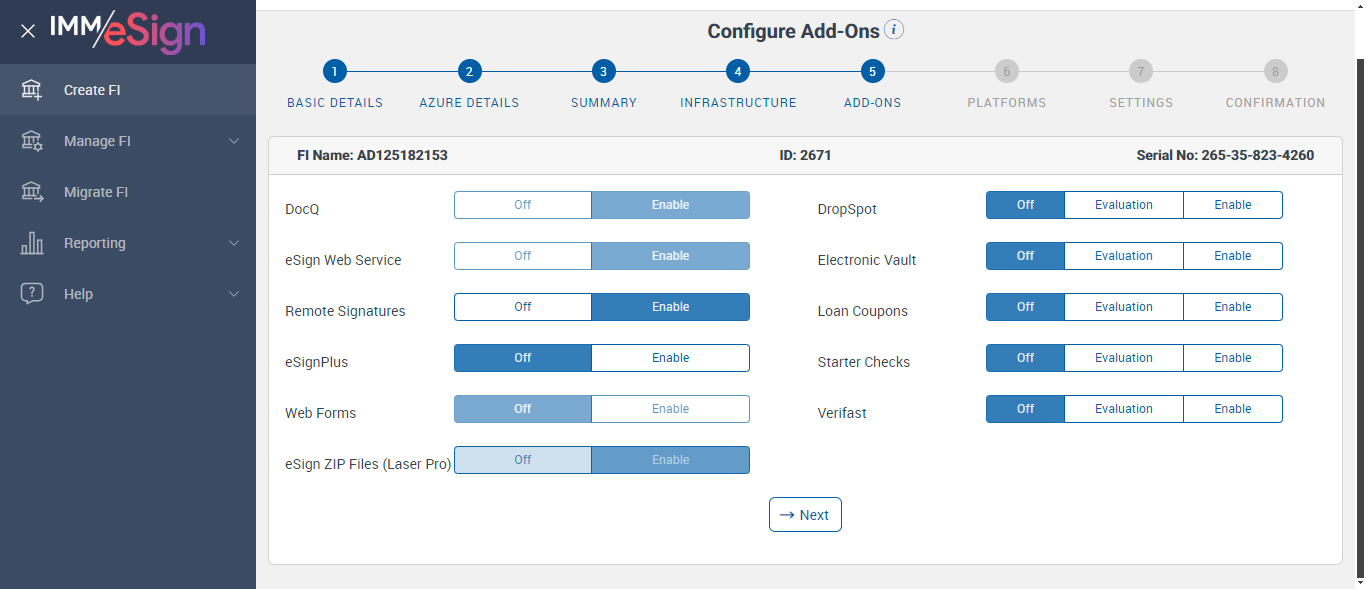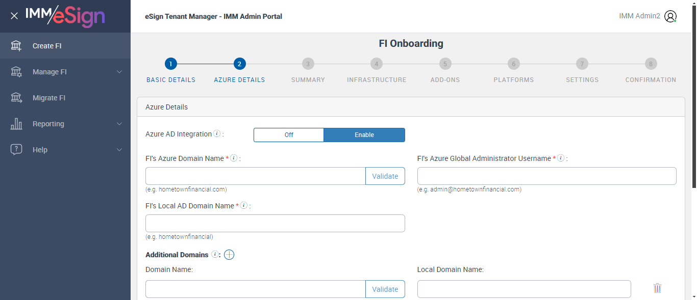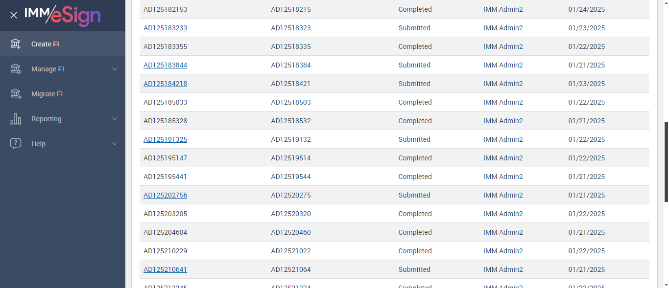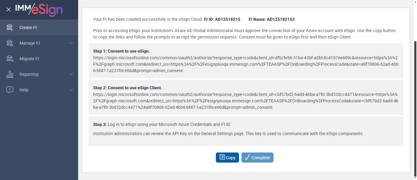 Failed to verify Fi created messageYour FI has been created successfully in the IMM eSign Cloud[ScreenShot]