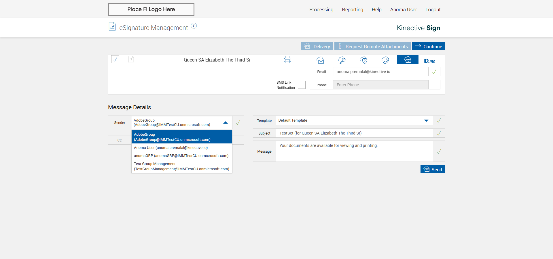 verifyeSenderDropdownForGroupsIneSignatureManagementPageXML - Sign FI- When Default sender dropdown is Not blank COMMENTS: