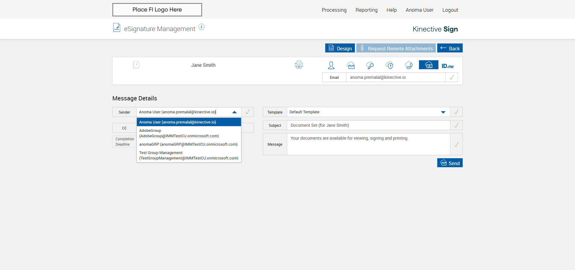 verify Sender Email With Group Email In eSignature Management Page RTS- Sign Fi when default sender is blank COMMENTS:Group email