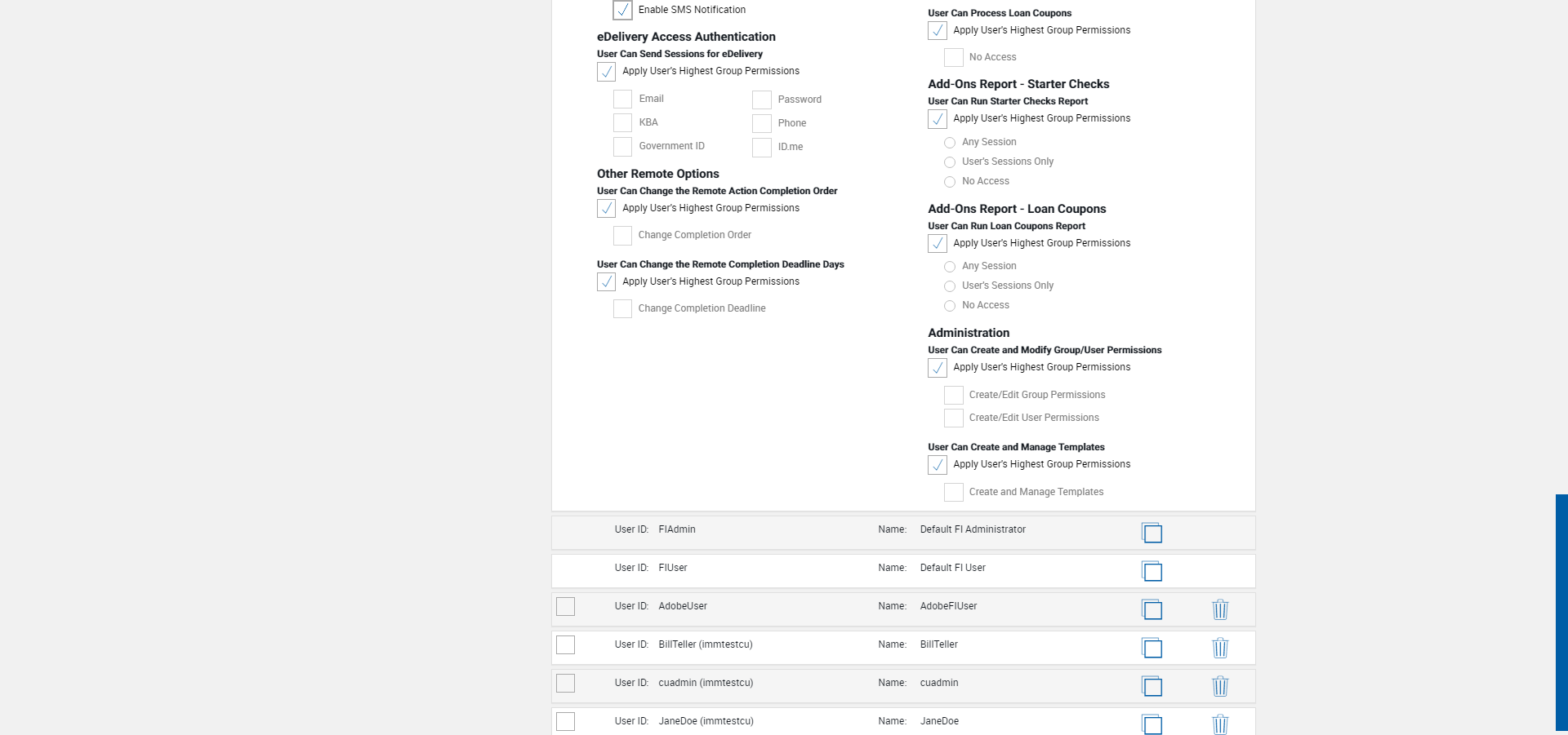 (Verify SMS checkbox is displayed on eSignature page based on FI User permission)