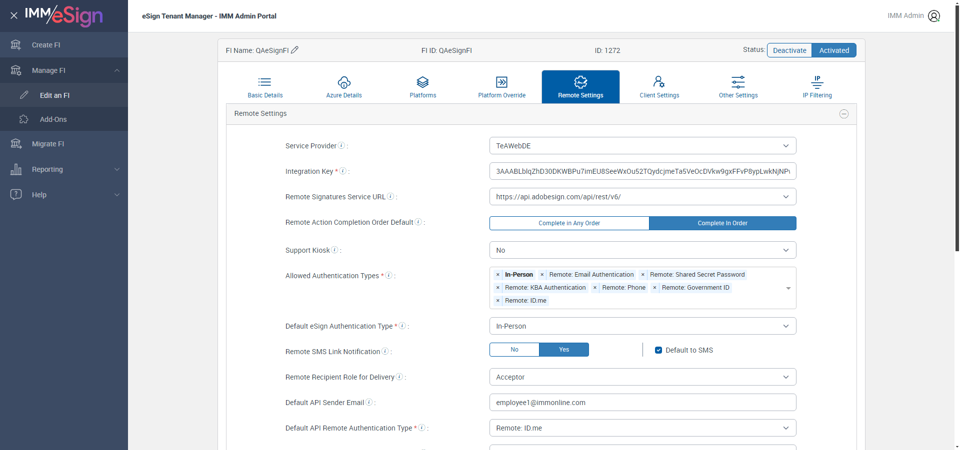 Successfully navigated to 'Manage FI' page [ScreenShot] |