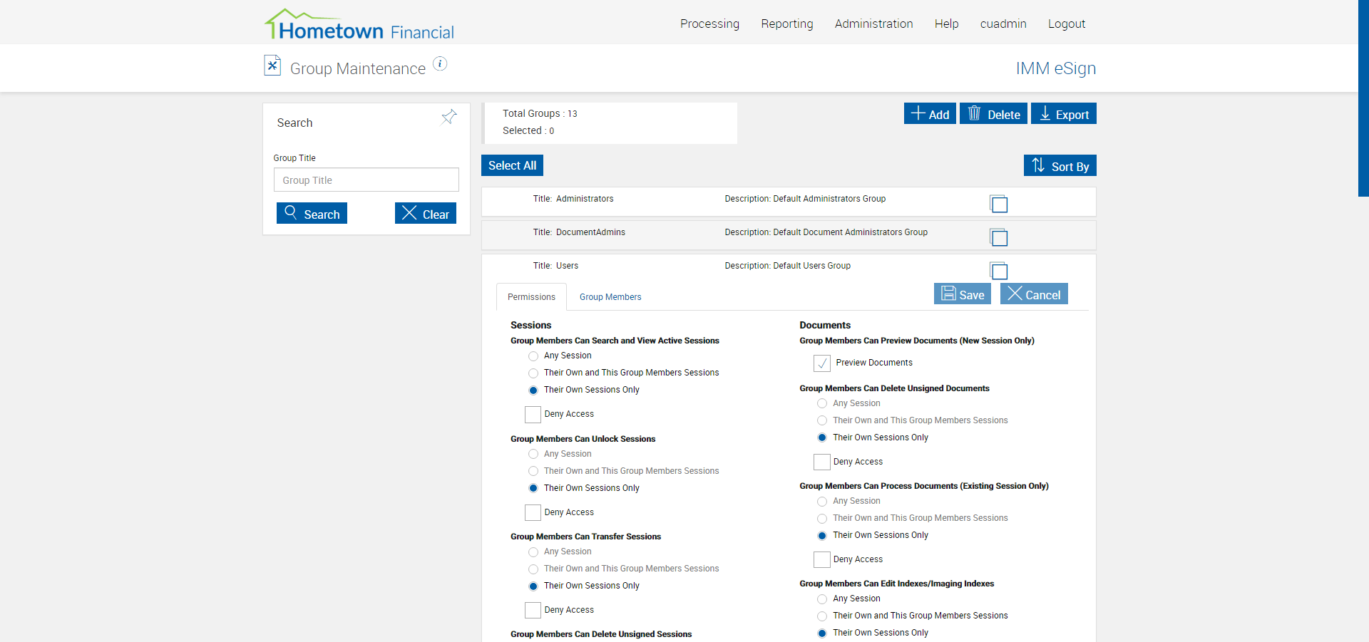 verifyUIElementsForGroupMaintenancePage