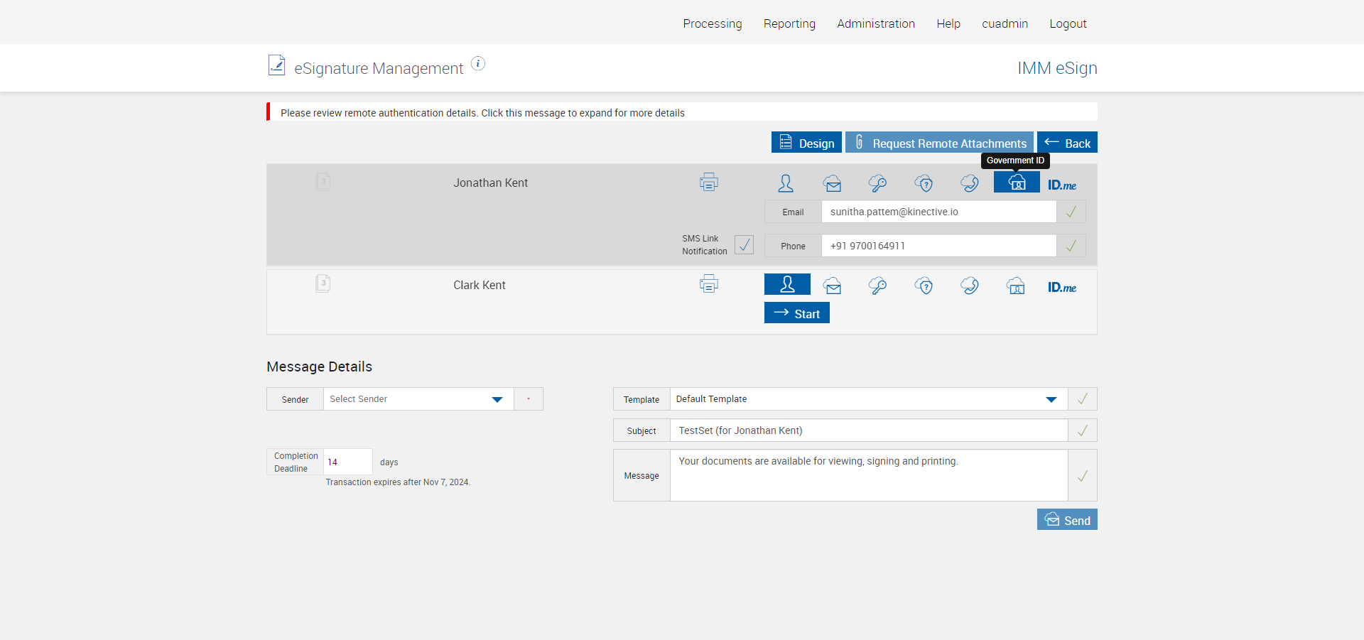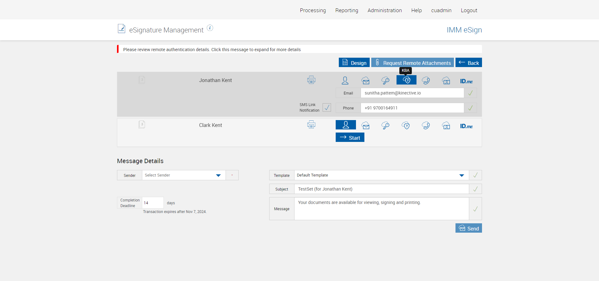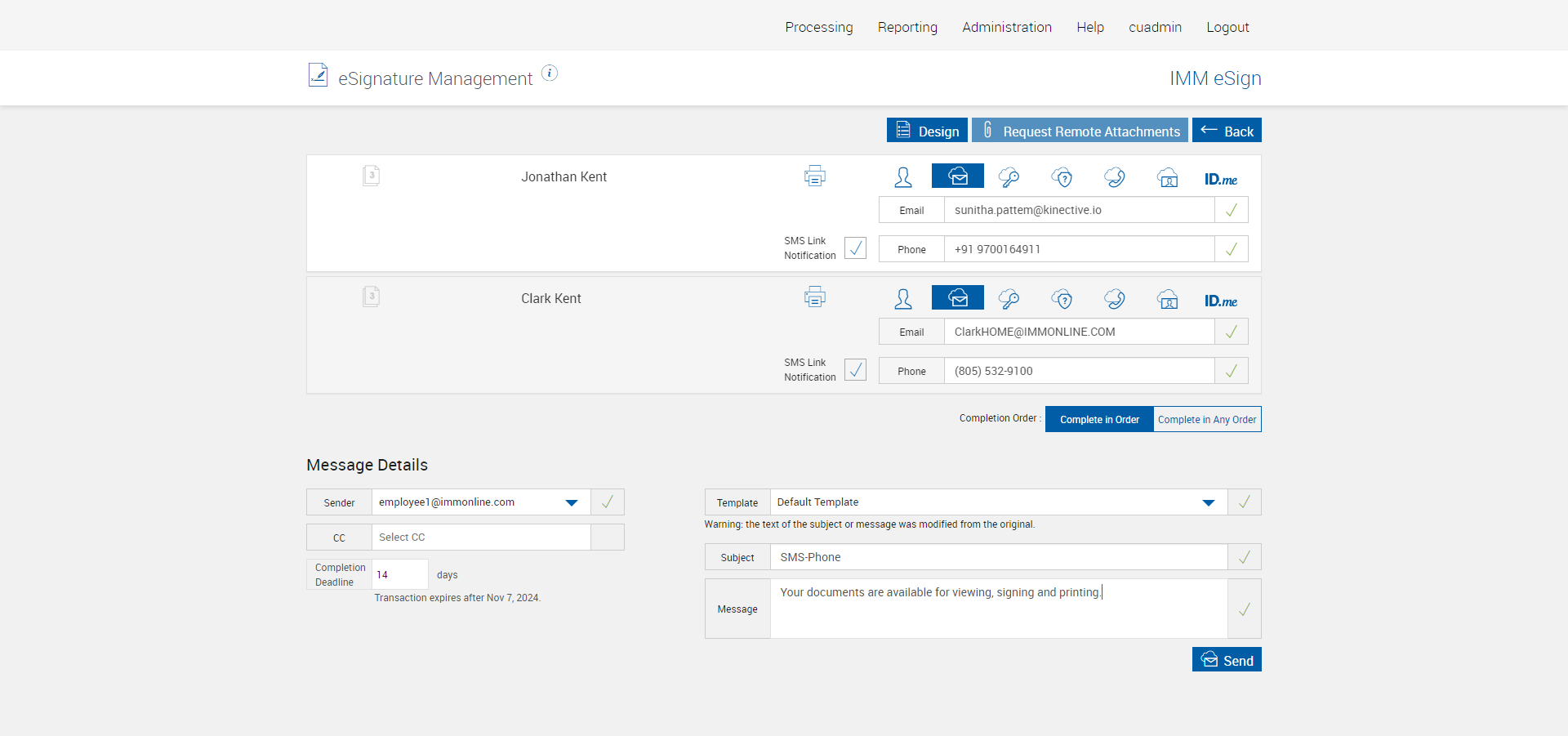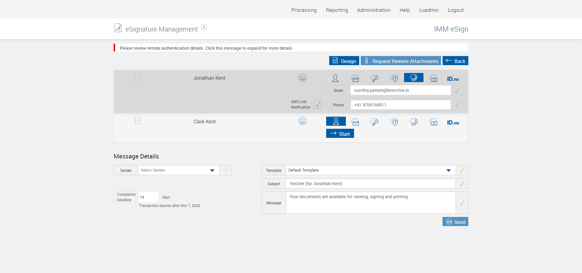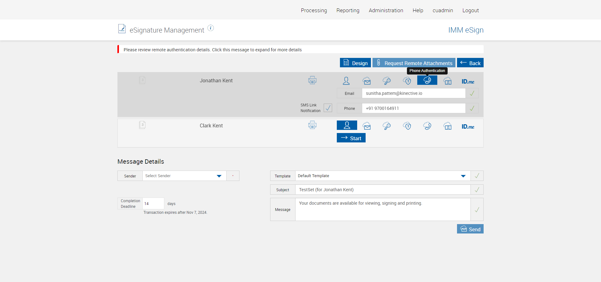 verify Adobe SMS Signing Method UIElements In Esignature Management Page