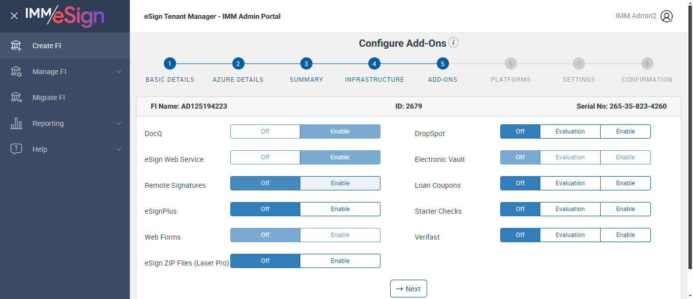 ({ZIP=, FiAdmin_FirstName=Bill,Jane, Dictionary=TeSign;XPLN, StarterEvalDays=, Description=Create Fi With Fi Admin1 and Fi Admin 2 When Remote Signature Disabled, Login_User_ID=immadmin2@immesignqa.onmicrosoft.com, FiStatus=Completed, StarterChecks=Off, eSignURL=https://esignplusqa.immesign.com/TEAASP/Login.aspx, E-Vault=Off, FiAdmin_LastName=Teller,Doe, Filepath=, Name=AD, LocalDomain=immtestcu, TestID=CreateFiwithFiAdmin1andFiAdmin2, FiAdmin_UserID=billteller@immtestcu.onmicrosoft.com,janedoe@immtestcu.onmicrosoft.com, Verifast=Off, eSignPlus=Off, LacerPro=off, RtmAuthTypes=InPerson,Email,Password,KBA,Phone,GovernmentID,, Notes=, Session URL=https://esignnonprod.immesign.com/qa/tenantmanager/, GlobalAdmin=cuadmin@immtestcu.onmicrosoft.com, RemoteSign=off, TypeOfUser=IMM Admin2, eValultDays=, DrpSpot=Off, ErrorMsg=, Address2=, AZDomain=immtestcu.onmicrosoft.com, Address3=, VerifastEDays=, Address1=, City=, WrongAZDomain=, LCEvalDays=, State=, LoanCoupon=Off, Login_Password=iMM@2022, WrongFIID=, DrpEvalDays=, Country=, ClientID=3AAABLblqZhCPfuU-npiCakOjy5Ut75_7222WMCDdpSBYYA0z9PZE7hXvVdJDXKIzDh0zkAVwUGLc4pVh3cU31w119aZm6Uu_, FIID=AD, Key=})