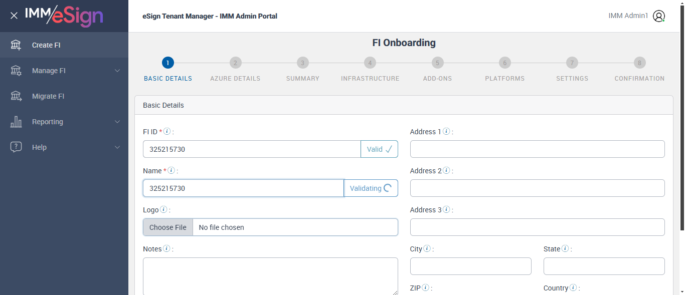 --- 25 Mar 22:12:22 999 - Page URL:: https://esignnonprod.immesign.com/qa/tenantmanager/#/fi/create