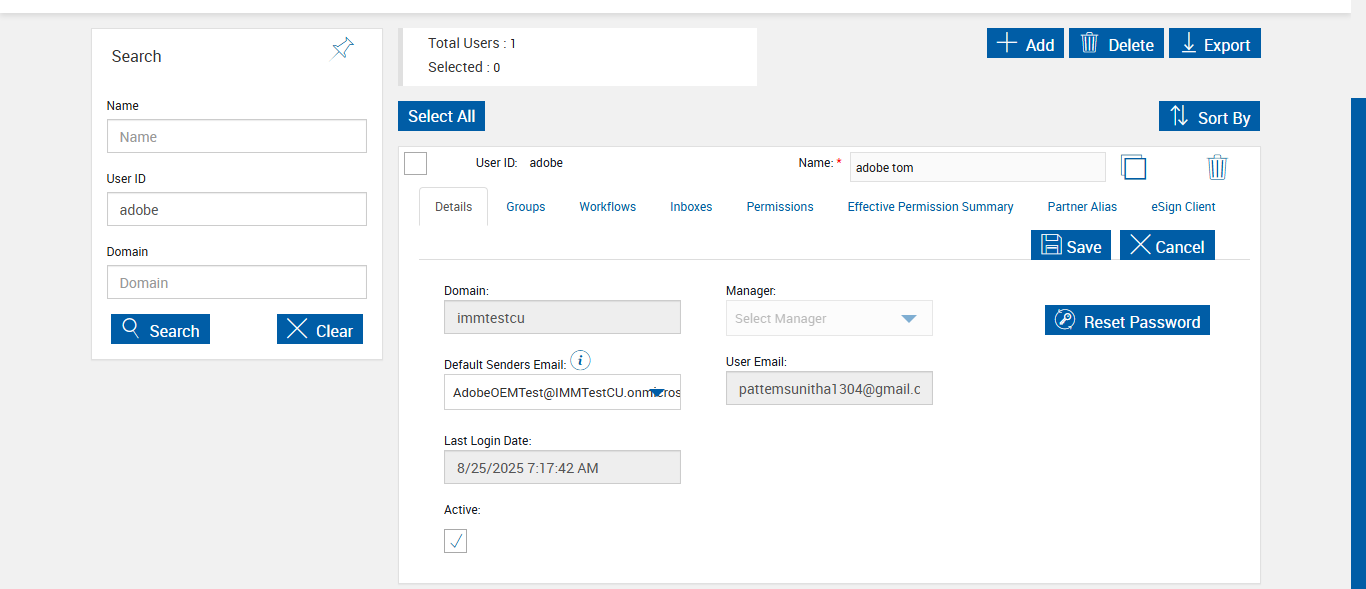 ({Tenant_URL=https://esignnonprod.immesign.com/qa/tenantmanager/#, EmailID=pattemsunitha1304@gmail.com,,sunithapattem@immonline.com, WorkflowSummary=, Login_User_ID=janedoe@immtestcu.onmicrosoft.com,adobe@immtestcu.onmicrosoft.com,spnoemail@immtestcu.onmicrosoft.com,sunitha@immtestcu.onmicrosoft.com, Address=, FiStatus=, entraGroupEmail=AdobeOEMGroup@IMMTestCU.onmicrosoft.com,AdobeOEMTest@IMMTestCU.onmicrosoft.com, FiAdmin_LastName=tom,,p, Add_Dictionary=, GRP_PermissionRadio=, Effect_Summary=, Name=, GRP_PermissionChkBox=, NewUser_ID=, LocalDomain=, PartiesToView=, NewName=, plusfi=true, User_ID=, Wkf_Permission=, Reset_Password=, NewDescription=, AZDomain=, Workflow=, City=, Delete_Dictionary=, AttachmentTypeOption=, NewEmailID=, State=, Login_Password=iMM@2022, eSignClient=, ClientID=, Domain=immtestcu, UserType=Admin,User, anonymusFI=false, NewGroup=, Tenant_User=immadmin2@immesignqa.onmicrosoft.com, FiAdmin_FirstName=adobe,spnoemail,sunitha, Group=AdobeOEMTest,AdobeOEMGroup,AccountCreation, Dictionary=, FI_Name=, Description=verify Default Sender Field Include Group Sender In User Maintenance And User Account Settings Page - Plus FI Fully Integrated, AdditionalDomainName=, SearchUser=, Filepath=, TestID=verifyDefaultSenderFieldIncludeGroupSenderInUserMaintenanceAndUserAccountSettingsPage, entraGroup=true, FiAdmin_UserID=, Dictionary_Code=, FItype=Unified, integrationType=Fully Integrated, IndexSource=, Access_Password=P@ssword1, UserURL2=, Inbox_Permission=, Confirm_Reset_Password=, AdditionalLocalDomainName=, Notes=, Inbox=, GlobalAdmin=, Path=, Copy_User_ID=, Tenant_Password=iMM@2023, Enter_eSignClient=, ZipCode=, FI_ID=plusrmt1, Confirm_Password=P@ssword1, CasesUser=, Tab=, UserURL=, Copy_Tab=})