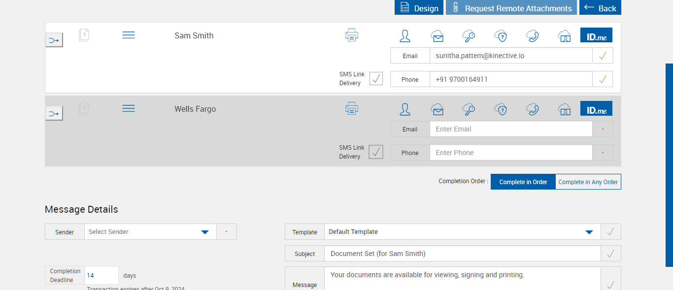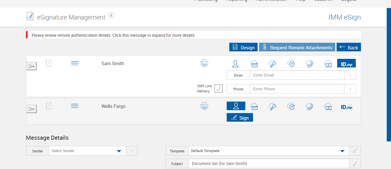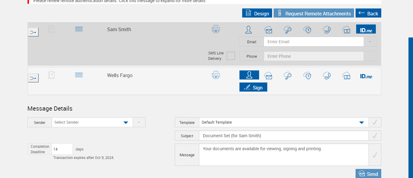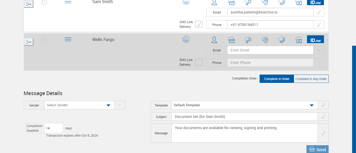Expected: SMS Link Notification option is not available for ID.Me signing