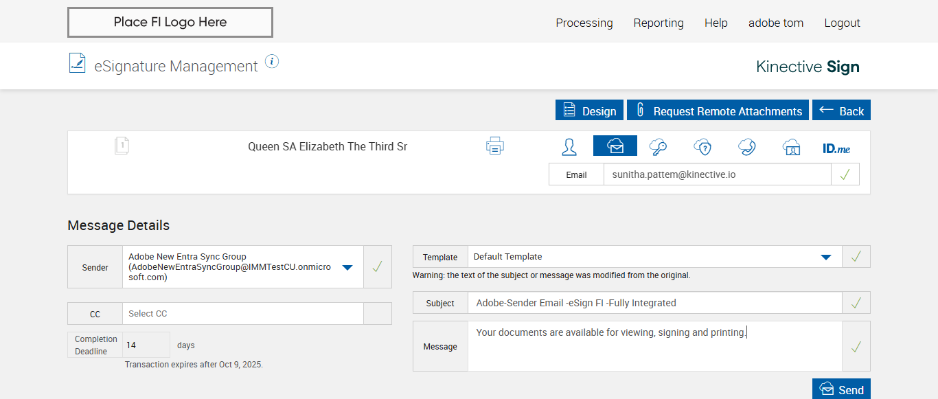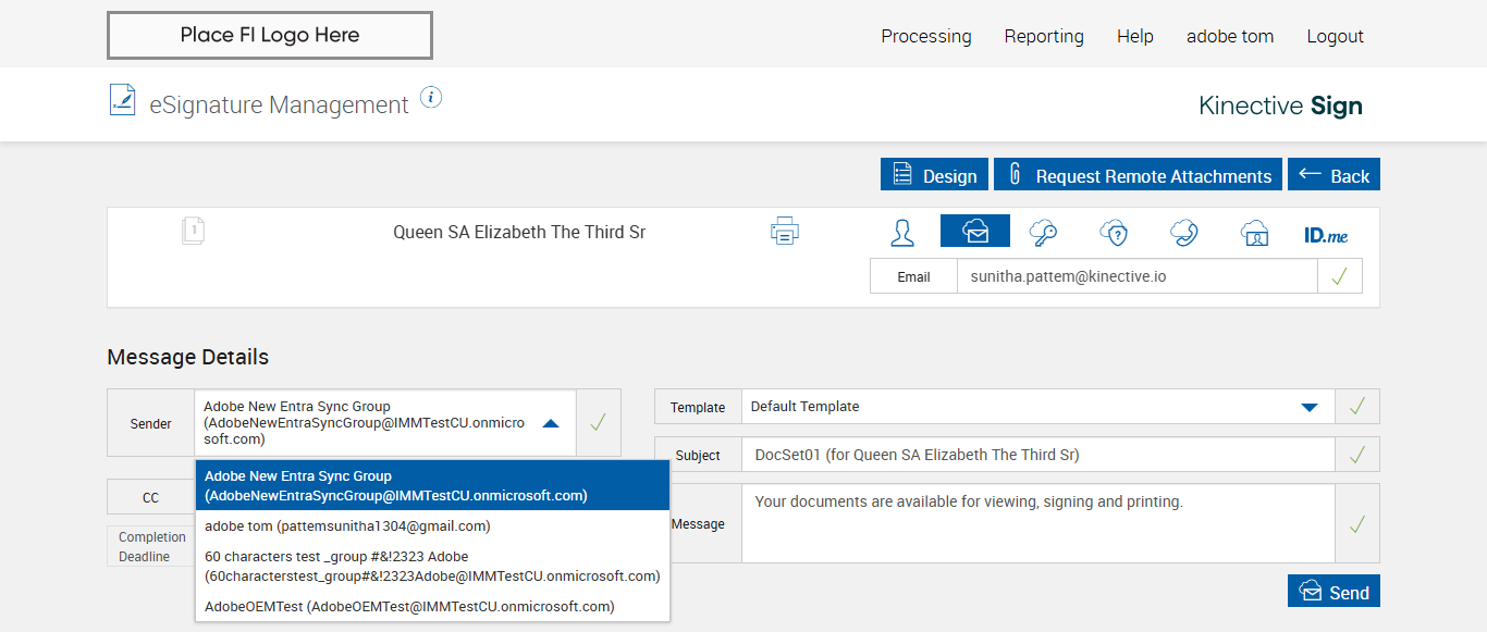 verify Sender Email In eSignature Management Page XML Session - Fully Integrated - Sign FI COMMENTS:Adobe Sender Email