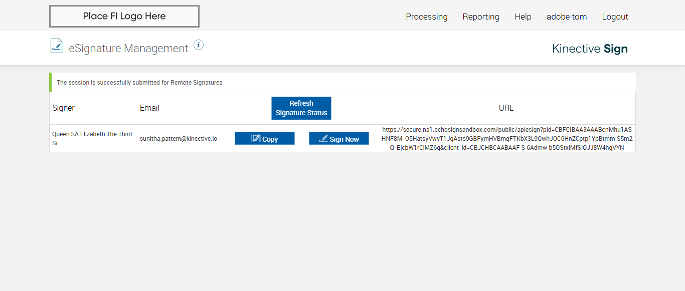 verify Sender Email In eSignature Management Page XML Session - Fully Integrated - Sign FI COMMENTS:Adobe Sender Email