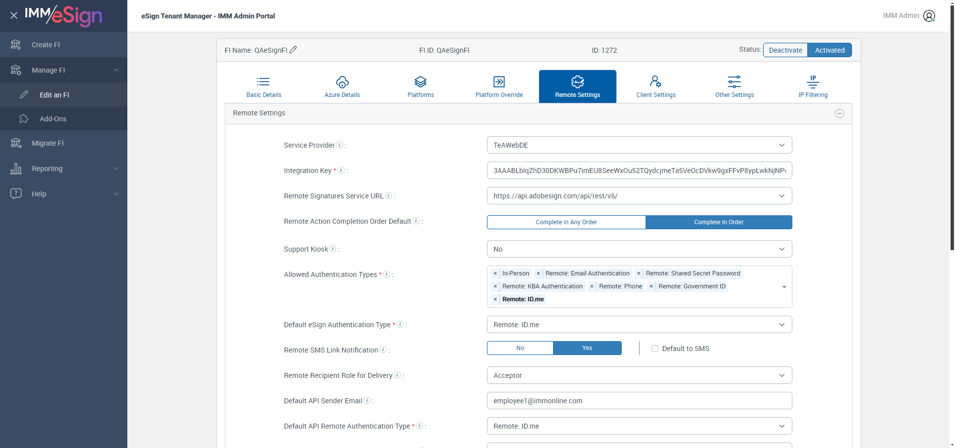 Successfully navigated to 'Manage FI' page [ScreenShot]