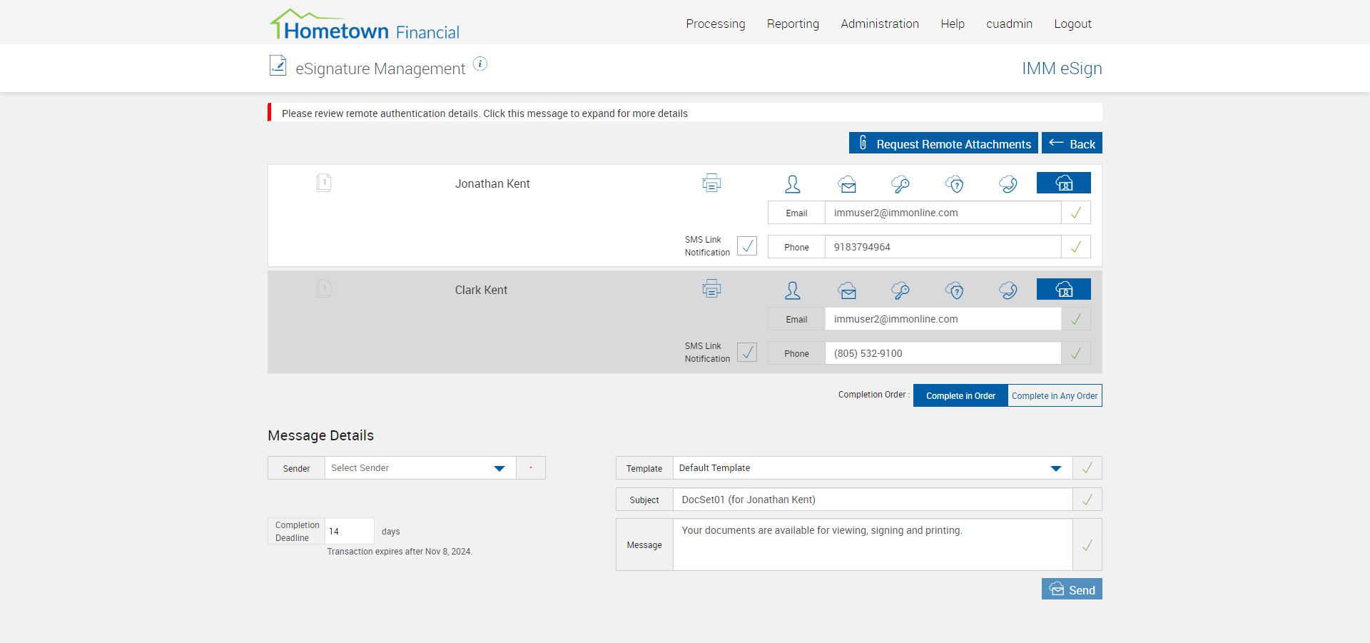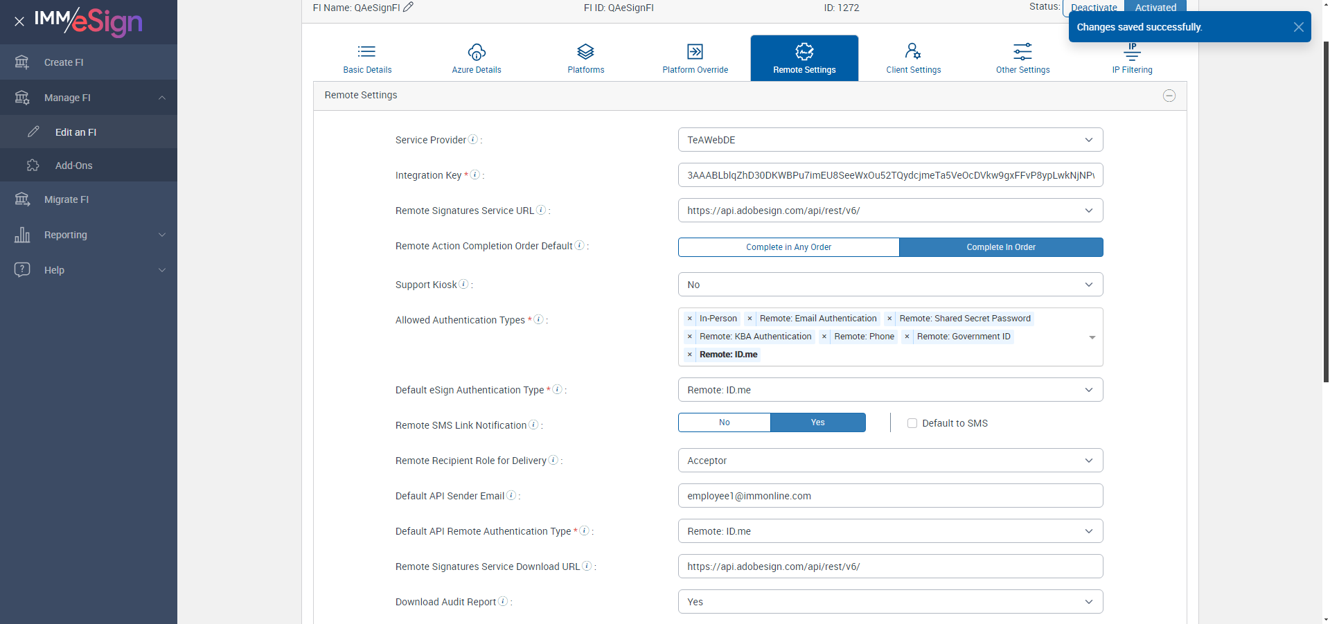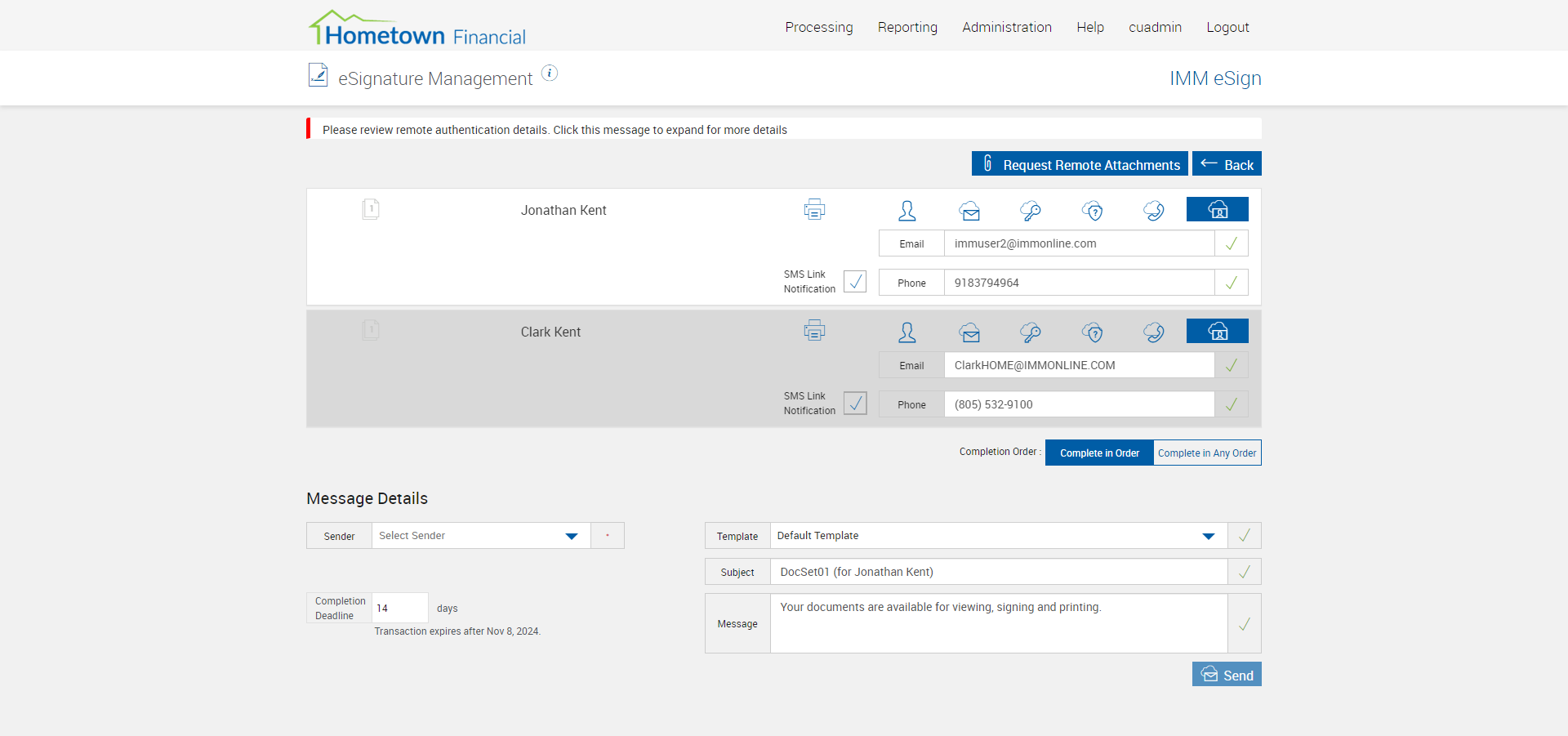 Expected: The session is successfully submitted for Remote Signatures message should be displayed