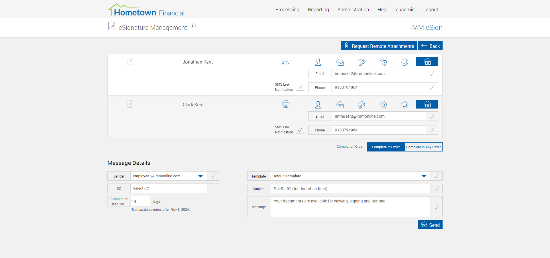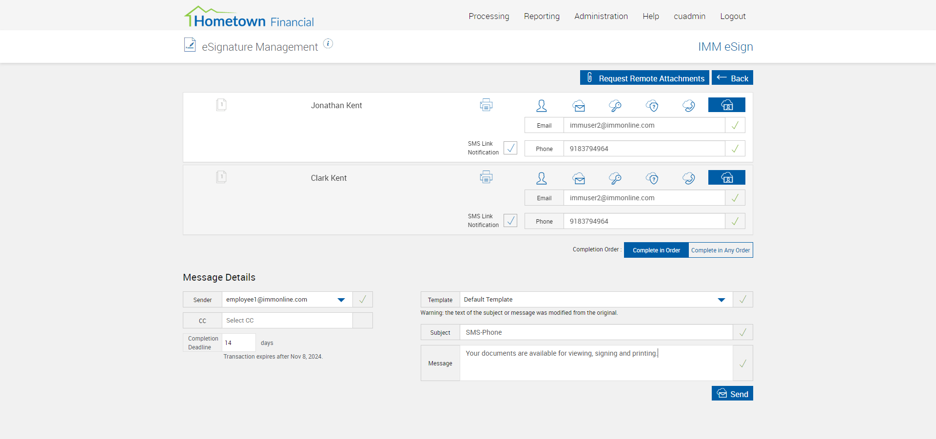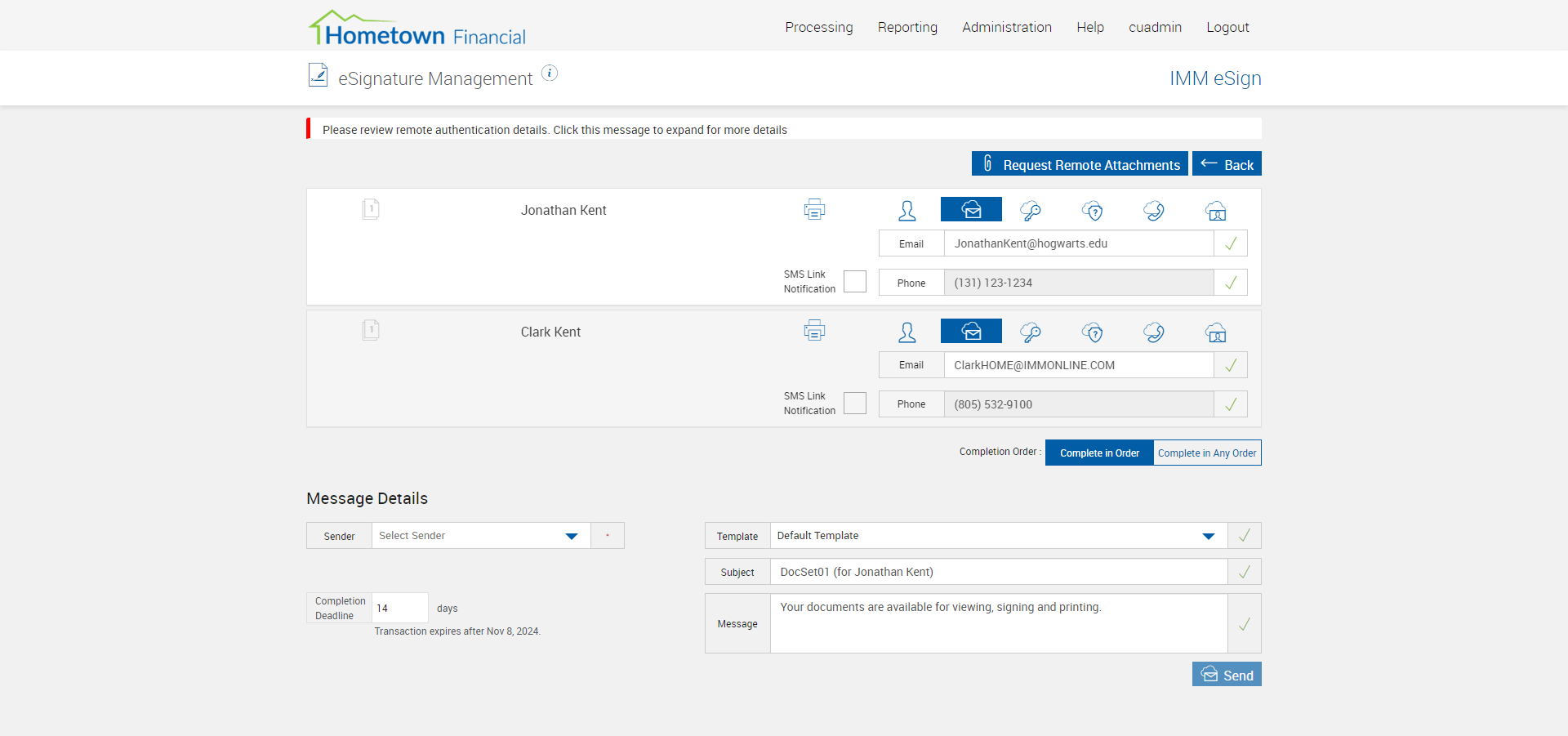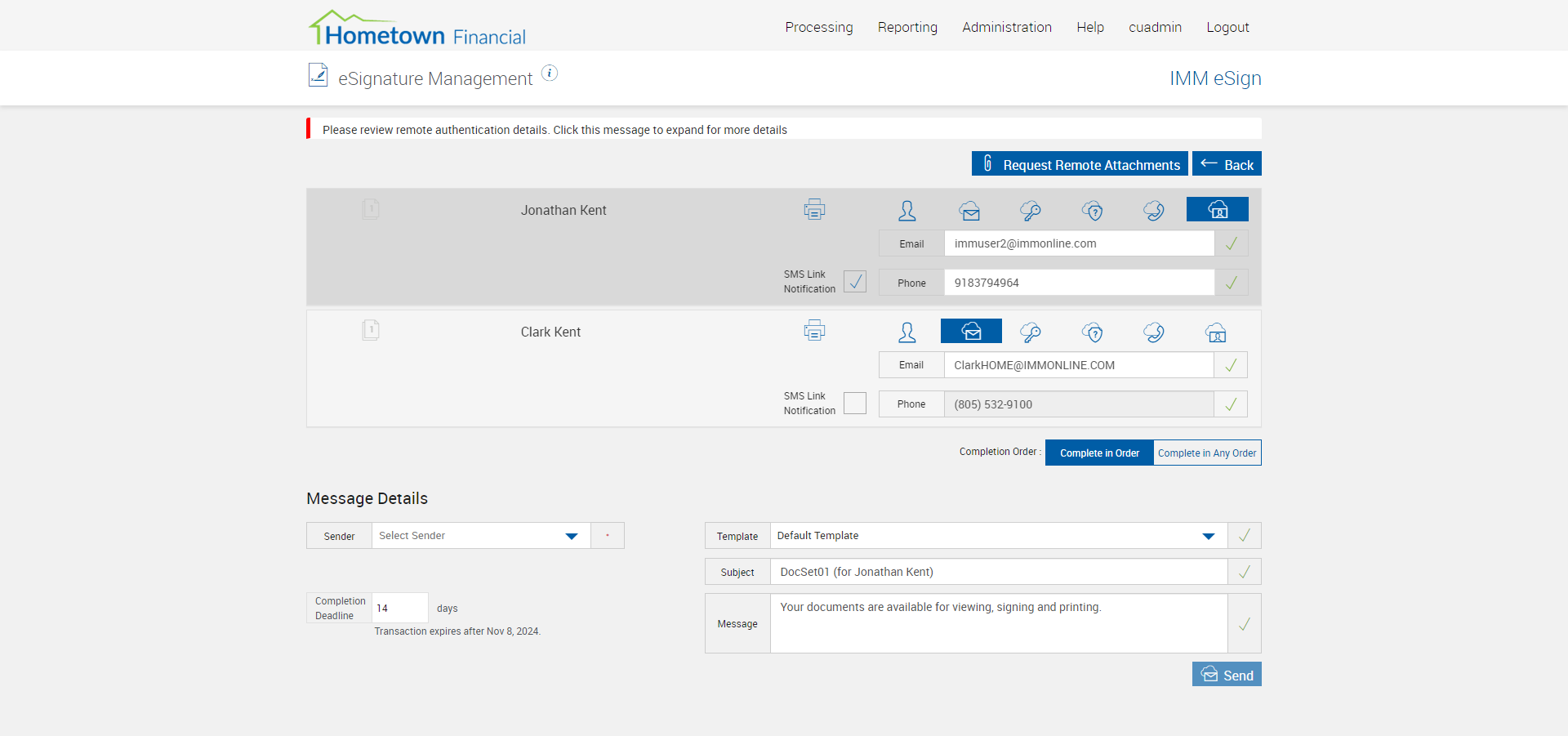 Expected: The session is successfully submitted for Remote Signatures message should be displayed