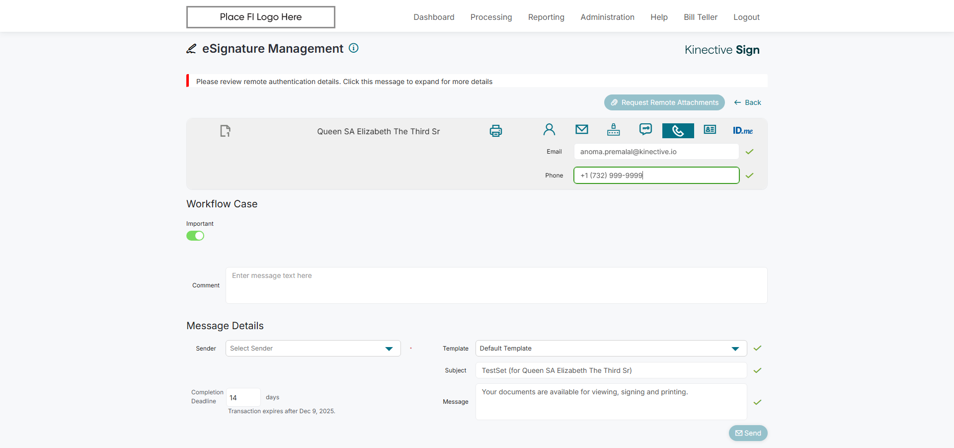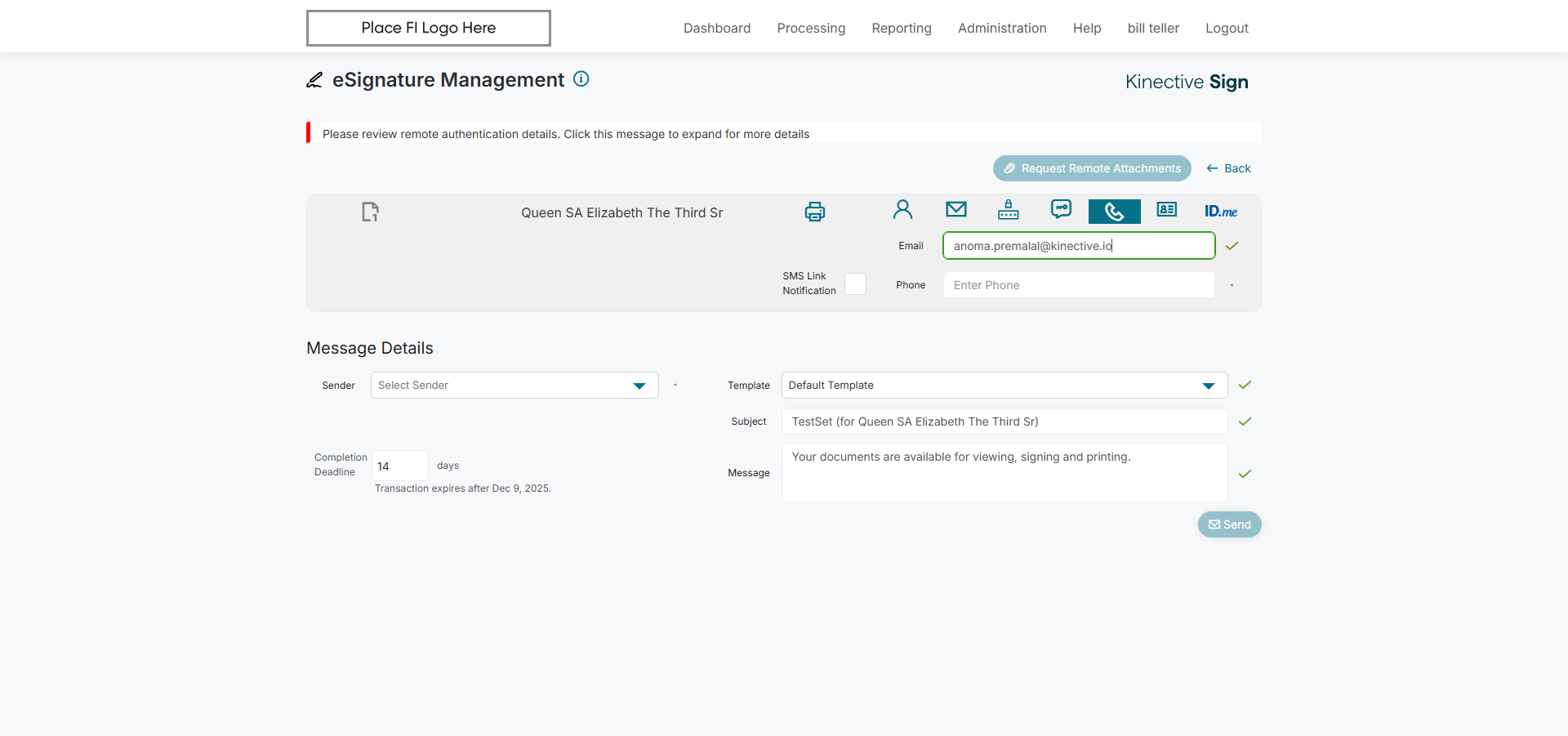 | 04:17:37 PM | Successfully navigated to the 'eSignature Management' page [ScreenShot] | |