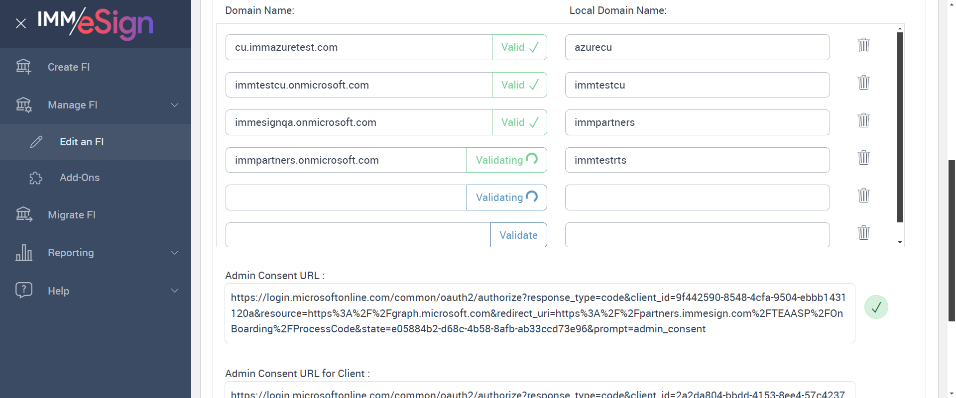 | {Tenant_URL=https://partners.immesign.com/tenantmanagerui/, EmailID=, WorkflowSummary=, Login_User_ID=qauser2@bank.immazuretest.com;qauser2@cu.immazuretest.com;, Address=, FiStatus=Completed, FiAdmin_LastName=one;, Add_Dictionary=, GRP_PermissionRadio=, Effect_Summary=, Name=, GRP_PermissionChkBox=, NewUser_ID=KPUser4@immtestcu.onmicrosoft.com;iMM@2025!, LocalDomain=immazuretest, PartiesToView=, NewName=, User_ID=, Wkf_Permission=, Reset_Password=, NewDescription=, AZDomain=immazuretest.onmicrosoft.com, Workflow=, City=, Delete_Dictionary=, AttachmentTypeOption=, NewEmailID=, State=, Login_Password=iMM@2025!;, eSignClient=, ClientID=3AAABLblqZhCPfuU-npiCakOjy5Ut75_7222WMCDdpSBYYA0z9PZE7hXvVdJDXKIzDh0zkAVwUGLc4pVh3cU31w119aZm6Uu_, Domain=azurebank;azurecu;, UserType=, NewGroup=, Tenant_User=, FiAdmin_FirstName=admin;, Group=Users;Accounting Group;, Dictionary=TeSign;XPLN;MSP, FI_Name=Autotestfi, Description=Verify Multi domain UI functionality for manage FI page and, AdditionalDomainName=bank.immazuretest.com;cu.immazuretest.com;immtestcu.onmicrosoft.com;immesignqa.onmicrosoft.com;immpartners.onmicrosoft.com, SearchUser=, Filepath=src/main/resources/testdata/files/documentRTS/BasicRTSDocs/005BA1.pdf;src/main/resources/testdata/files/documentRTS/BasicRTSDocs/513BA.pdf, TestID=verifyMultiDomainTMManageFIAzureDetailsandEsignUsersLogin, FiAdmin_UserID=admin@immazuretest.onmicrosoft.com;, Dictionary_Code=, IndexSource=, Access_Password=, UserURL2=, Inbox_Permission=, Confirm_Reset_Password=, AdditionalLocalDomainName=azurebank;azurecu;immtestcu;immpartners;immtestrts;, Notes=, Inbox=, GlobalAdmin=admin@immazuretest.onmicrosoft.com, Path=src/main/resources/testdata/files/documentRTS/BasicRTSDocs/BasicRTSDocTemplates.zip;, Copy_User_ID=, Tenant_Password=, Enter_eSignClient=, ZipCode=, FI_ID=Autotestfi, Confirm_Password=, CasesUser=, Tab=, UserURL=, Copy_Tab=} |